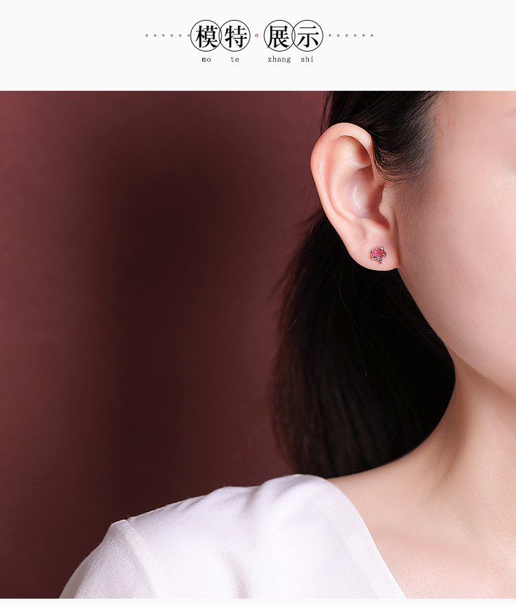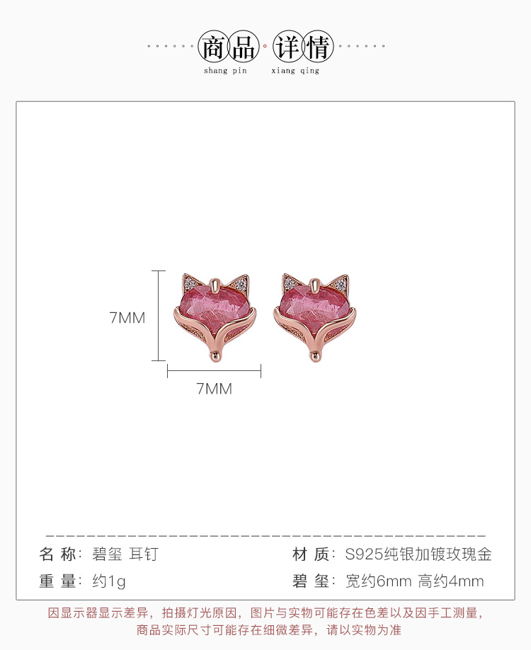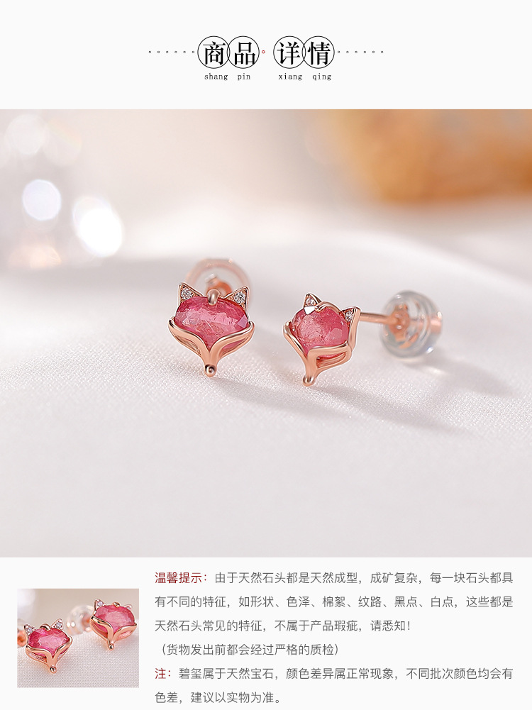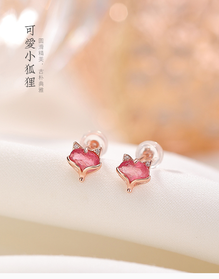 【魅狐】S925纯银镀玫瑰金彩色碧玺狐狸耳钉【CW-ED04280】