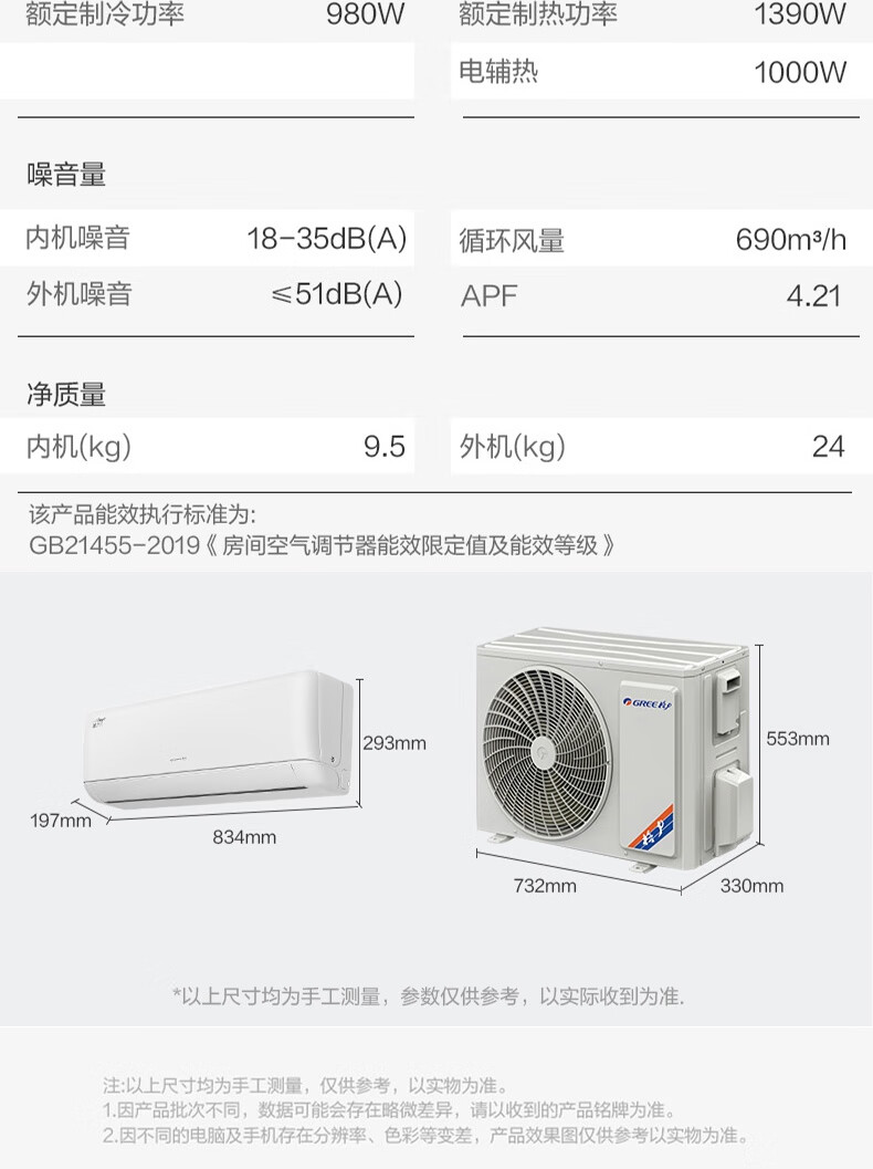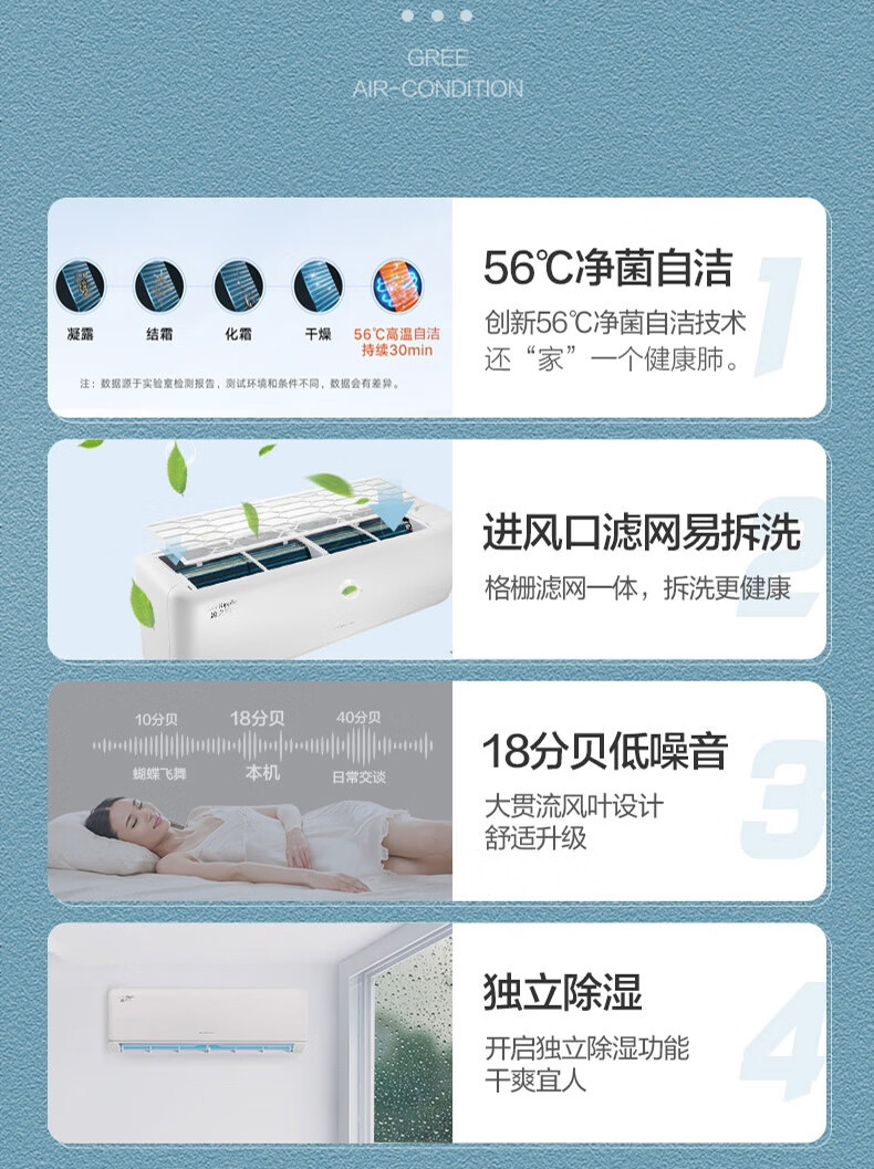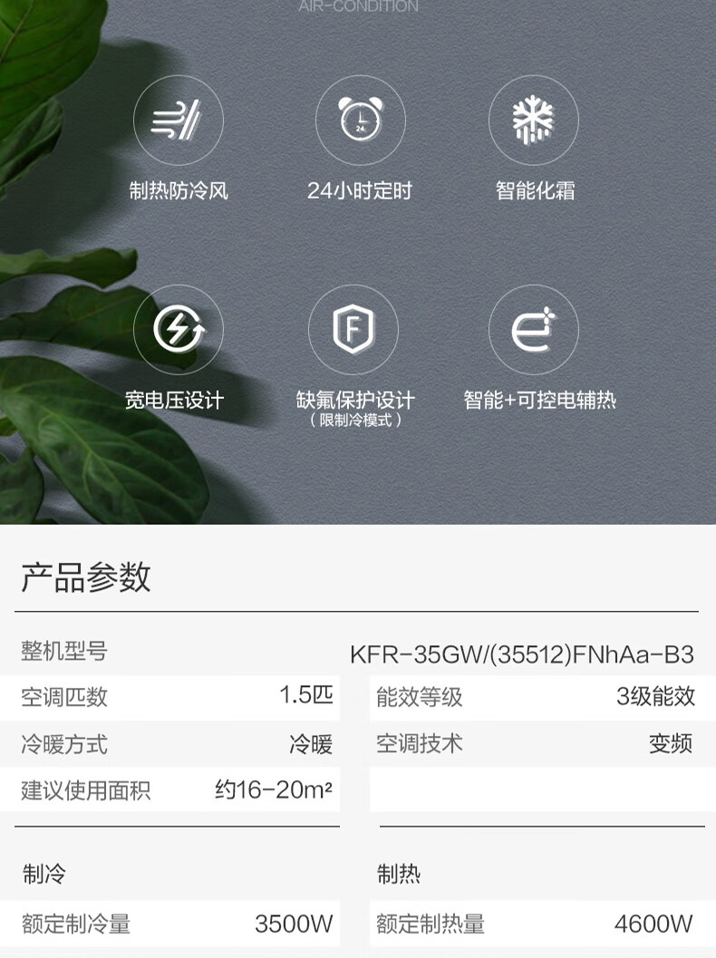 格力(GREE)空调1.5匹p挂机冷暖变频节能省电新能效家用卧室壁挂式自清洁 凉之沁KFR-35GW/(35512)FNhAa-B3