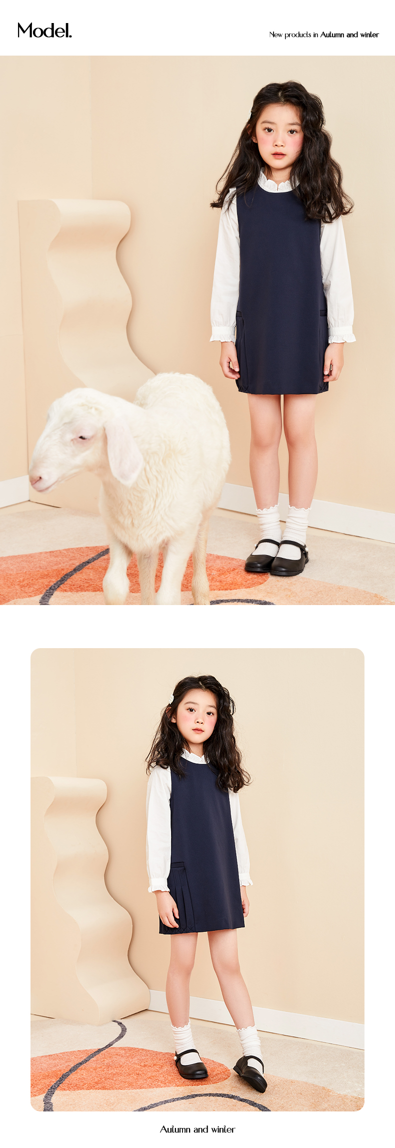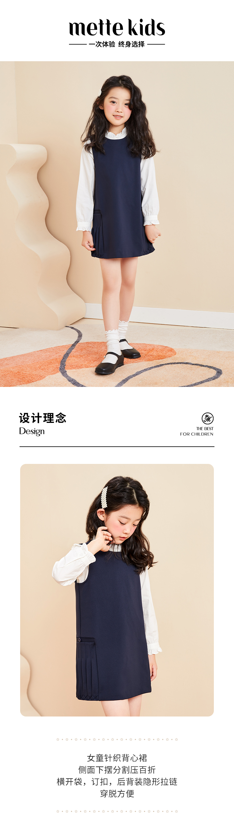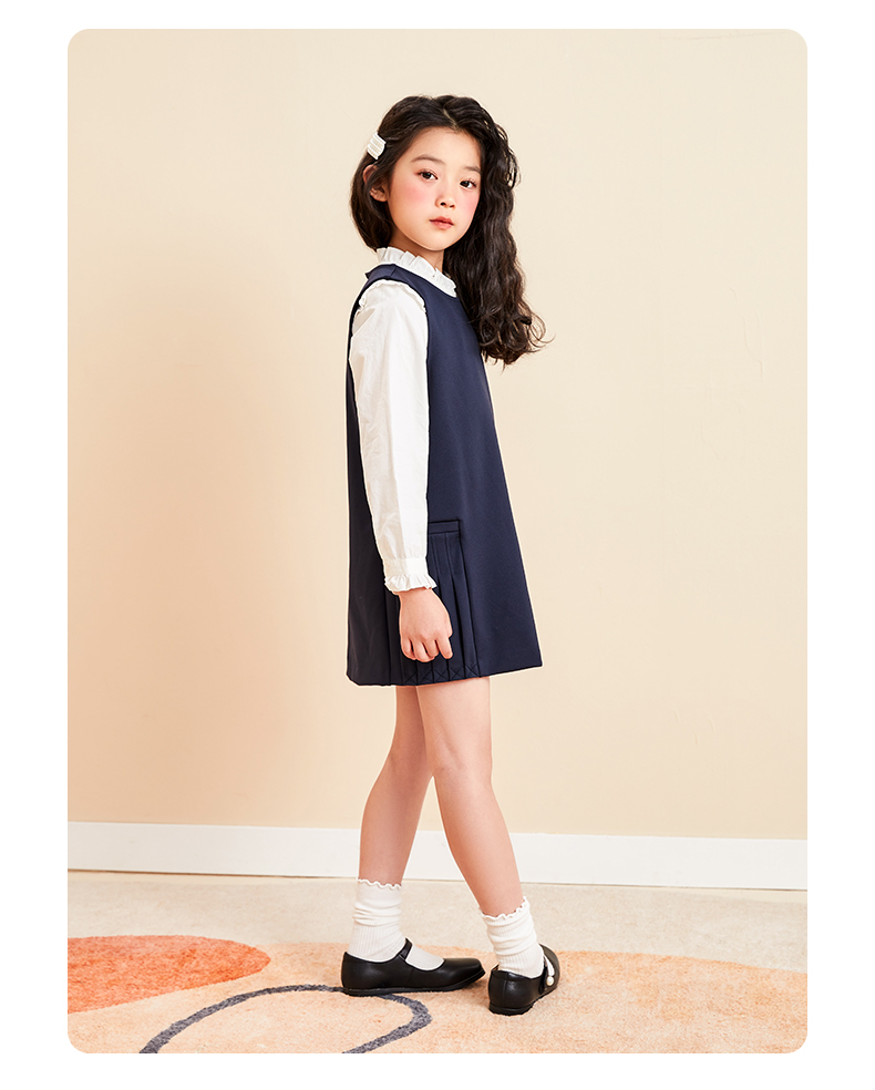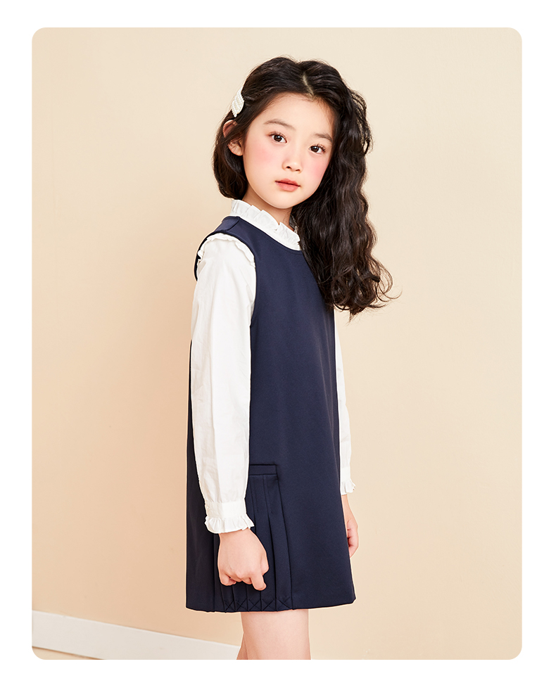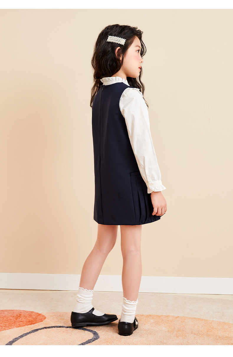 mettekids儿童连衣裙女童秋装新款童装中大童时髦洋气纯色公主裙