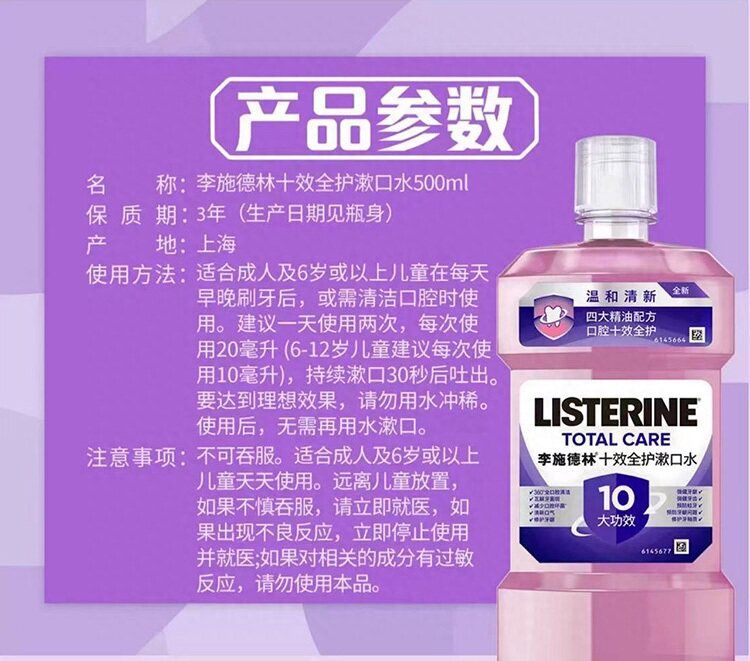 李施德林 十效全护漱口水 500ml/瓶