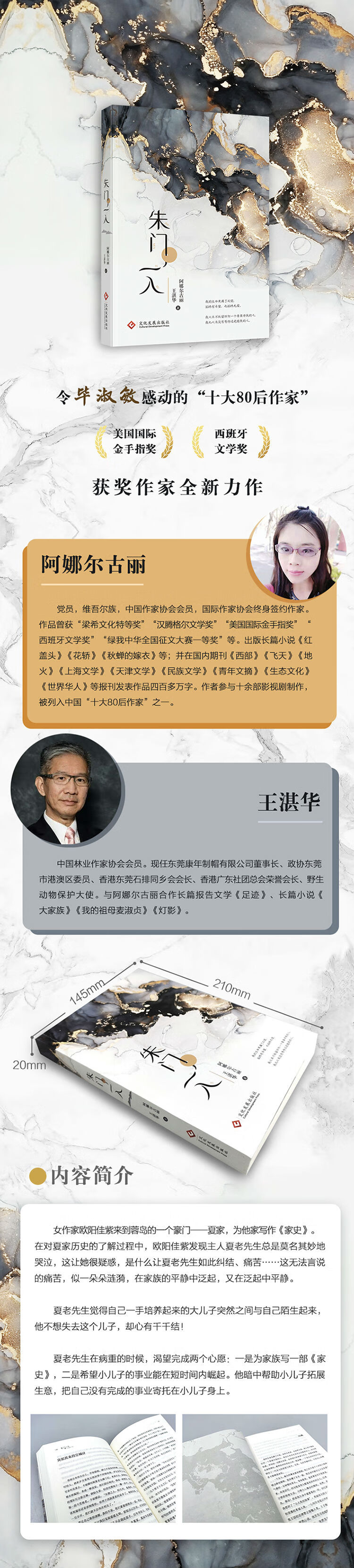 我和王湛华先生认识七 年多了,我们一直想着合著 一部完整的作品,但总是遇 到各种磨难,很多作品写出 来,却放着一直没有出版。 我其实很努力,有时候,“ 努力”就像一件华丽的外衣 ,掩盖不了不思进取的事实 。我和王湛华先生的共同之 处就是我们都是真性情中人 。在这个世界上,所有真性 情中人,想法总是与众不同 。王湛华先生是儒商,博览 群书,我是个随情随兴的小 女人,我们一直很珍惜彼此 的关系和相处方式。王湛华 到北京的时候,我们偶然会 聚一聚,良好的人际关系是 人心互相温暖,而不是一颗 心对另一颗心的折磨。早在 很多年前,王湛华先生的父 亲希望我和王湛华先生共同 完成一本描写王湛华先生祖 母的书,但老人家去世之后 ,这事也就搁浅了,没有人 再提起。 我也经历过苦难的岁月 ,半生漂泊,经常羡慕别人 脸上的阳光、羡慕别人脸上 的微笑、羡慕别人家庭的和 美。母亲故去之后,我被送 到了舅舅家,然后辗转到了 养母家,那时候养母倾家荡 产供我上大学,她忍受着贫 穷和丈夫的暴虐。养母去世 的时候,渴望看一眼金子、 看一眼火车,那一刻,我好 卑微,这是再低贱不过的要 求,我却没有能力满足。我 无法回报母亲的生育之恩, 也无法回报养母的养育之恩 。养母去世后,我大学毕业 ,到了一所学校当了一名中 学语文教师,新鲜感过去之 后,我又陷入了无边的绝望 之中,后来我考入北方学院 ,成为一名古代汉语讲师, 每周两节课,我有了很宽裕 的创作时间。 一个秋天的早上,我打 开宿舍的窗户,窗外阳光灿 烂,油菜花也一样灿烂,浓 郁的花香飘进屋里,瞬间我 泪流满面,生活原来如此美 好。我接着又调到了国家林 业局,到北京当了一个刊物 的执行主编。我不是一个墨 守成规的女人,我喜欢优雅 精致的生活,同样也渴望社 会的和平与家庭的温馨。现 在每个家庭都有矛盾,或多 或少,出版这本书,是为了 让普天下的家庭和睦,成员 相互尊重。其实尊重一个人 ,看似简单,一旦失去了尊 重,人与人的关系就什么都 不存在了。 这部书,是我花了很久 谋篇、布局,然后投入写作 的。我们没有去贬低谁,也 没有赞美谁,本故事纯属虚 构,请勿对号入座。如有雷 同,纯属巧合。文学本身来 源于生活,又高于生活。就 像一个人,脸在北京,衣服 在山西,是一个拼凑起来的 角色,想象力越强的作品, 越有生命力,没有任何文学 作品拥有永恒的生命力。熵 是增加的,宇宙是混乱的, 所有的文学作品都会逐渐消 失。但是,我多么希望我们 的作品,能够代代流传下来 ,警诫世人。芸芸众生,人 人都需要慰藉,这个慰藉可 以是金山银山,也可以是信 仰,亦可以是文学。 这些年,专心投入影视 创作与别的工作,三年来, 没有正式出版过新作品了。 我一直觉得王湛华先生是我 的幸运之神,他引导我读好 书,做好人,不虚度人生。 他给予了我一个觉醒期,我 认为,每个人都有一个觉醒 期,但觉醒得早晚决定了一 个人的命运。我相信,我们 会一直合作下去。好的人生 ,是一个过程,而不是一个 状态;它是一个方向,而不 是终点。喜欢我的读者,都 说阿娜尔古丽的作品中都有 一个很爱她的男人,同时也 有一个无比阴毒陷害她的男 人。在创作这部作品之前, 我阅读了很多遍莎士比亚的 作品,自十九世纪始,这些 作品是莎士比亚的四大悲剧 :《哈姆雷特》《奥赛罗》 《李尔王》《麦克白》,四 大悲剧表现人文主义理想与 现实社会恶势力之间的悲剧 性冲突及理想的破灭。虽然 现在图书市场特别萧条,但 是在我心中,文学永远神圣 ,我感觉星星在哪里都是很 亮的,就看人们有没有抬头 去看它们。 这部书以一个女作家到 蓉岛豪门写一部家族史开始 ,揭开了层层谜团,但是由 于各种原因,女作家最后与 她创作的家史换来一个家族 的安宁,自己放弃了荣华富 贵和好姐妹卡丽娜去看西藏 的美景。其实,对于一个热 爱创作的人来说,每部作品 都是自己的孩子,它们也许 精彩纷呈,也许阳春白雪, 可毕竟沾满慈母的血泪。真 正的作家,是一定有勇气去 触碰那些在内心深处自己不 敢触碰的东西的。我不刻意 、不虚伪,在创作中感受简 单岁月的朴素,这是宠辱不 惊的坦然,真正的自由独立 不是想做什么就能做什么, 而是明白自己真正要什么, 文字是离灵魂最近的东西, 唯独文字,才能抚慰人心。 很多企业家让我写传记 ,我都拒绝了。现在能称为 “企业家”的人太多了,但能 够成为人物的企业家却凤毛 麟角。我一直觉得王湛华先 生是新时代的人物,他做了 多年的慈善事业,后来我们 一起做起了爱护动物的公益 事业。眼下,通过高考完成 人生的鲤鱼跳龙门也已经是 过去的事情了。更多的时候 是要看你的眼界,看你的目 光,看你的资源和前瞻性, 这些简单的知识已经给不了 我们更多的需求。像王湛华 这样的人物出现在人群中, 一下子就能认出来,因为这 样的人太少了。时代赋予人 们成功的因素越来越多,在 各种各样的成功面前,人们 各尽所能,去