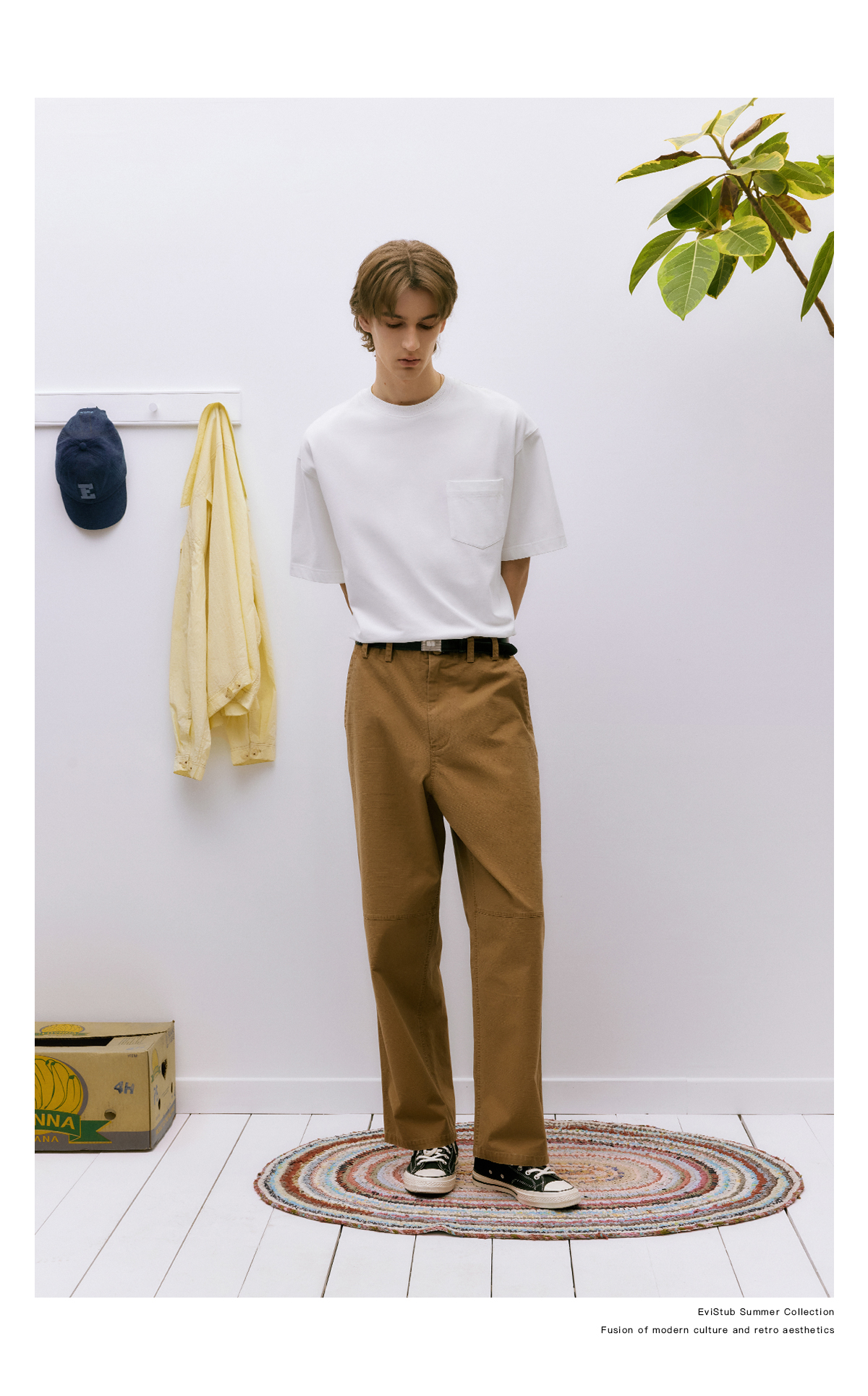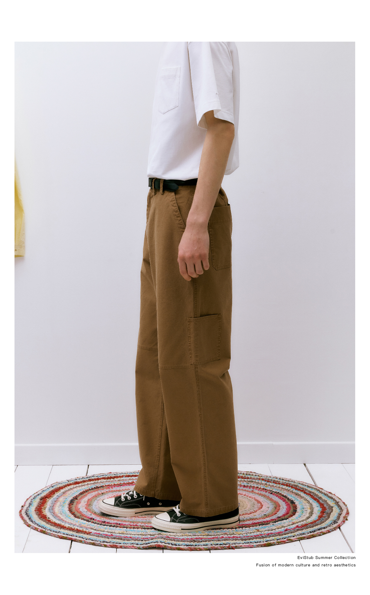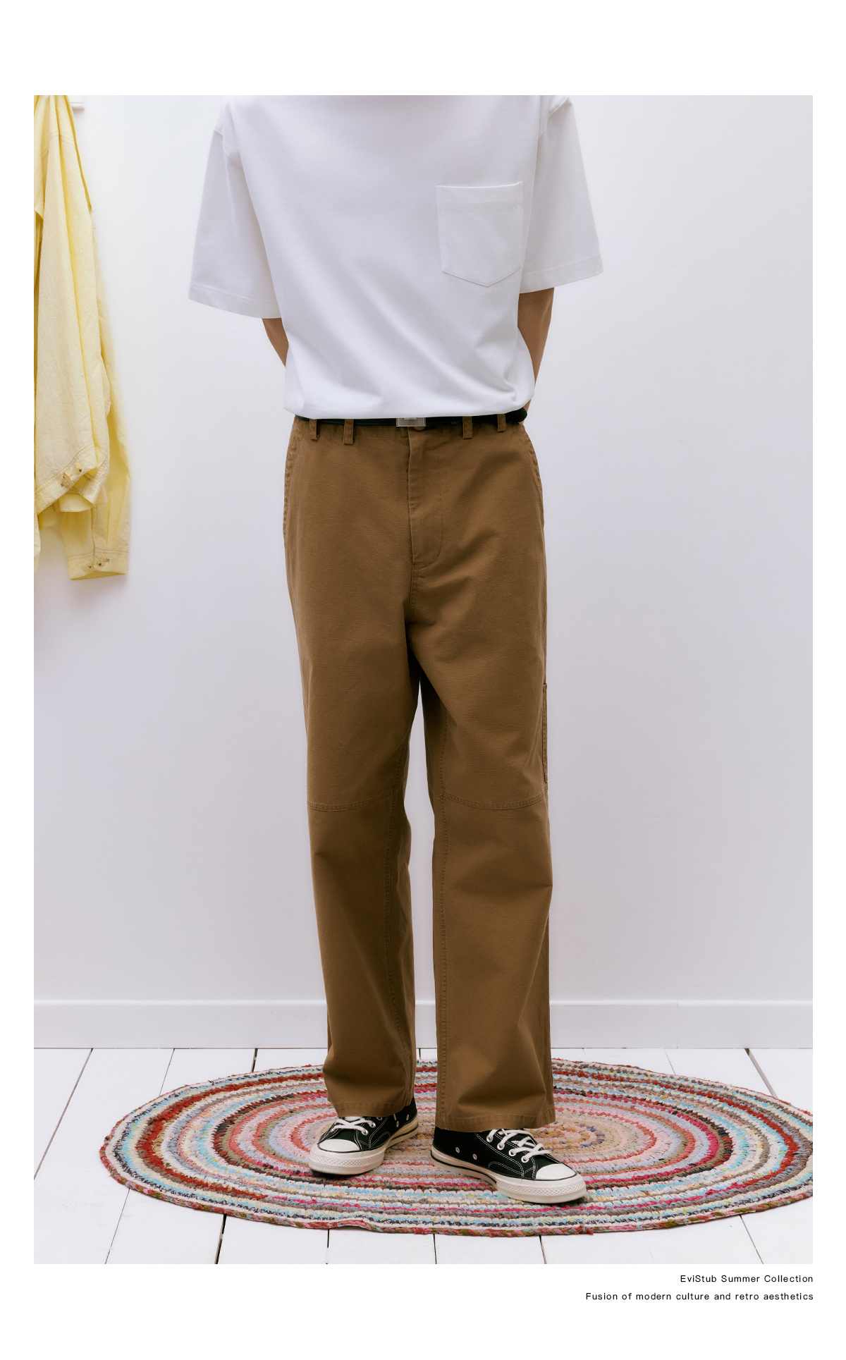 EviStub/E-4XCK618/重水洗密织全棉竹节抗撕直筒休闲工装裤