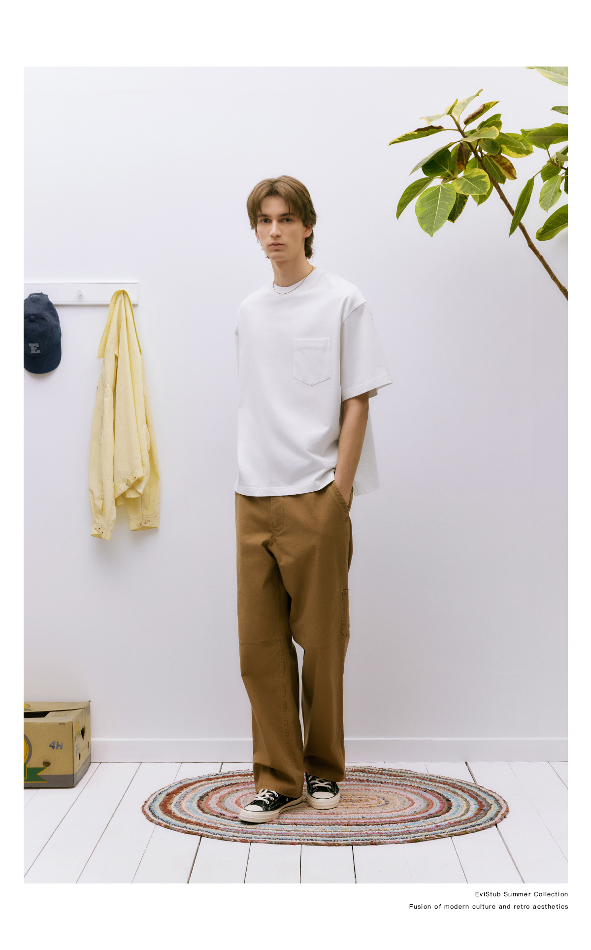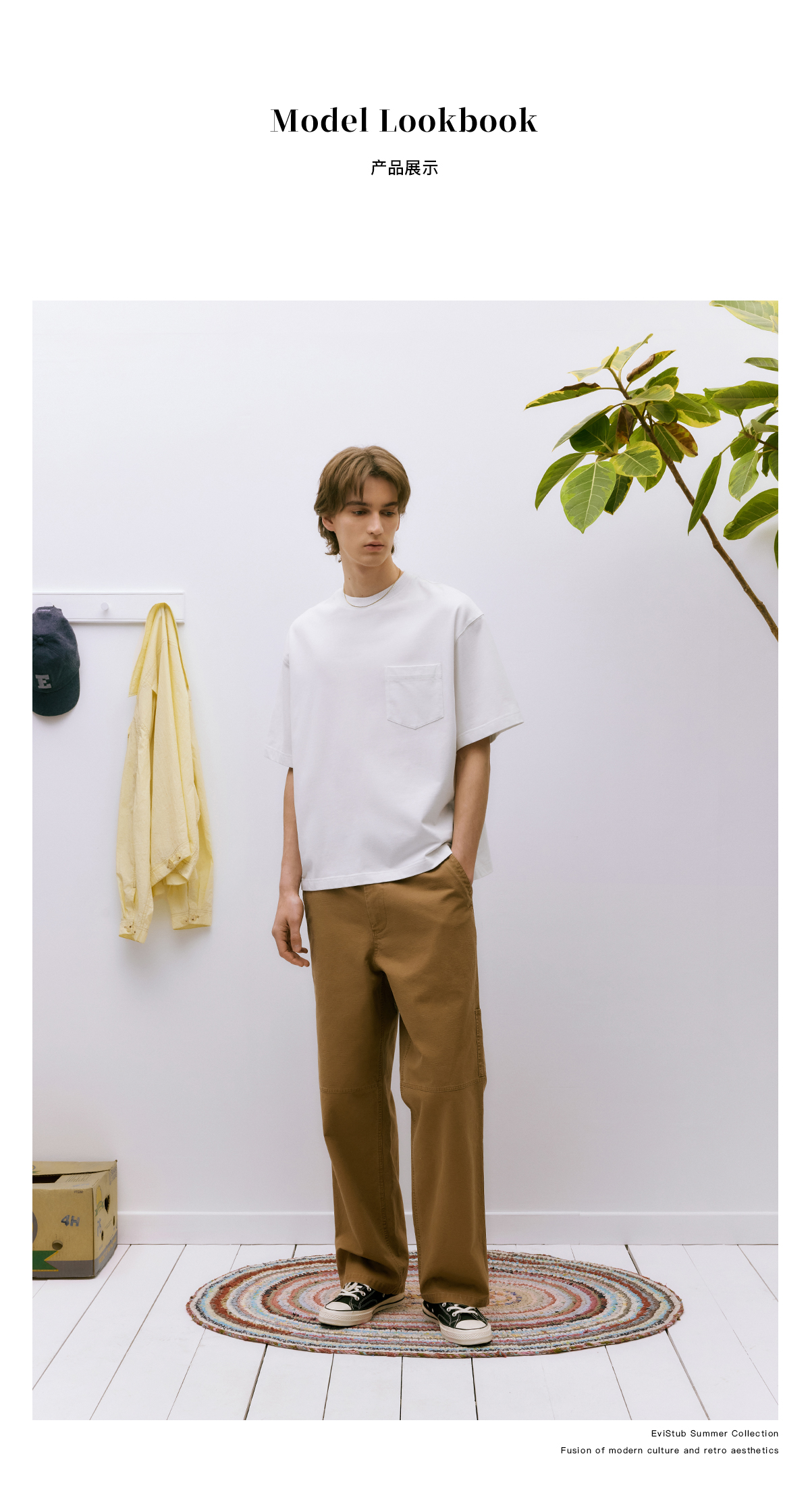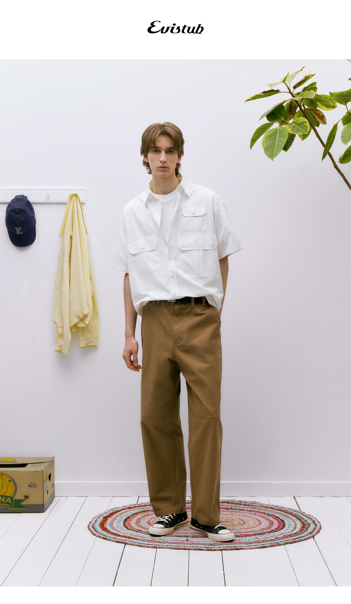 EviStub/E-4XCK618/重水洗密织全棉竹节抗撕直筒休闲工装裤