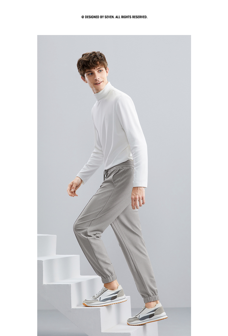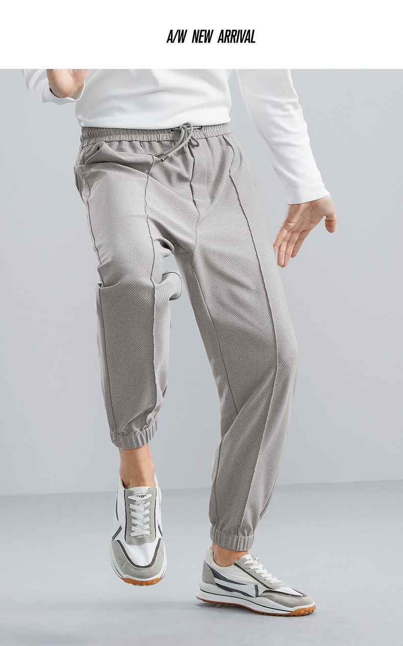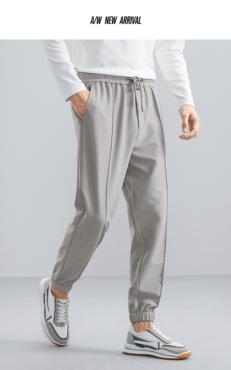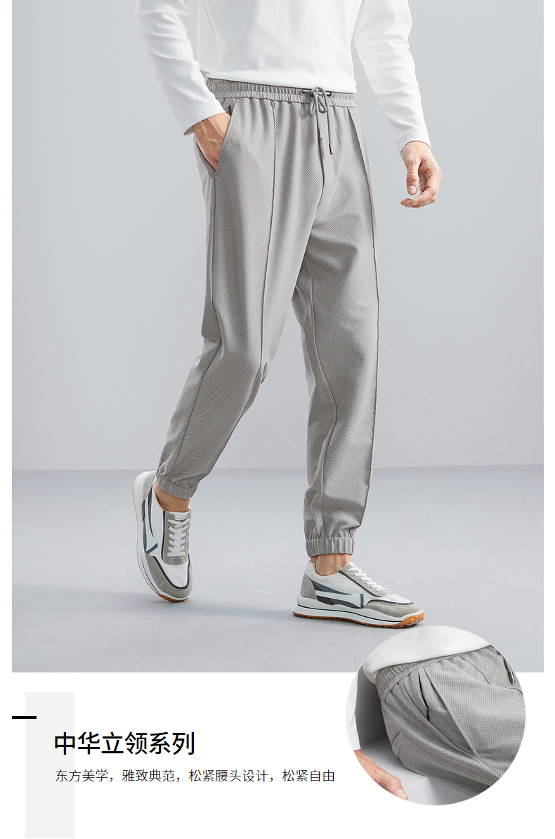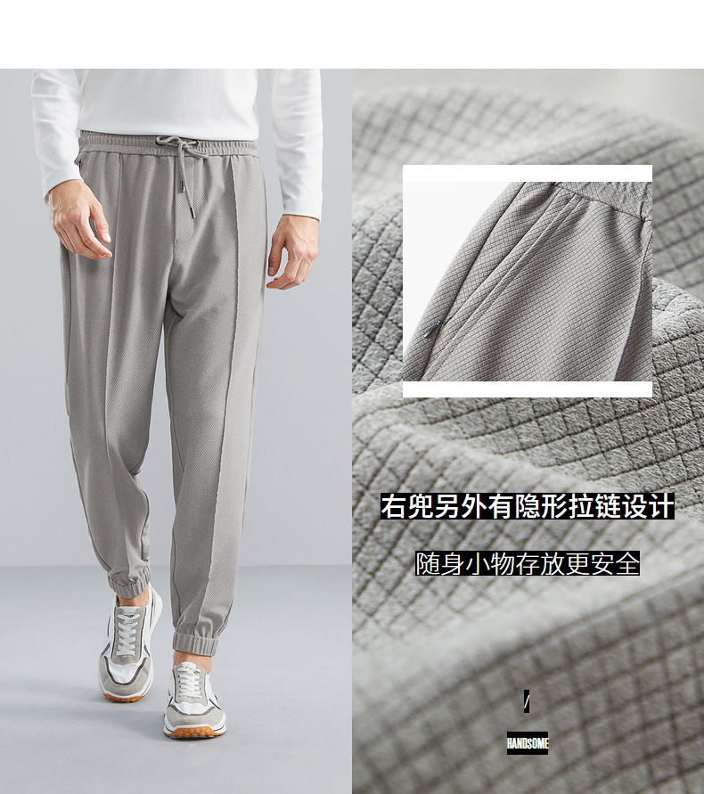 【特价】【华夫格】柒牌男士休闲裤秋季新款时尚潮流运动风抽绳束脚裤 125H71490