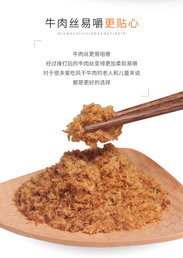 为孩子准备的无添加剂风干牛肉丝 180g/盒