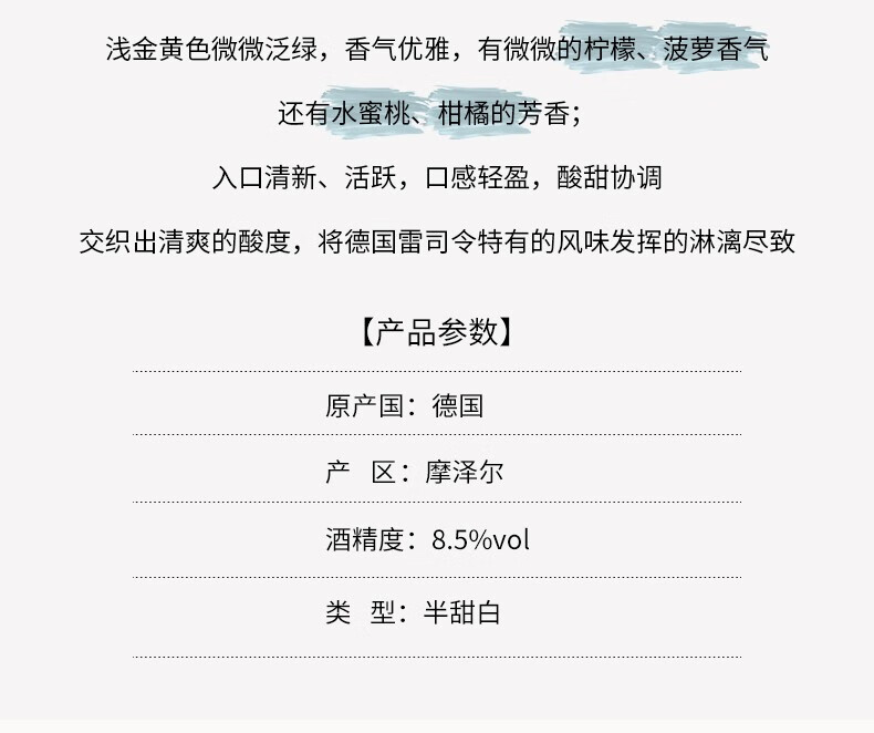 露森雷司令白葡萄酒750ml/010165 入口清新活跃口感轻盈