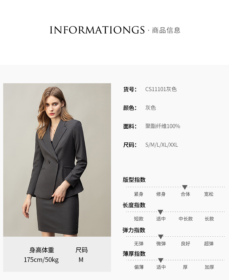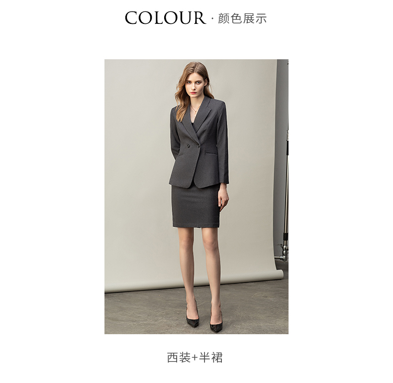 IWY/灰色职业装女正装套装高端时尚西装套裙气质通勤面试工作服OL CS11101灰色