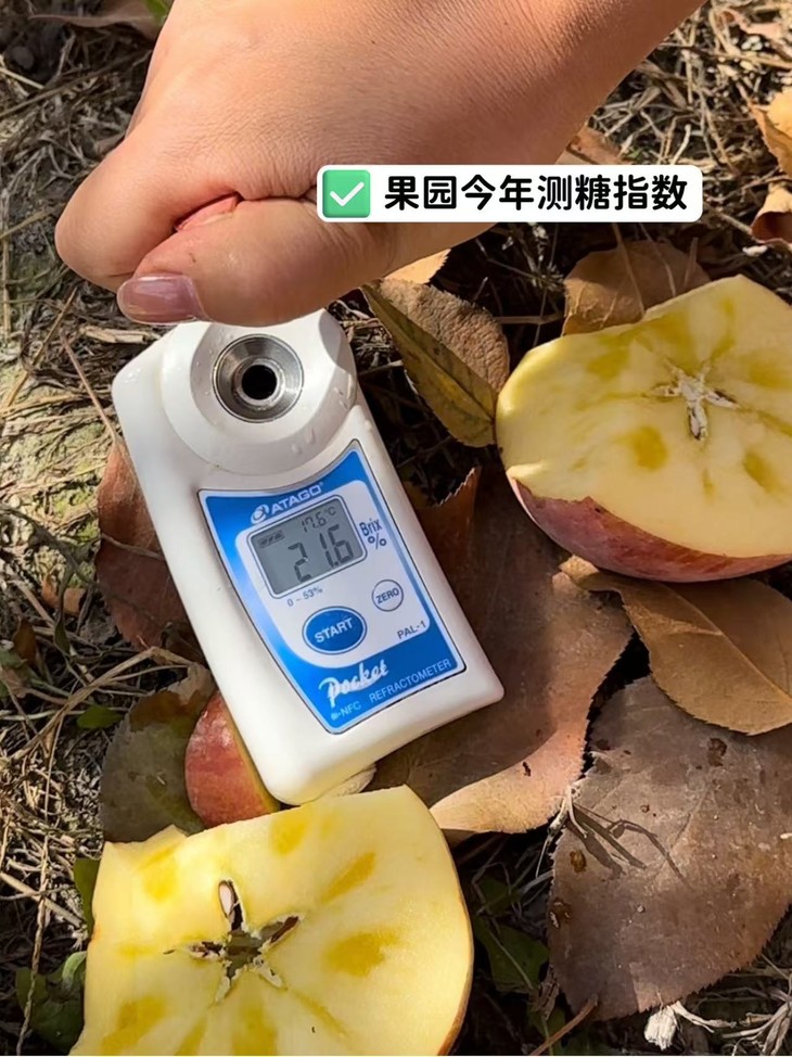 这时候的口感达到巅峰,一口咬下,冰糖心,果香浓郁,多汁香甜。成熟后糖度平均 16°以上,我们果园今年平均测糖 18+