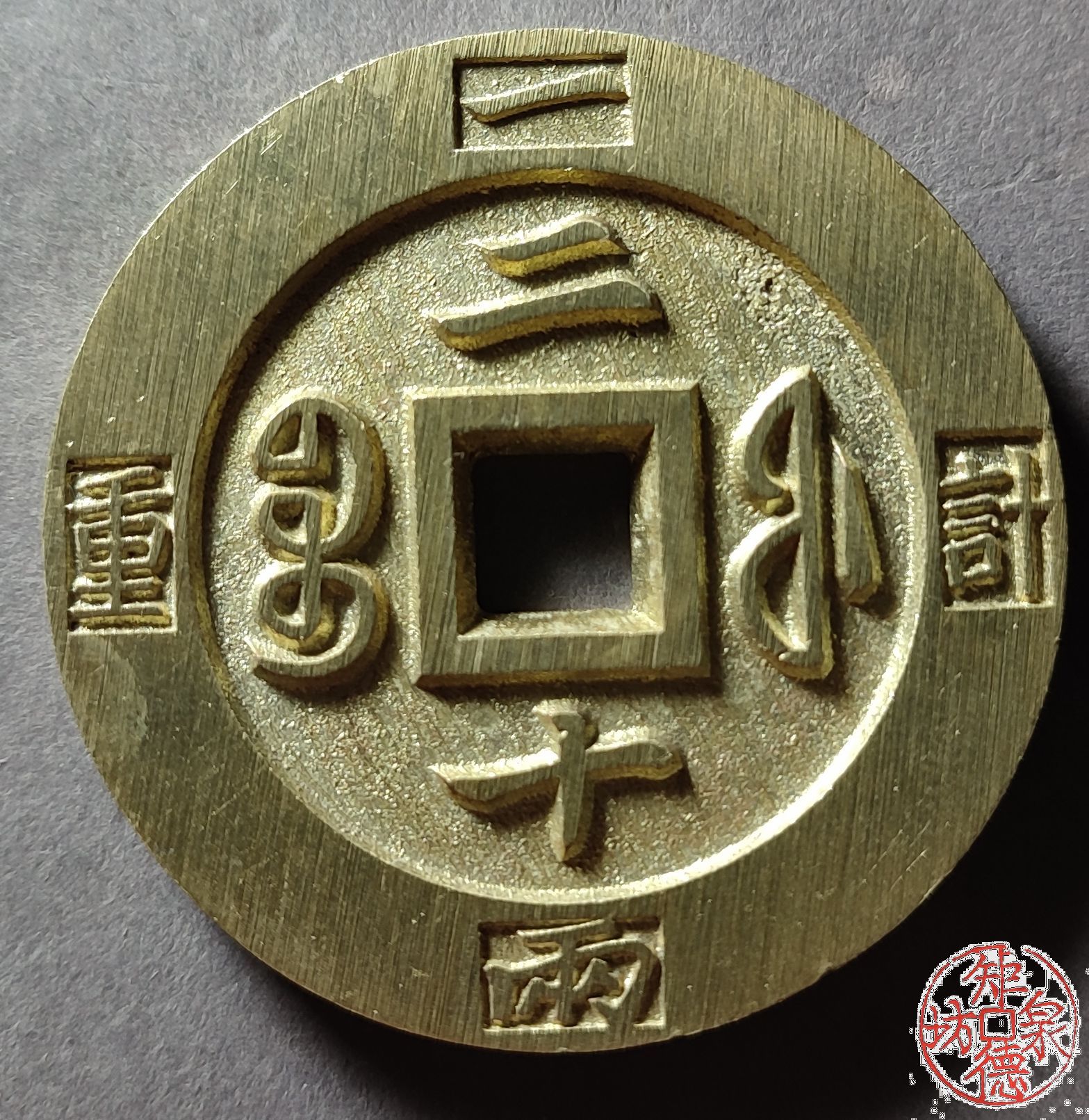 古泉书馆文创 咸丰重宝 宝福当二十外计重 文房铜镇 G0042