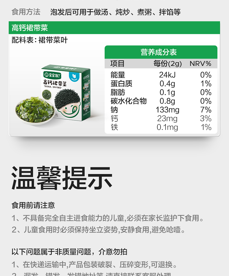 【宝宝馋了】高钙裙带菜 高钙无沙免洗 送8月+婴幼儿食谱