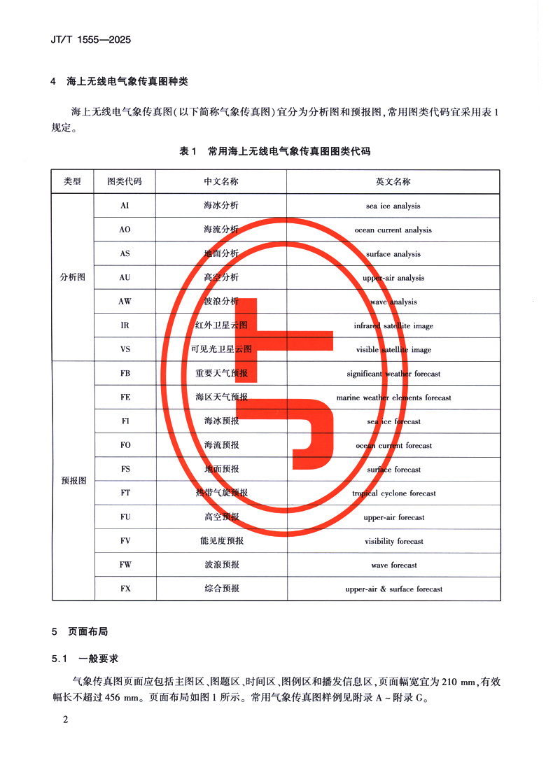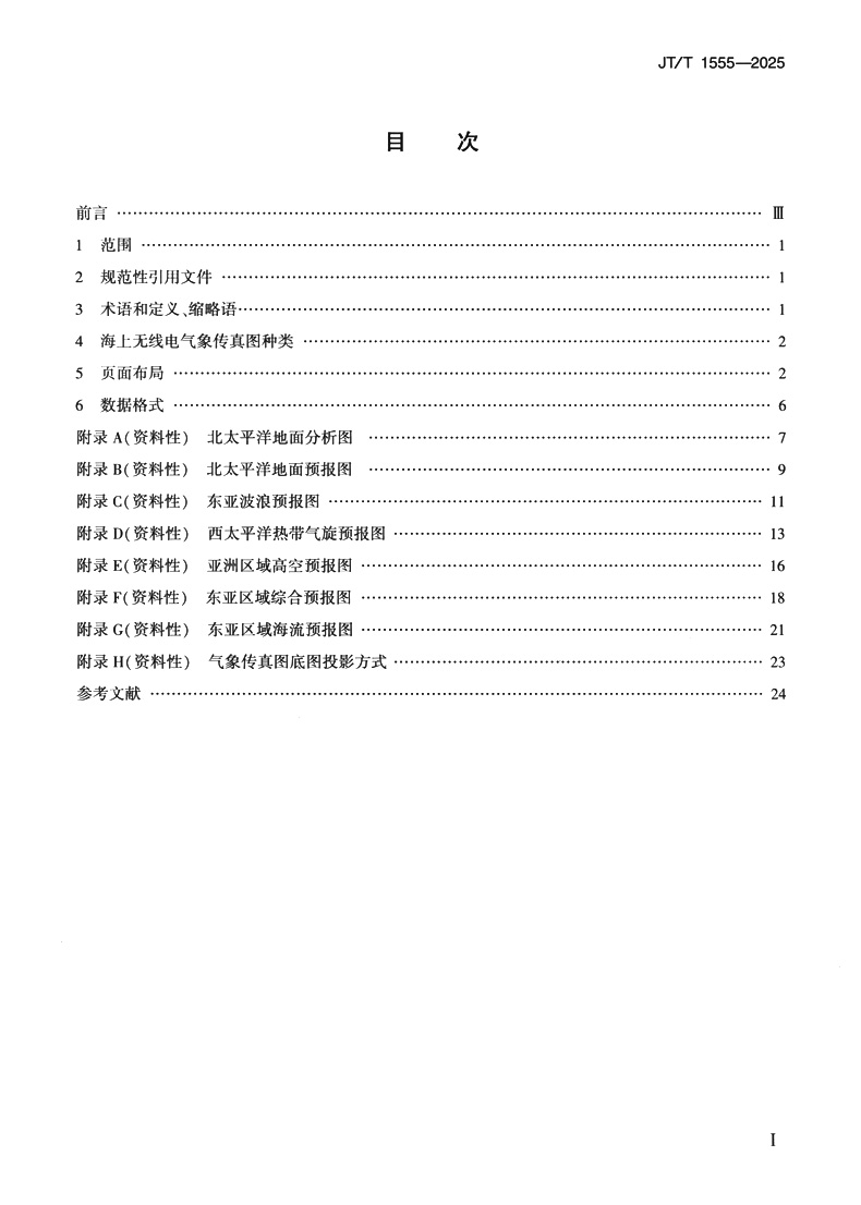 书名:海上无线电气象传真图及数据格式规范(JT/T 1555—2025)