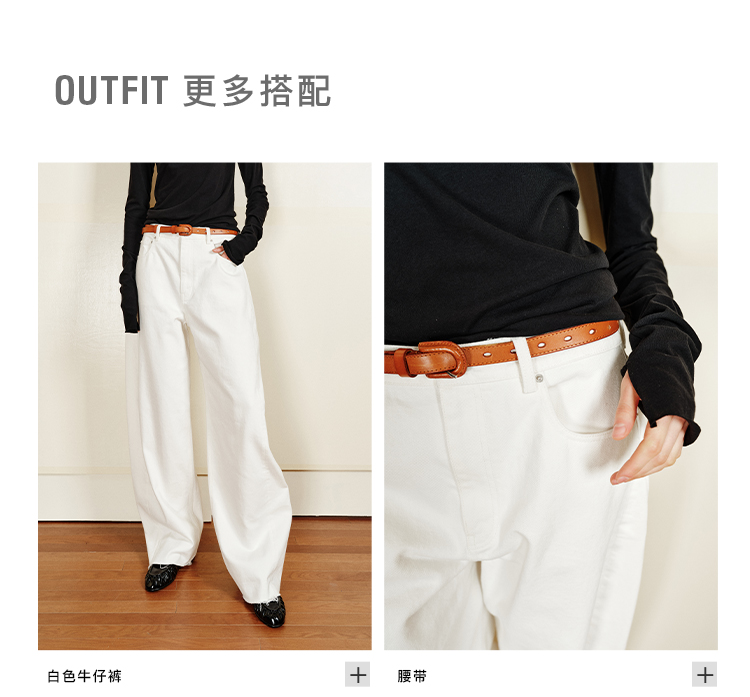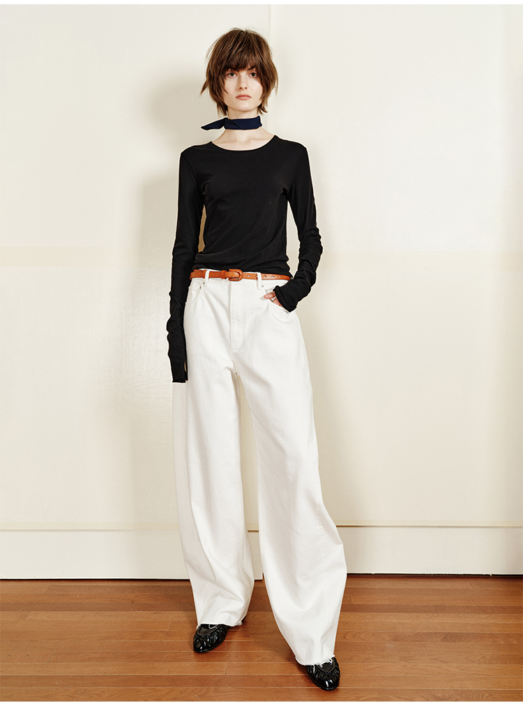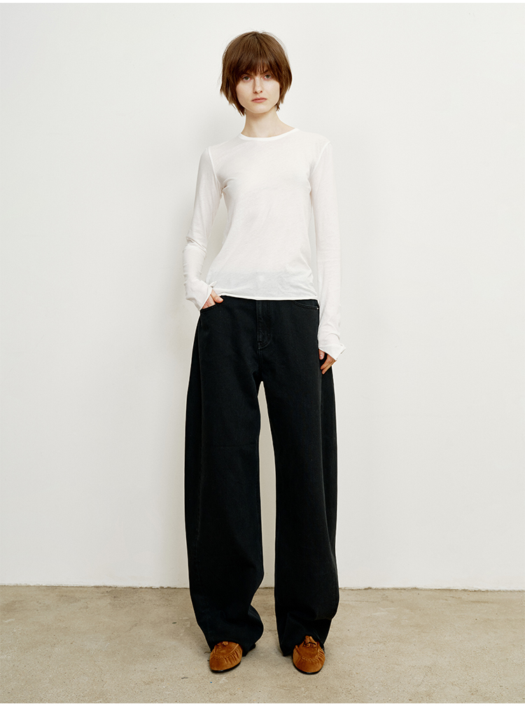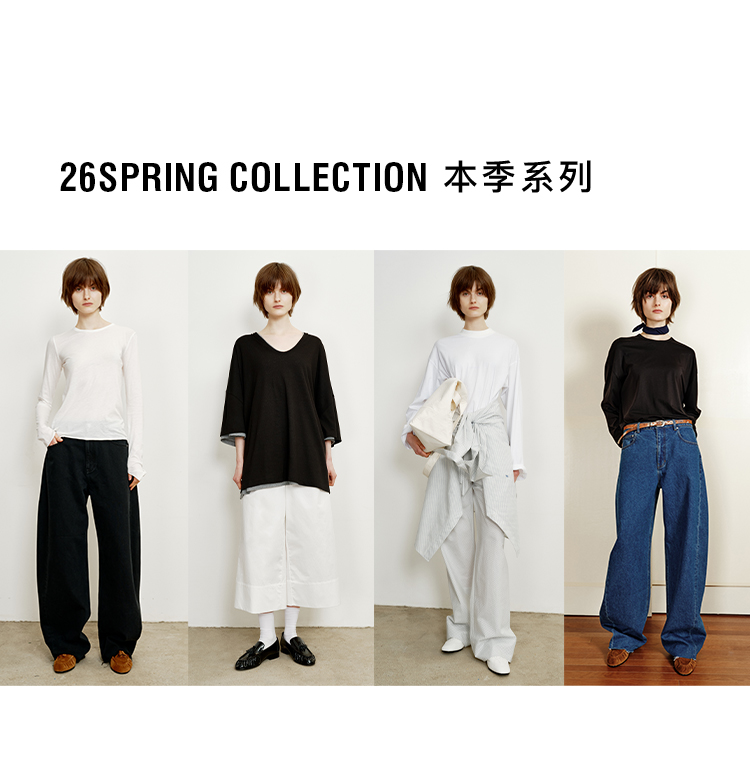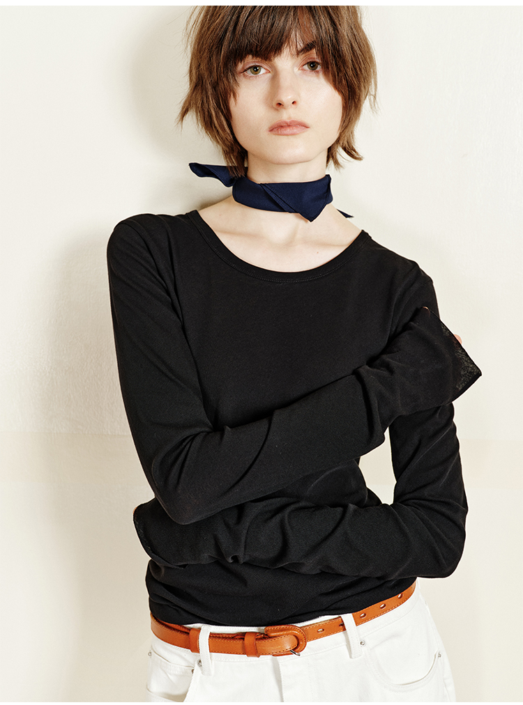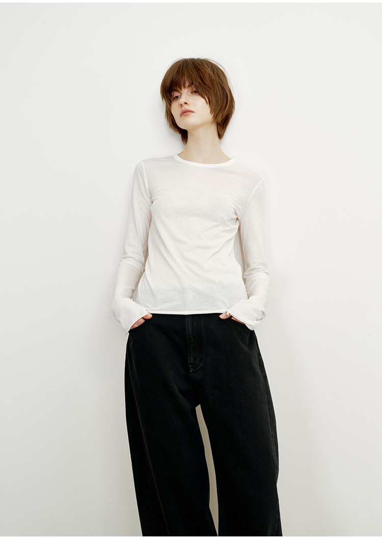 hidemi副线小h 匹马棉简约圆领修身卷边打底长袖T恤