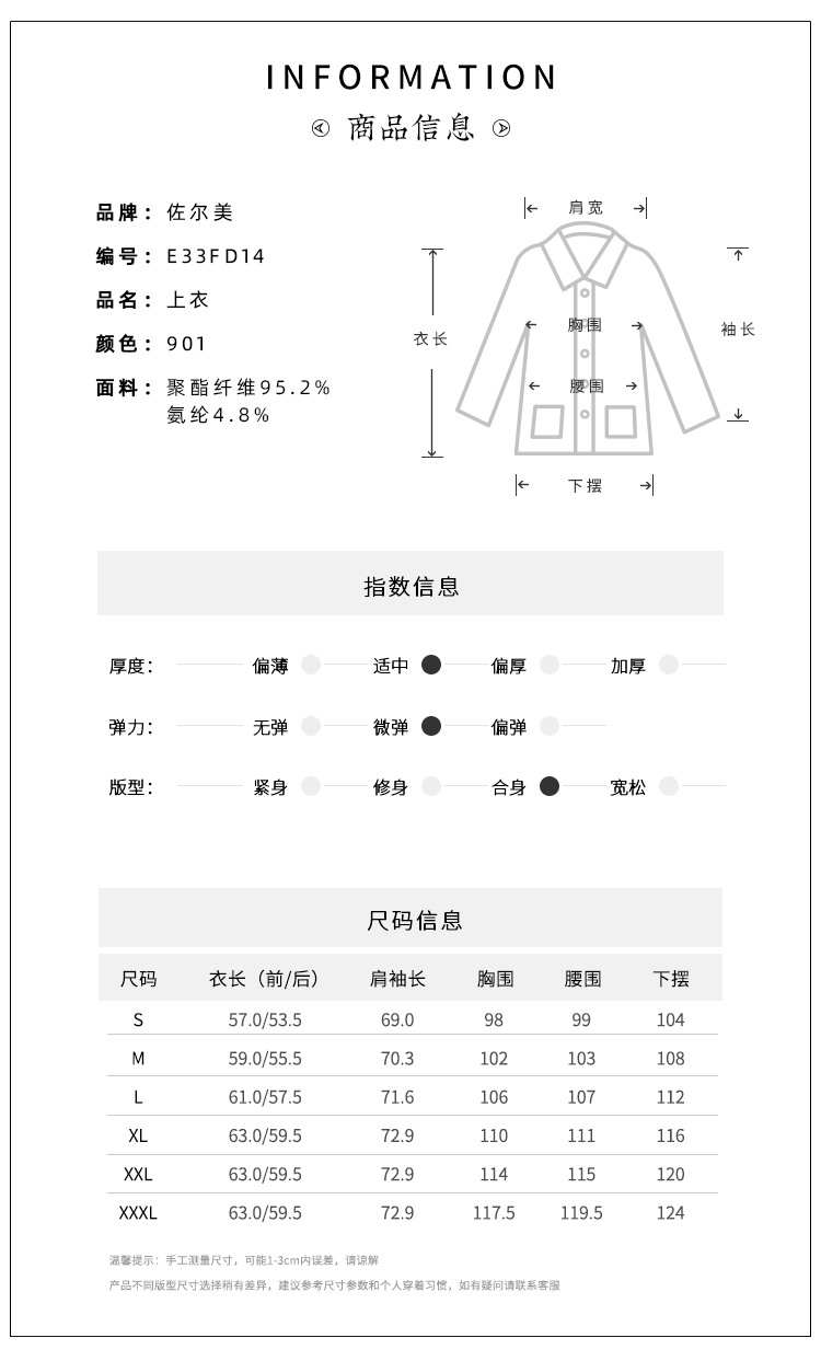 佐尔美春秋季女装时尚休闲中袖西装领中长款外套大码E61CC09