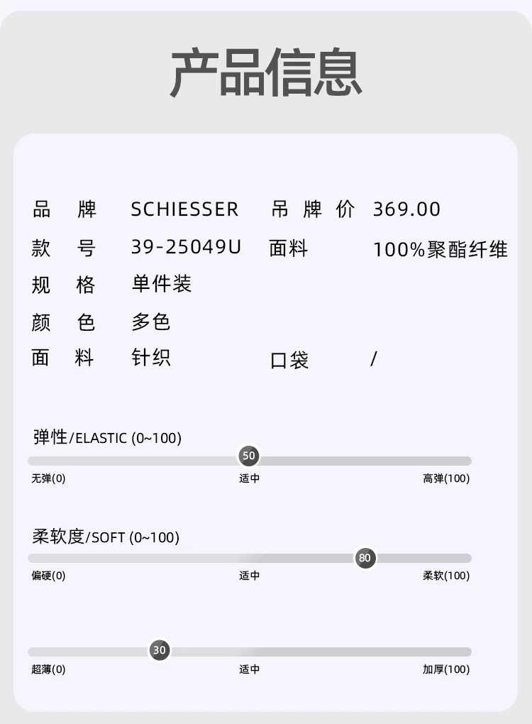 - 来自德国的SCHIESSER舒雅,专注做内衣一百四十余年,不遗余力的材料创新,因材而异的专业剪裁,健康环保的加工技术以及充满文化关注的时尚主题,做你认识之外的舒适内衣。