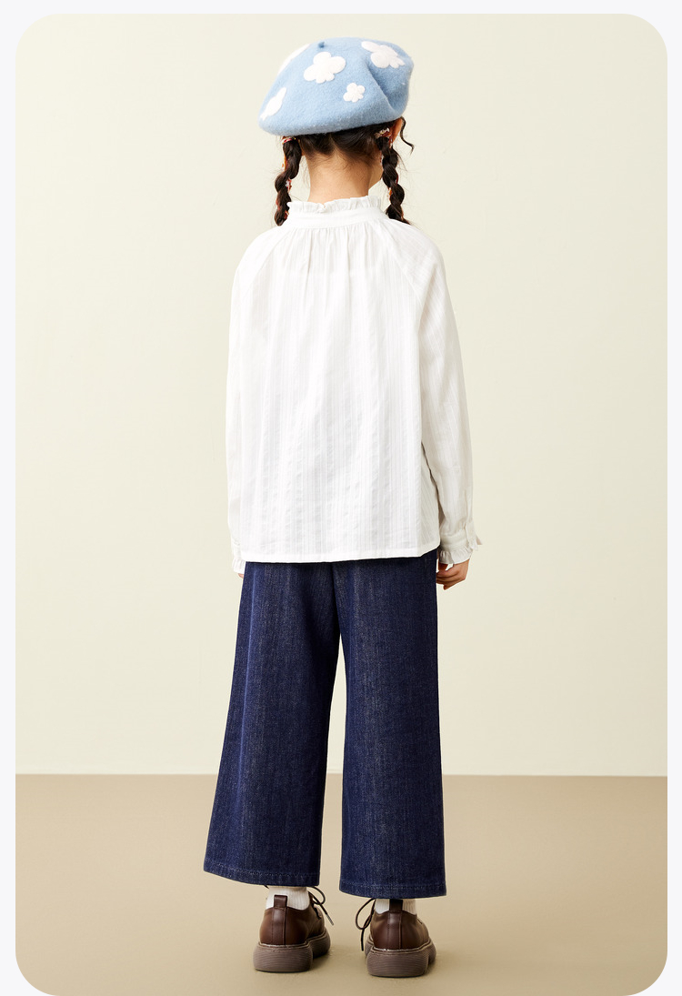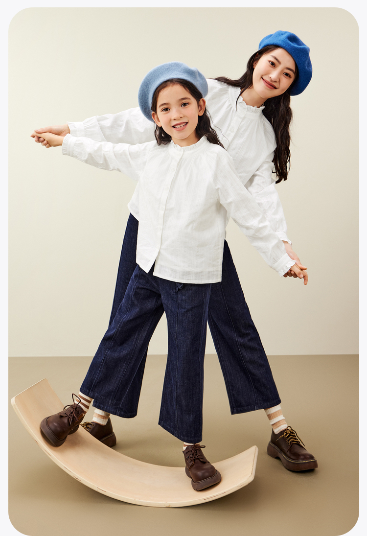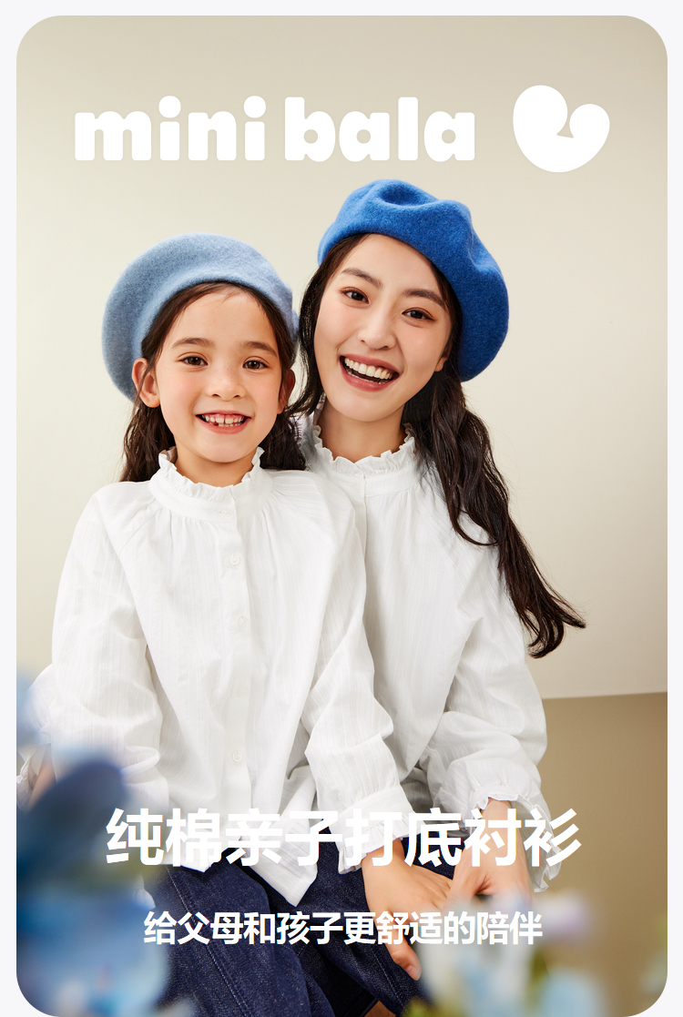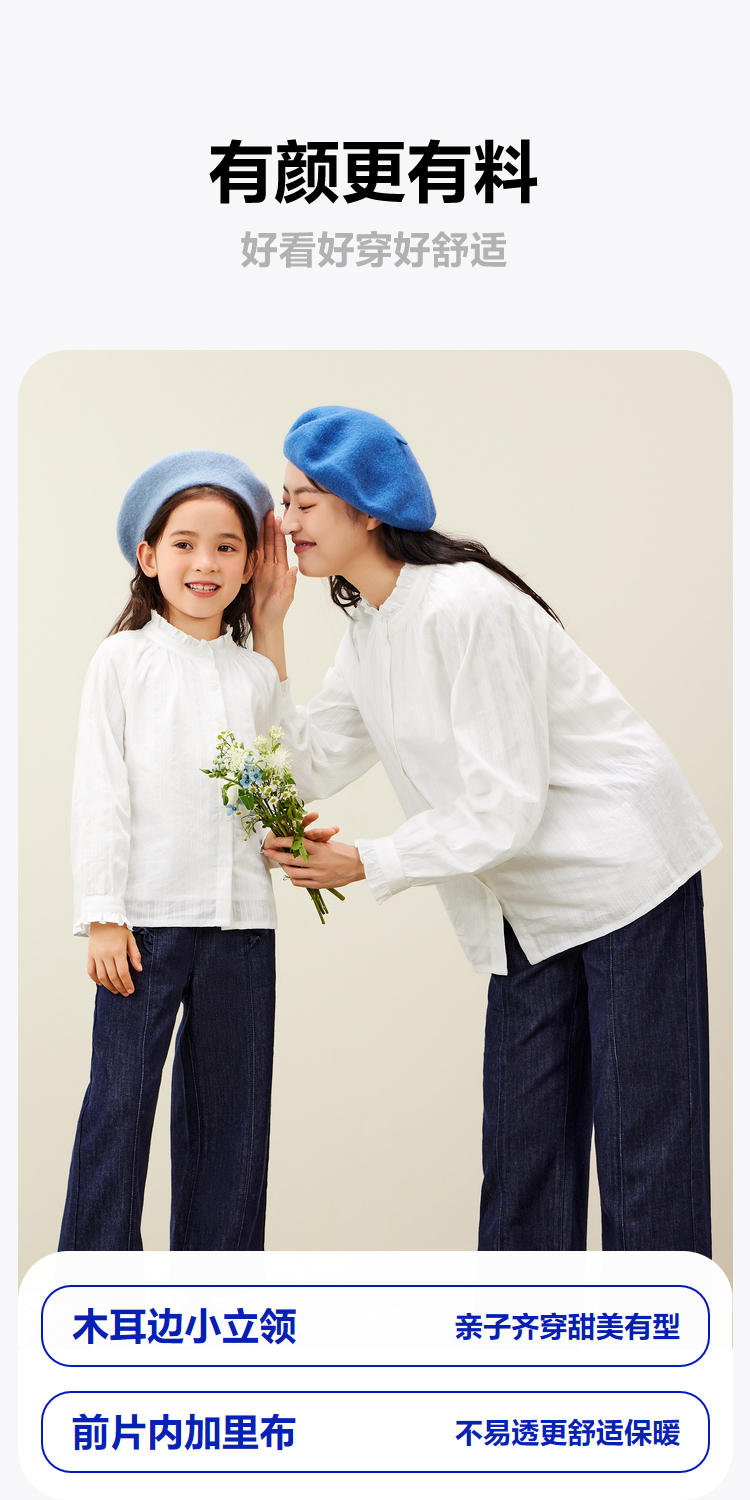 【mini亲子 宝妈款】迷你巴拉女童秋新品木耳边甜美上衣长袖衬衫