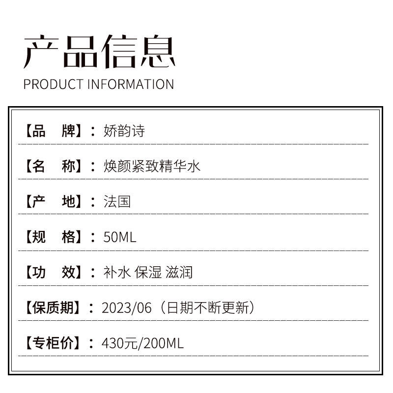 【爆款超低价预售 急单慎拍】专柜小样 娇韵诗焕颜紧致精华水50ml保湿紧致 分龄精华水孕妇可用