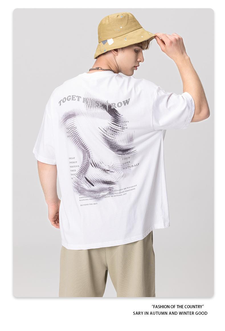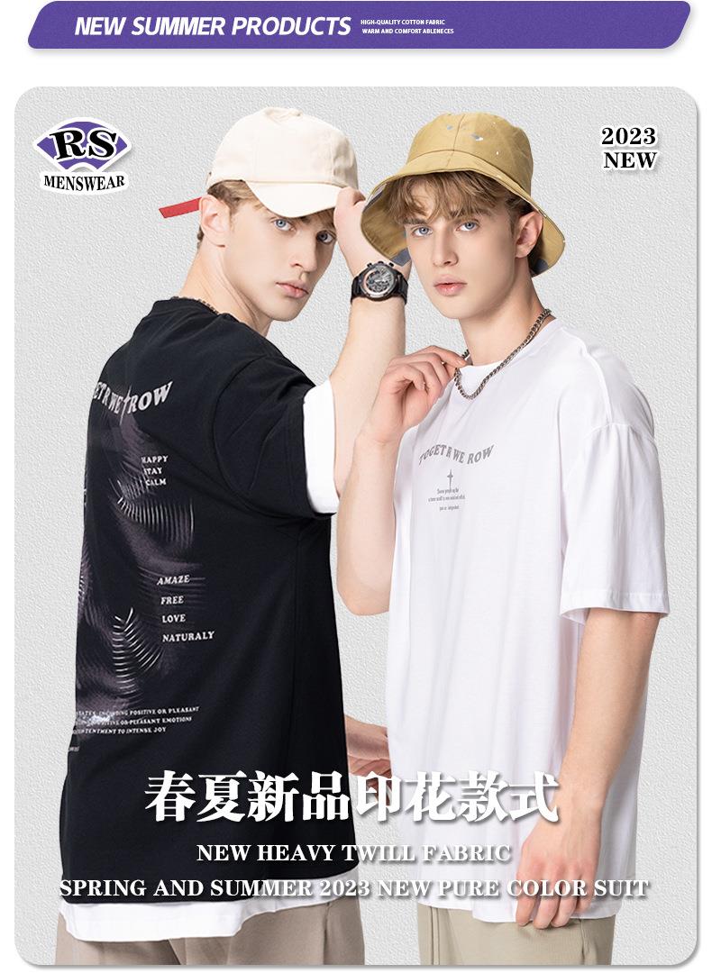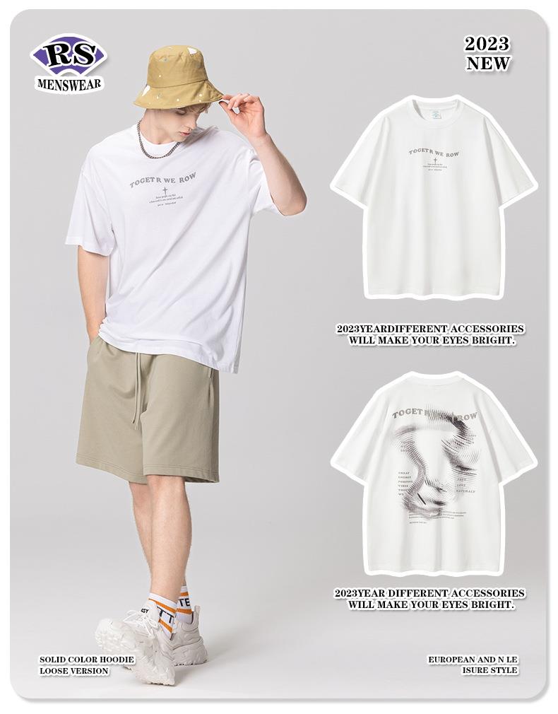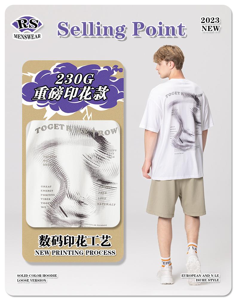 RS男装|2023夏季230g新款意识流水浆印花短袖欧美复古潮牌男士T恤