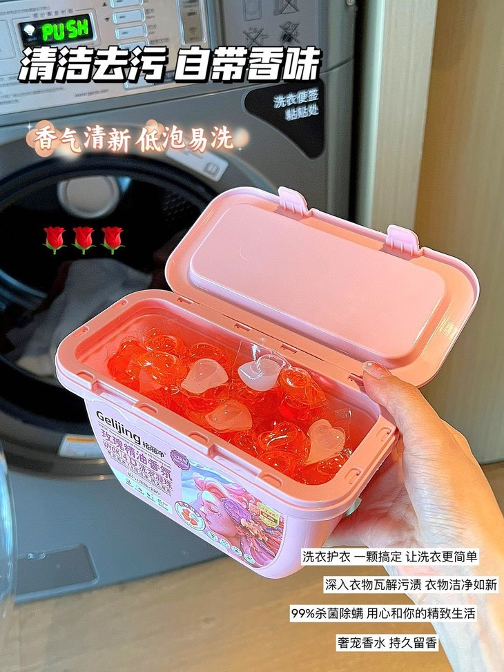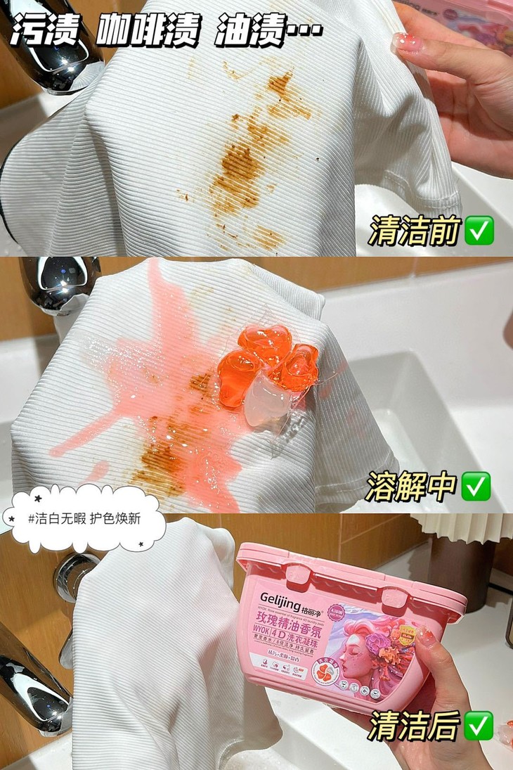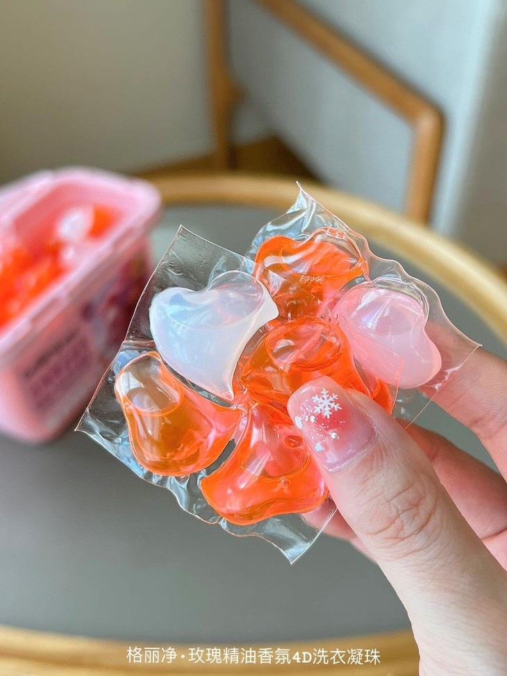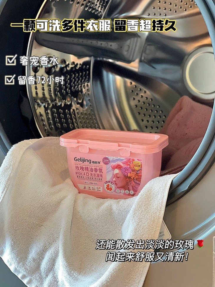 格丽净玫瑰精油香氛4D洗衣凝珠 一款香香的洗衣灵珠💥轻松get奢华香气 ✅柔顺护衣,异味控制技术,环绕锁香留香更持久 ✅8倍洁净力 颗盖洗衣液 ✅环保无添加 🚫磷🚫荧光🚫增白剂 ✅低泡易漂 大人小孩衣物都可洗 精致女孩又怎么容忍得了一身汗味 挖宝小能手上线~~🥹 一款香香的洗衣凝珠,衣服洗得白白净净