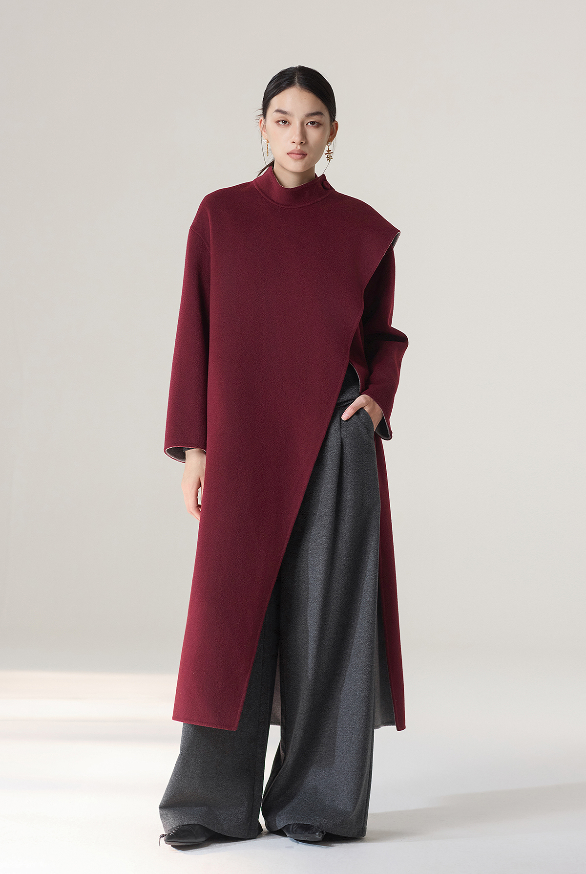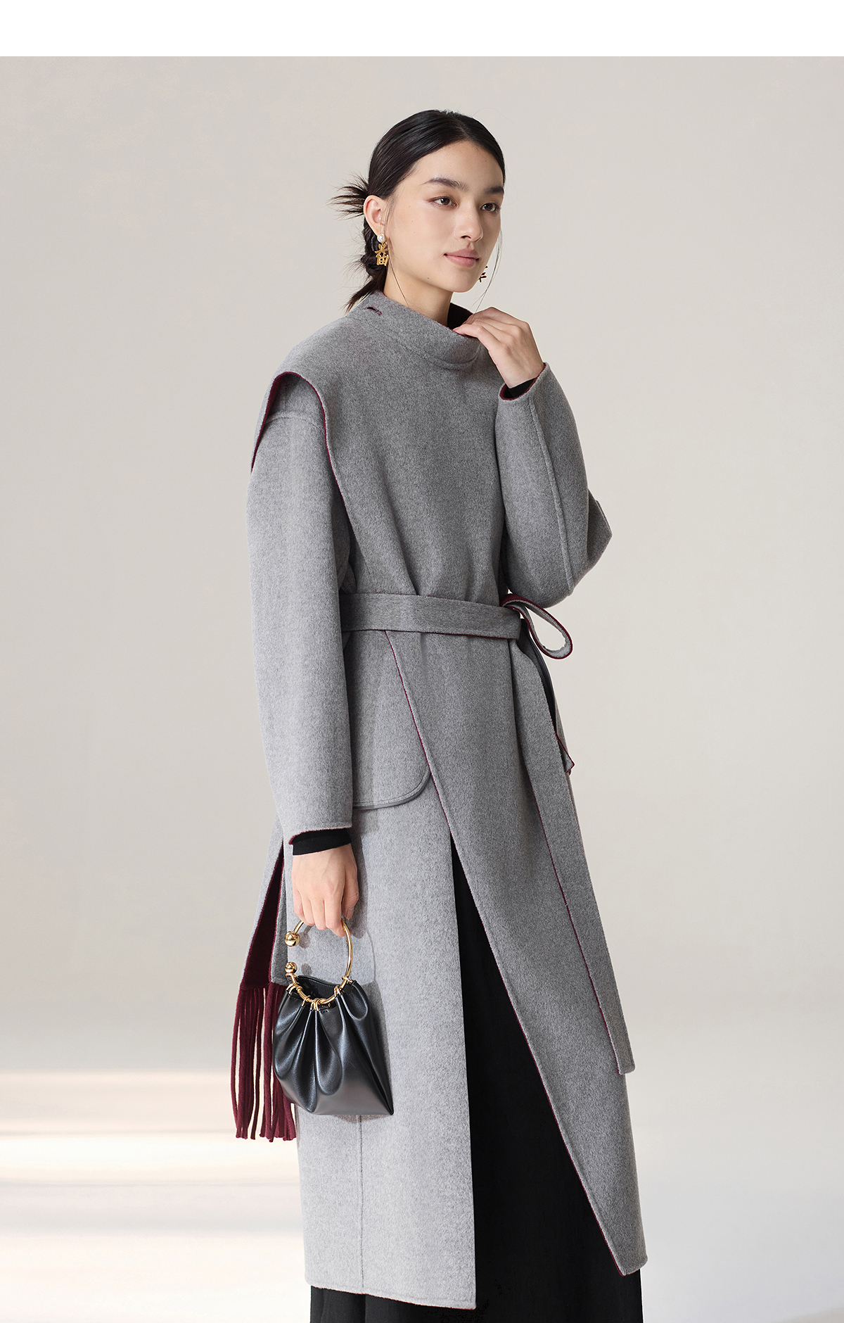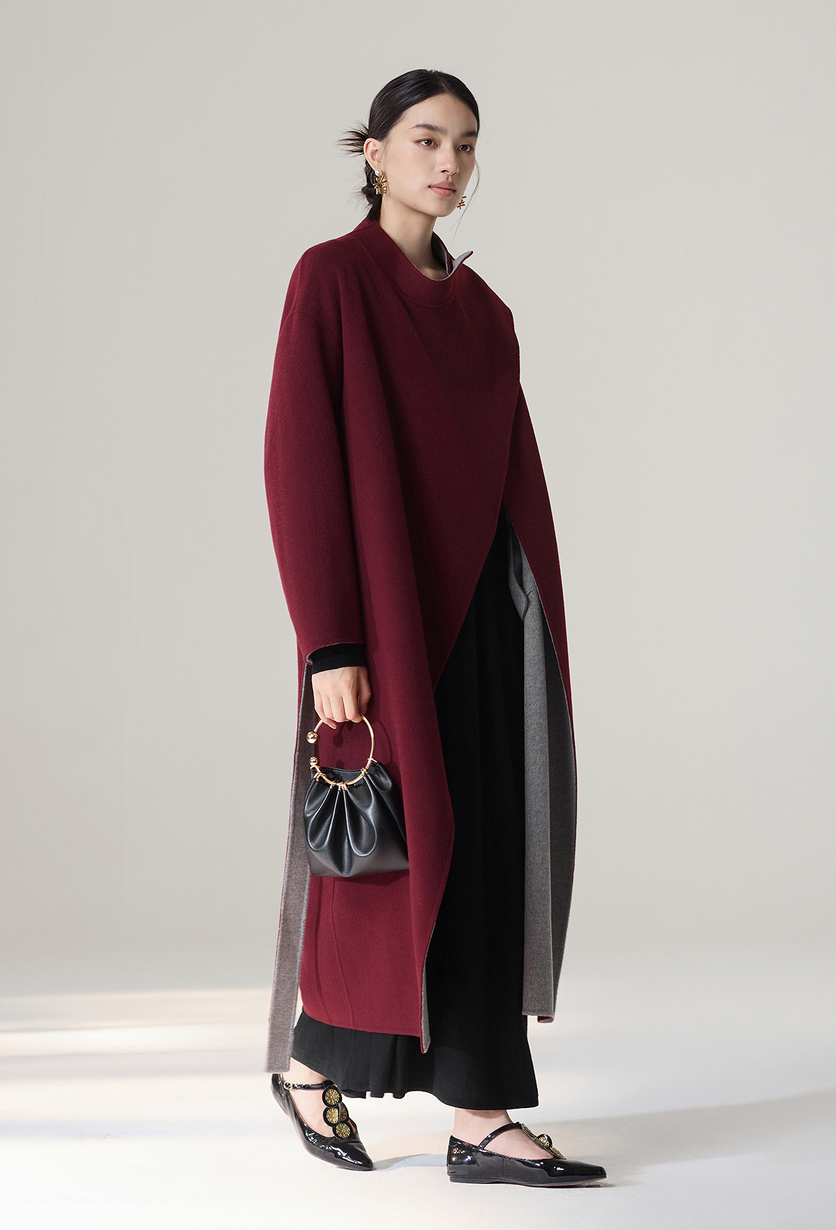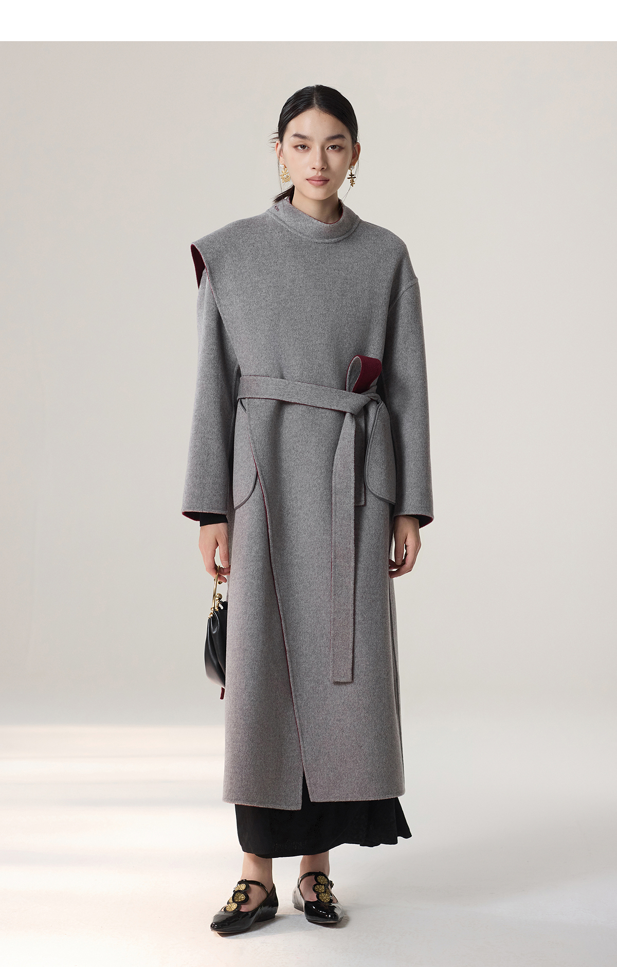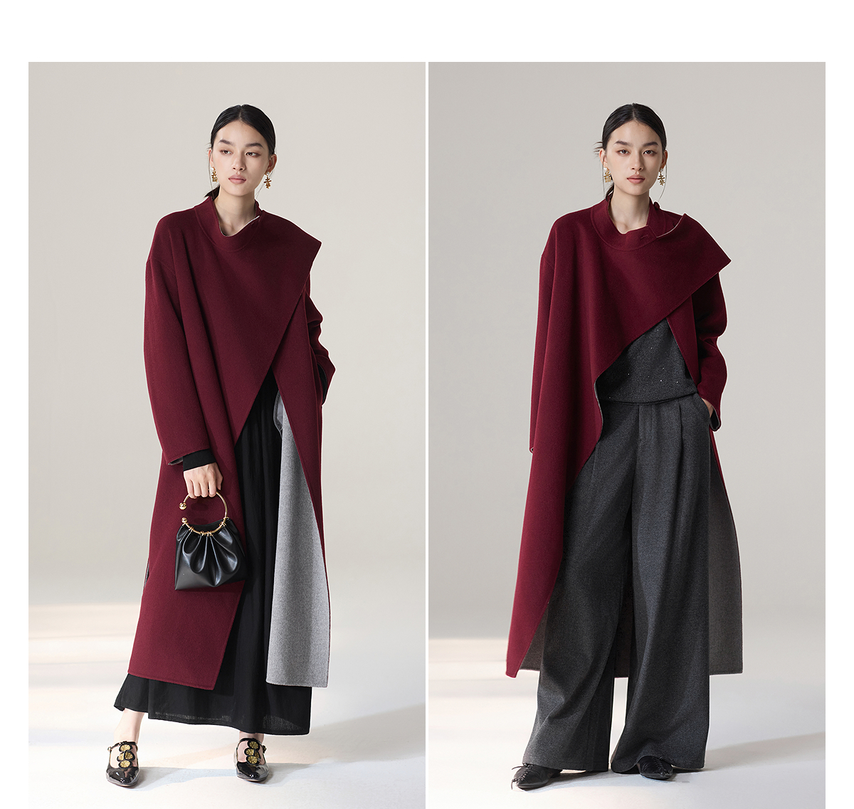 【林栖设计小店】雾织山花系列绵羊毛双面呢外套双穿斗篷风气质短款2025秋冬新款大衣女1954032