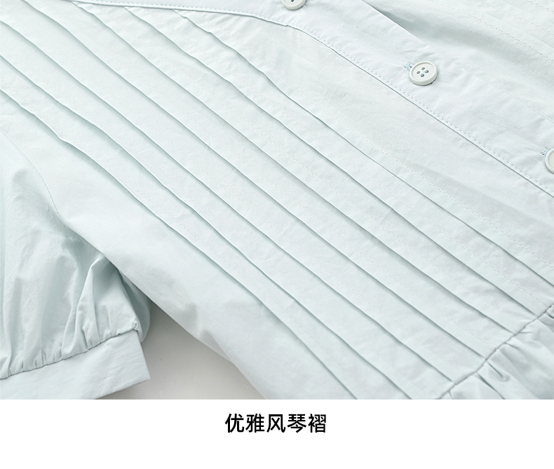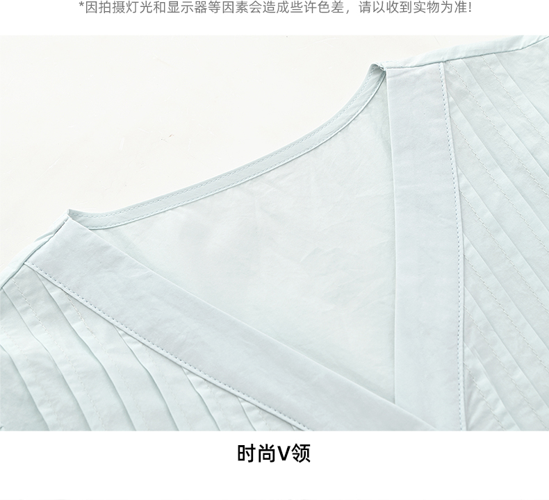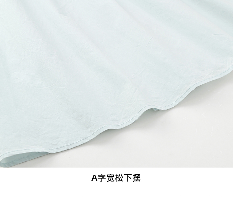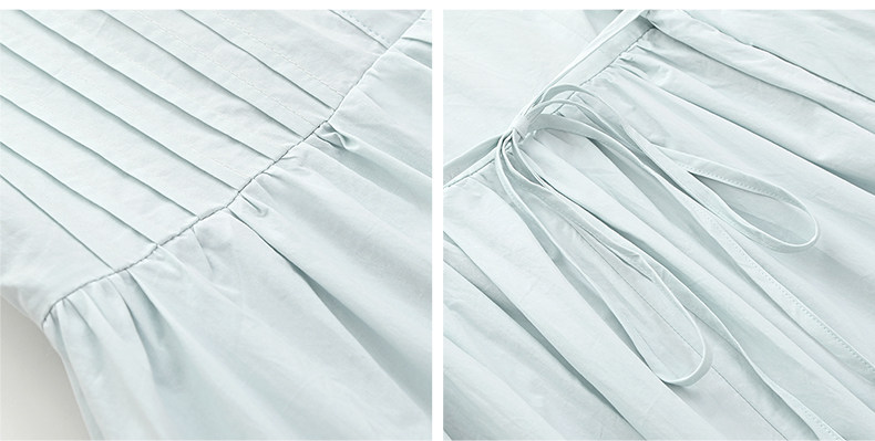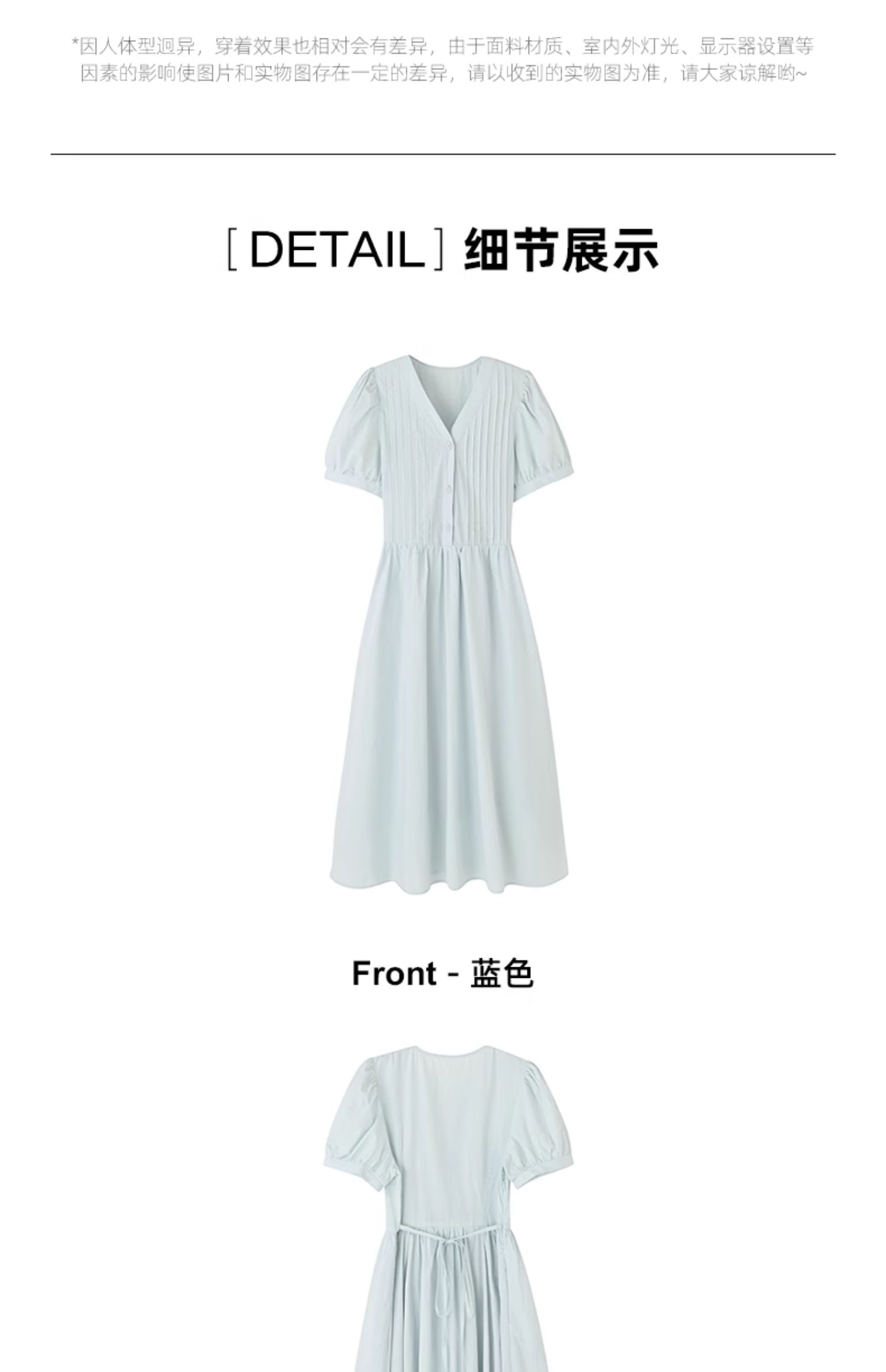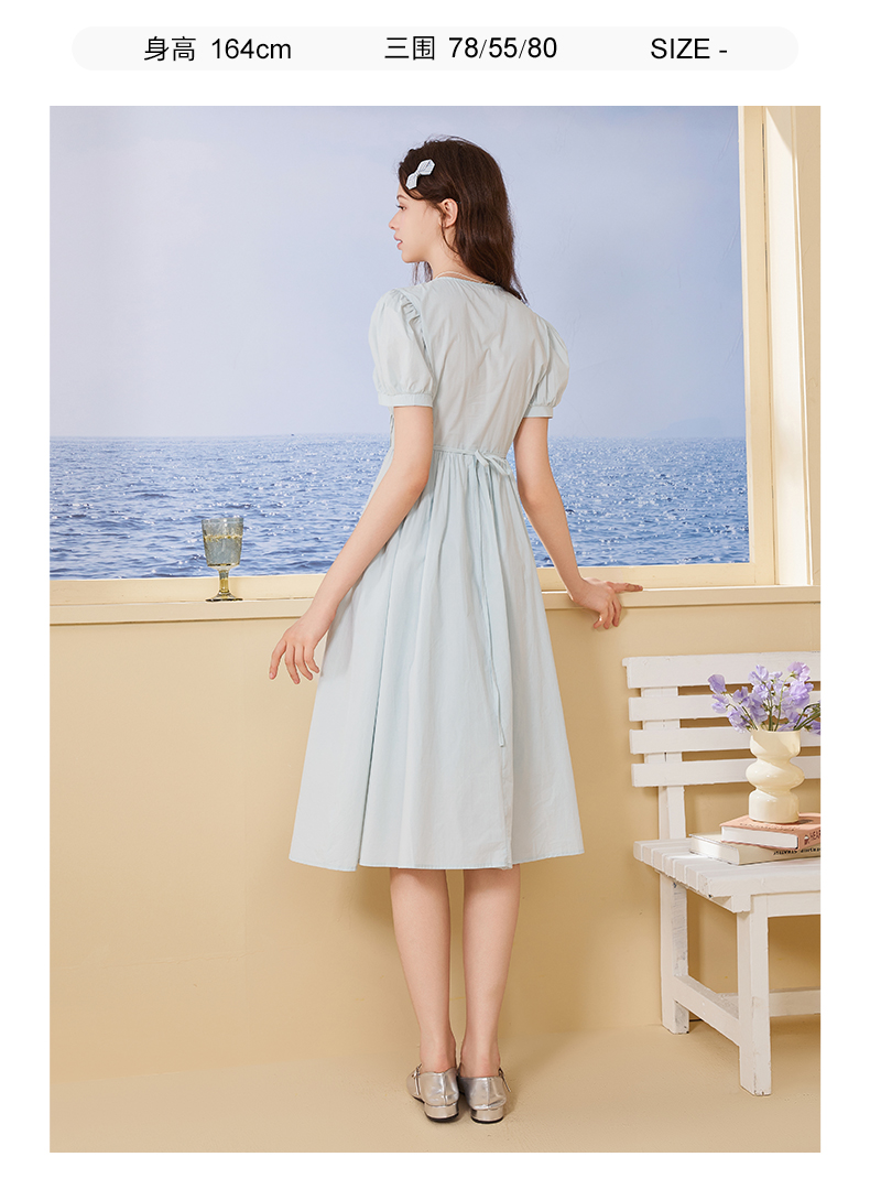 mc2宽松V领风琴褶韩系度假风连衣裙女装2024夏季新款时尚显白蓝色