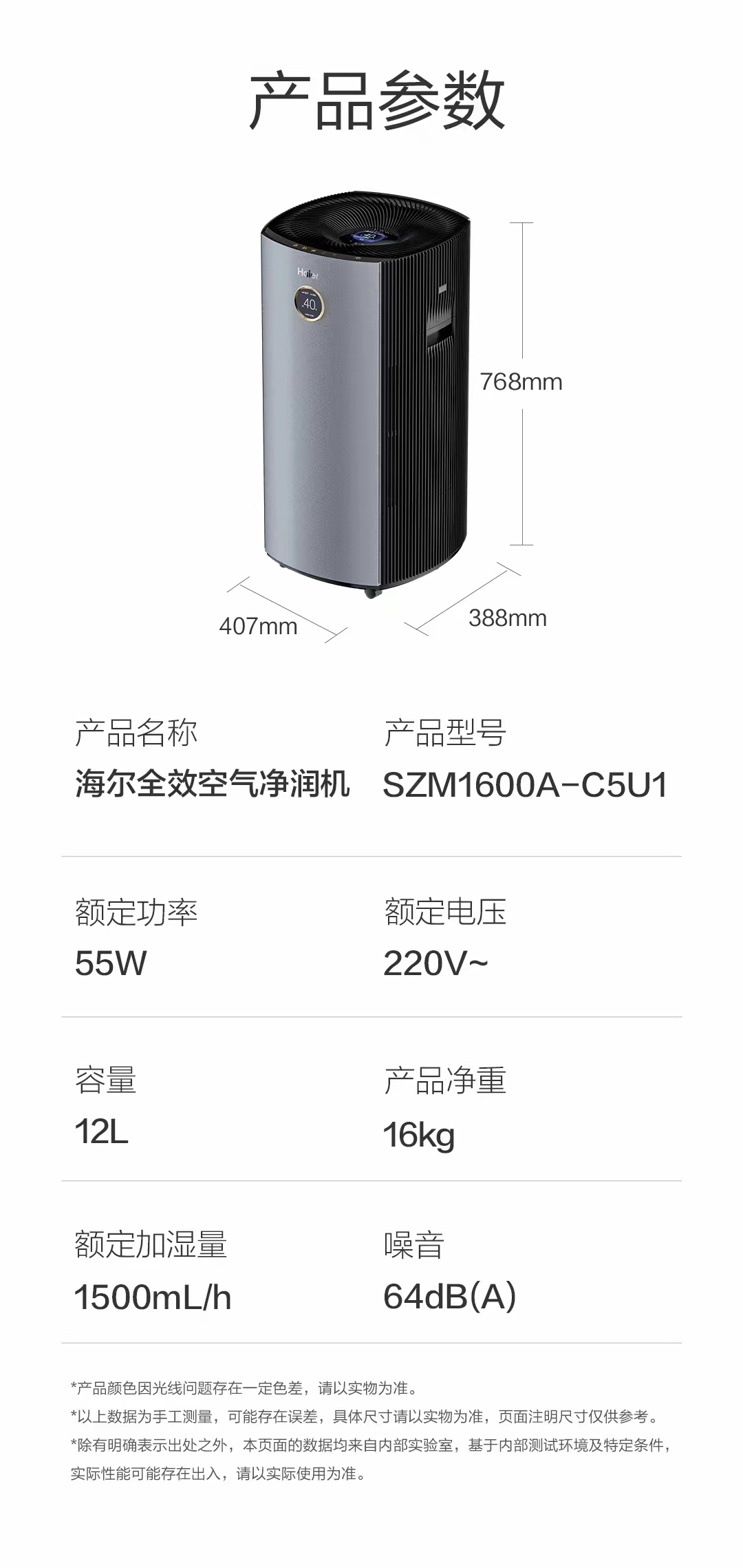 以旧换新-海尔空气净化器加湿净化器一体机 除甲醛紫外线杀菌除异味 无雾加湿减少干燥 除烟味负离子清新空气 【母婴专用】SZM1600A一C5U1加湿净化一体机