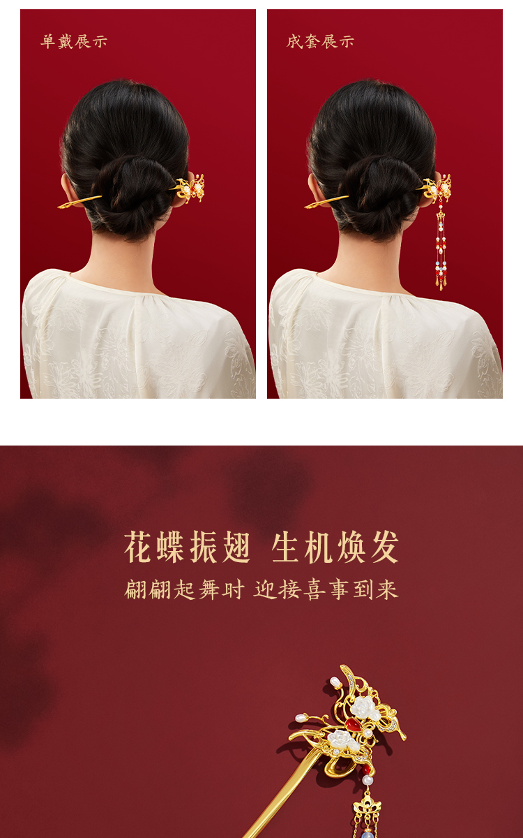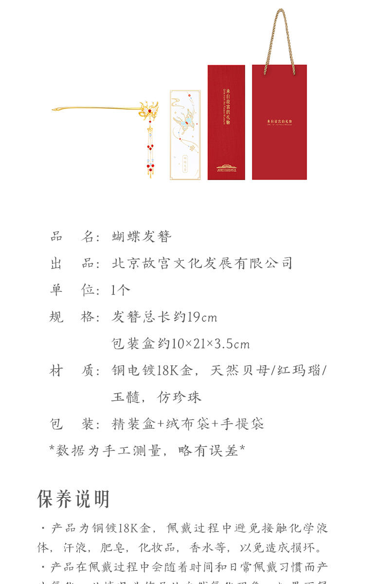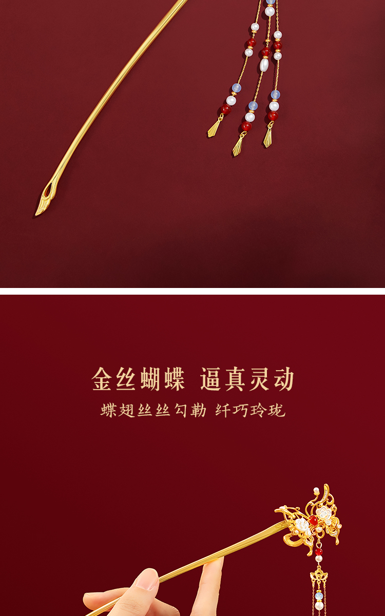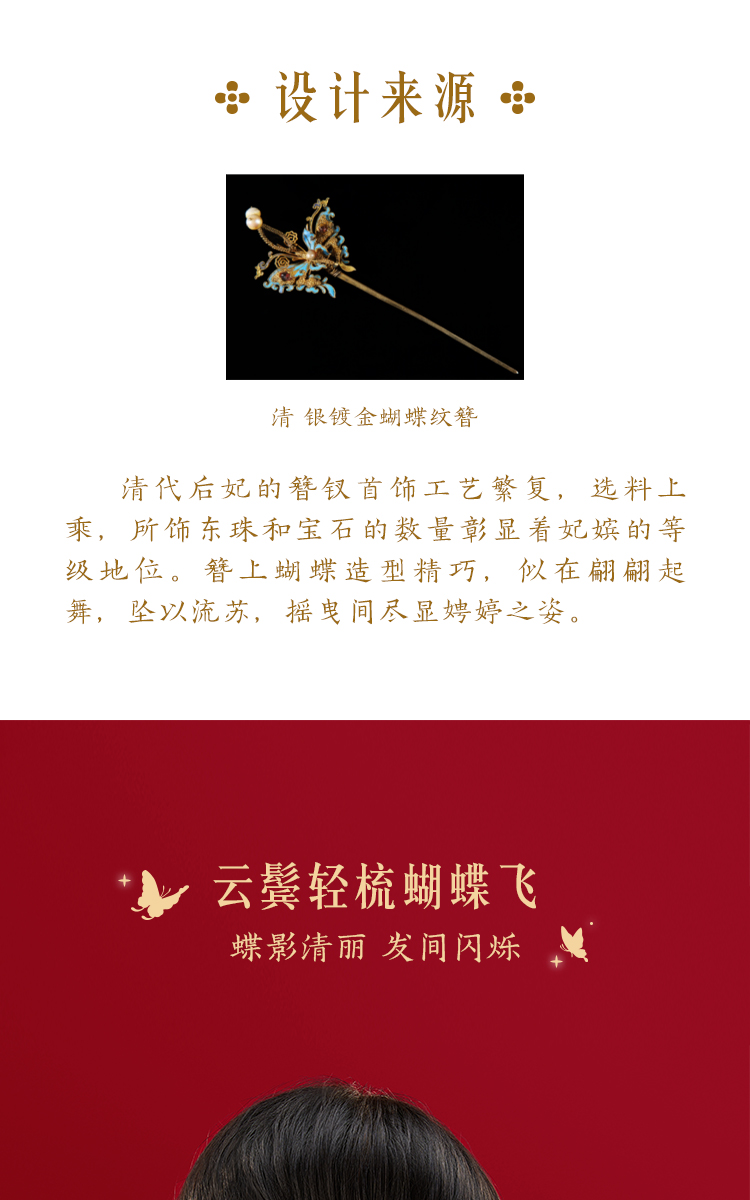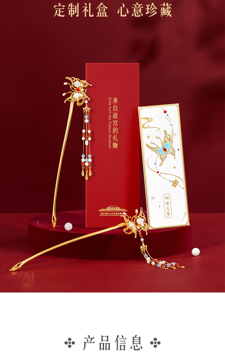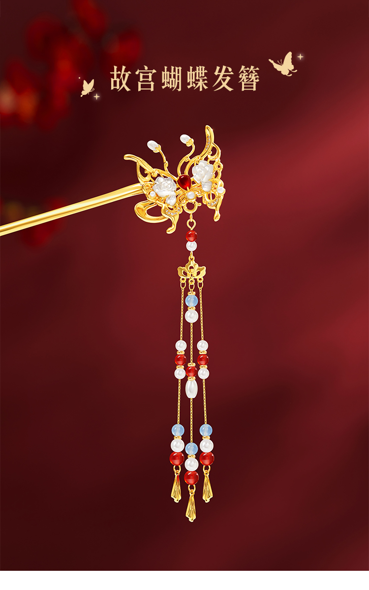 【故宫饰品】蝴蝶发簪新中式流苏盘发簪子发钗古风高级感生日礼物女