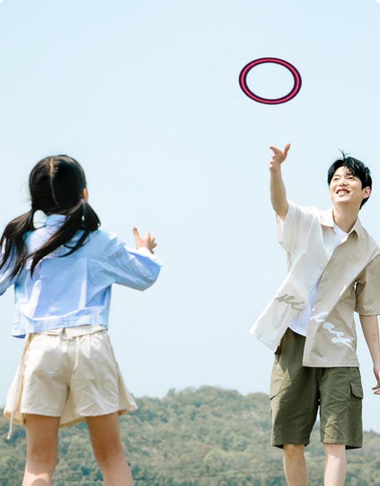 比起跑步,飞盘互动性更强,是很适合和孩子一起玩的运动项目。