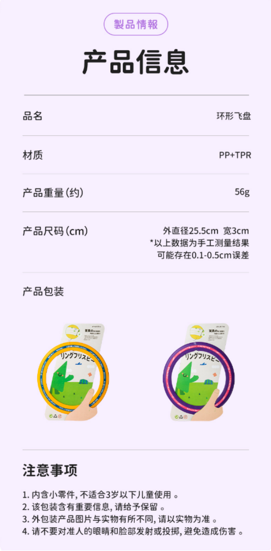 日本shukiku环形飞盘,自重轻,小孩子玩起来不易累,好扔才好玩 商品图2