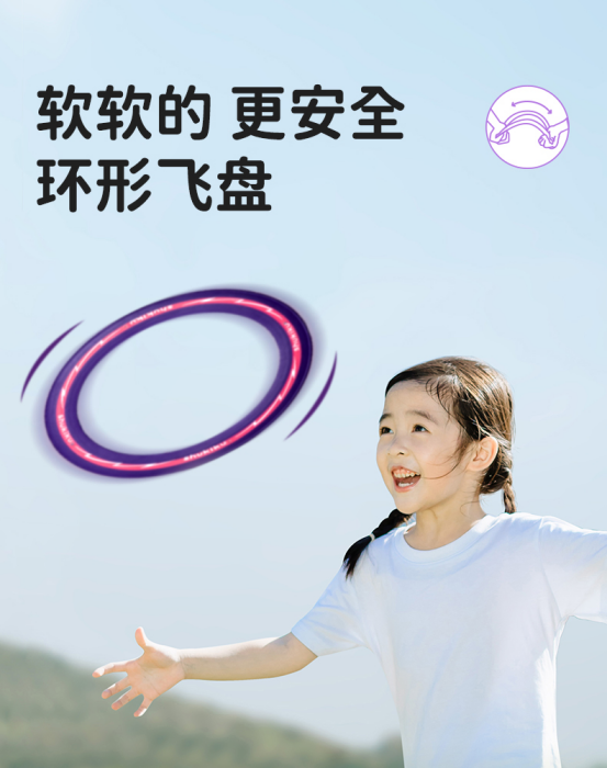普通飞盘都很重重,对于小孩来说,力气小,随便一扔就落在脚边,可玩性实在不高。