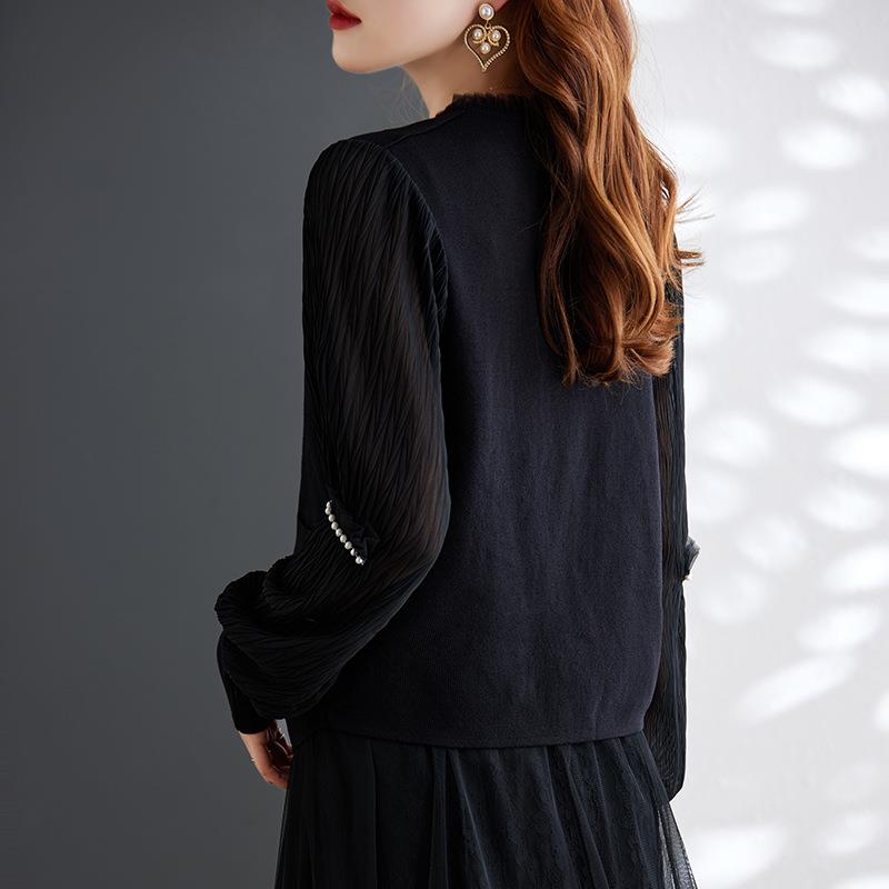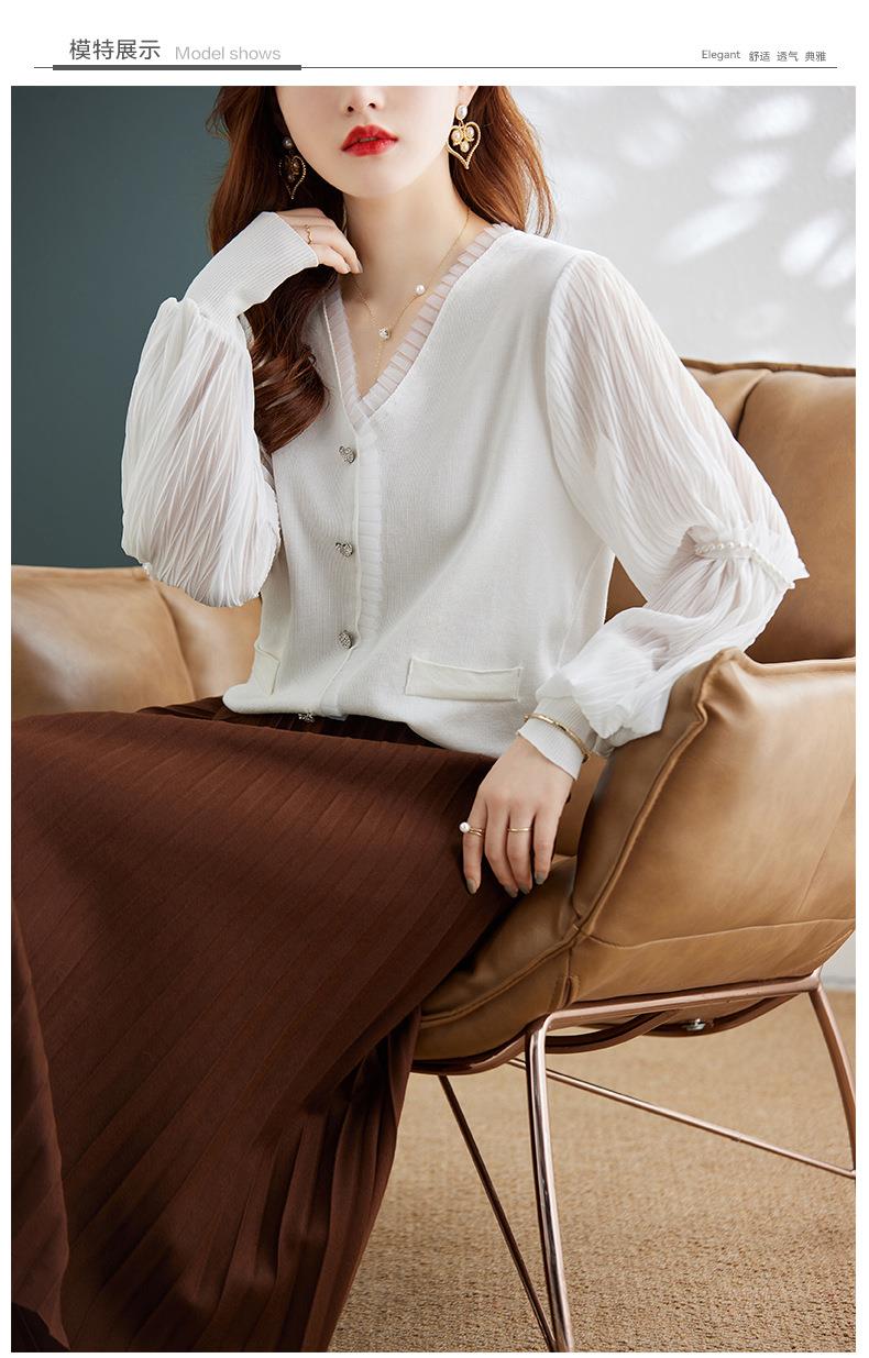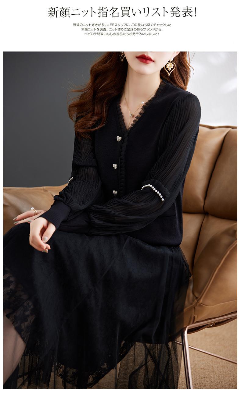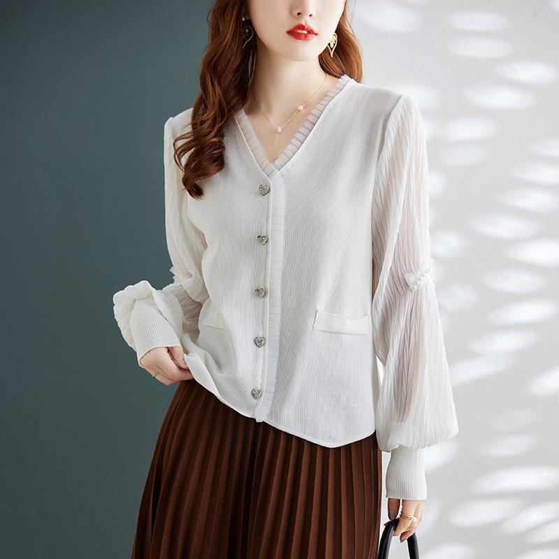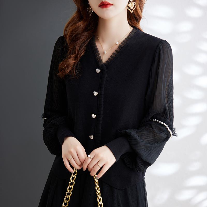 娜璐多 温柔风荷叶边女式针织衫2023初秋新款设计感时尚气质长袖上衣女
