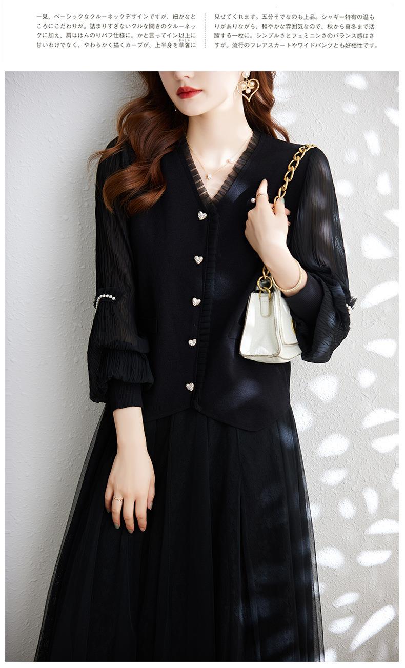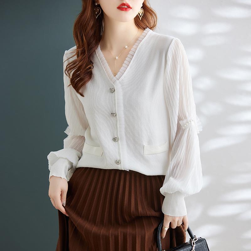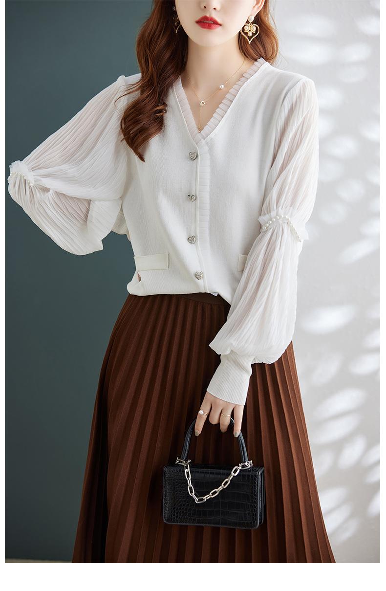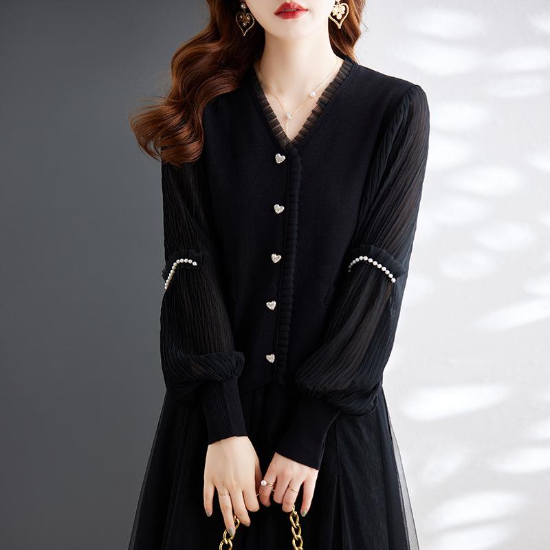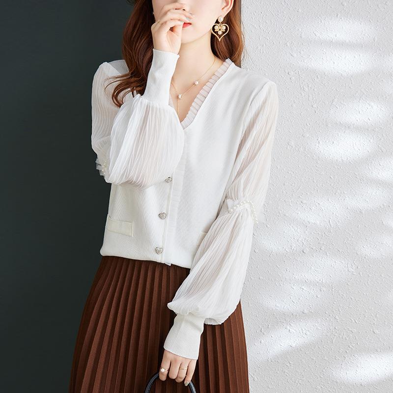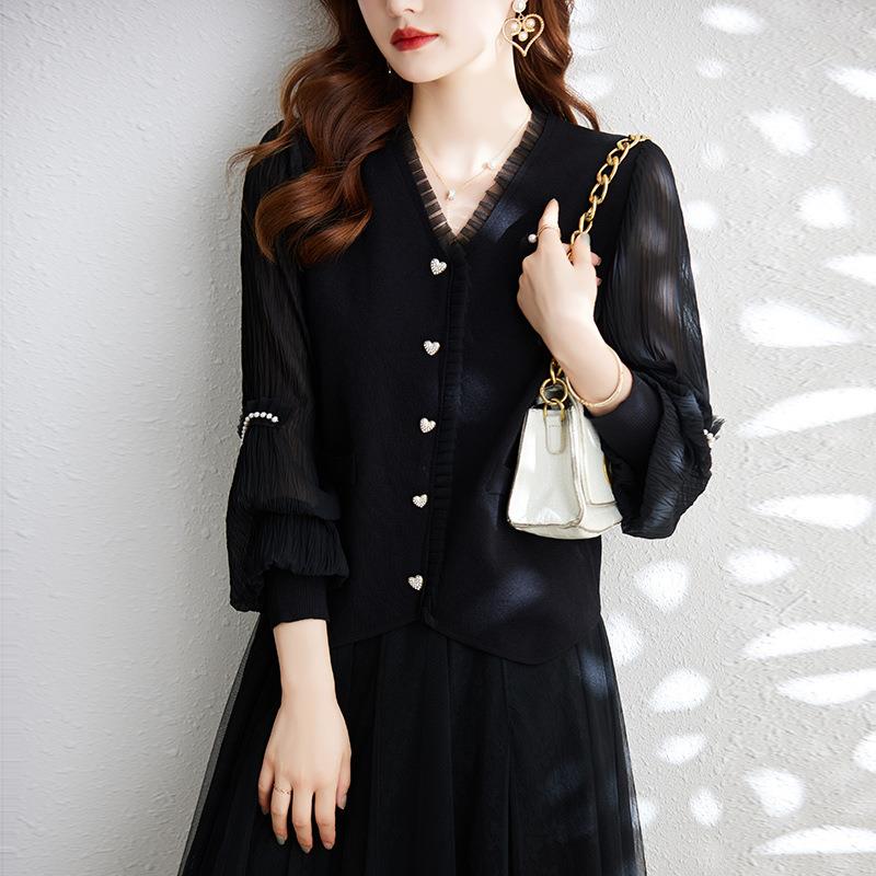 娜璐多 温柔风荷叶边女式针织衫2023初秋新款设计感时尚气质长袖上衣女