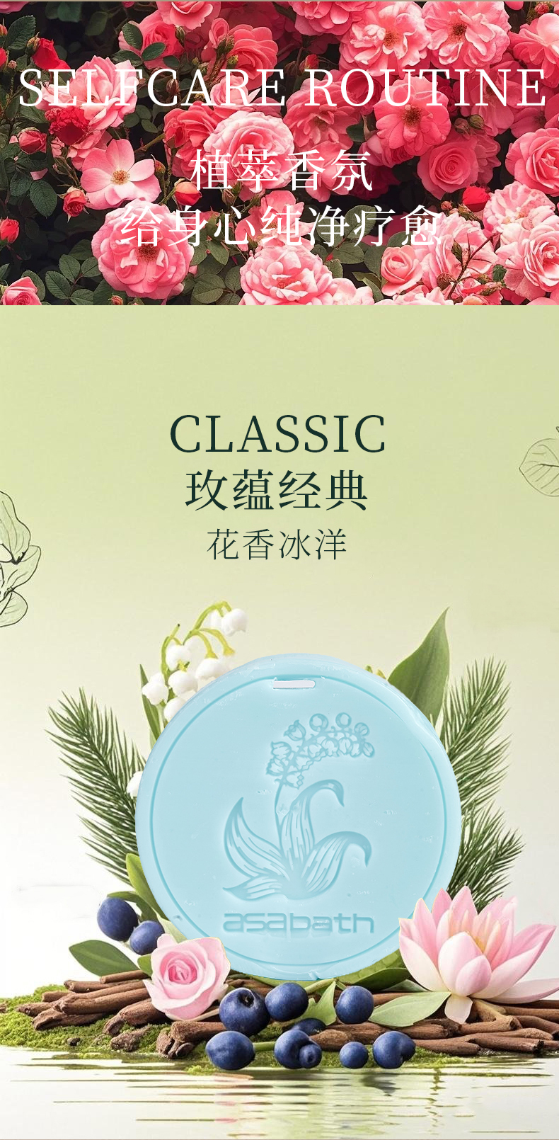 【芬兰百年品牌出品】asabath香氛精油皂 奇华顿与德之馨联名打造顶奢香基 三种香型:花香冰洋、甜香晚樱、宁静纯幼 一块精油皂=香水+清洁+护肤 礼盒包装 送3个气泡网 128g*3/礼盒