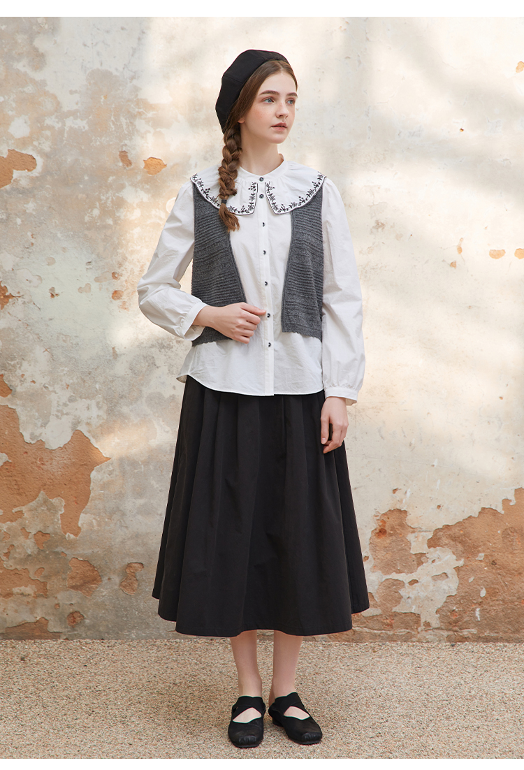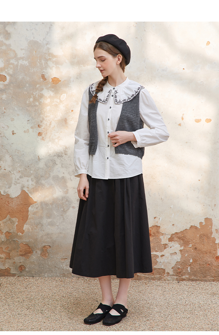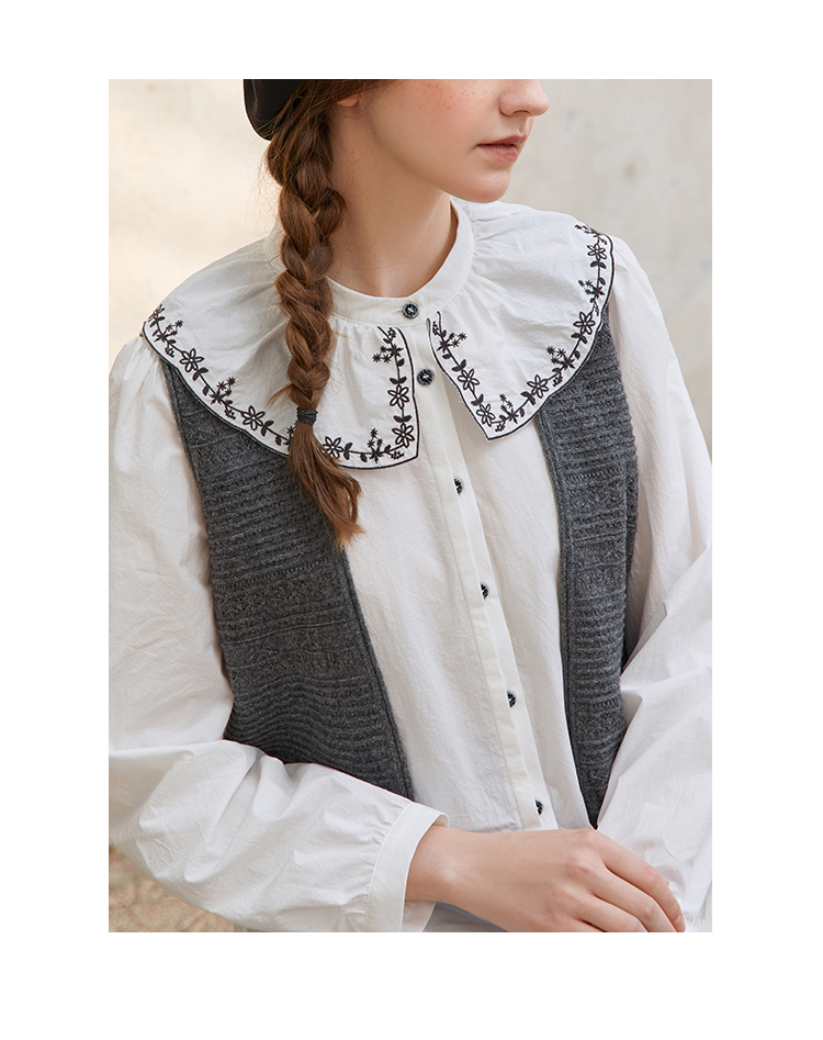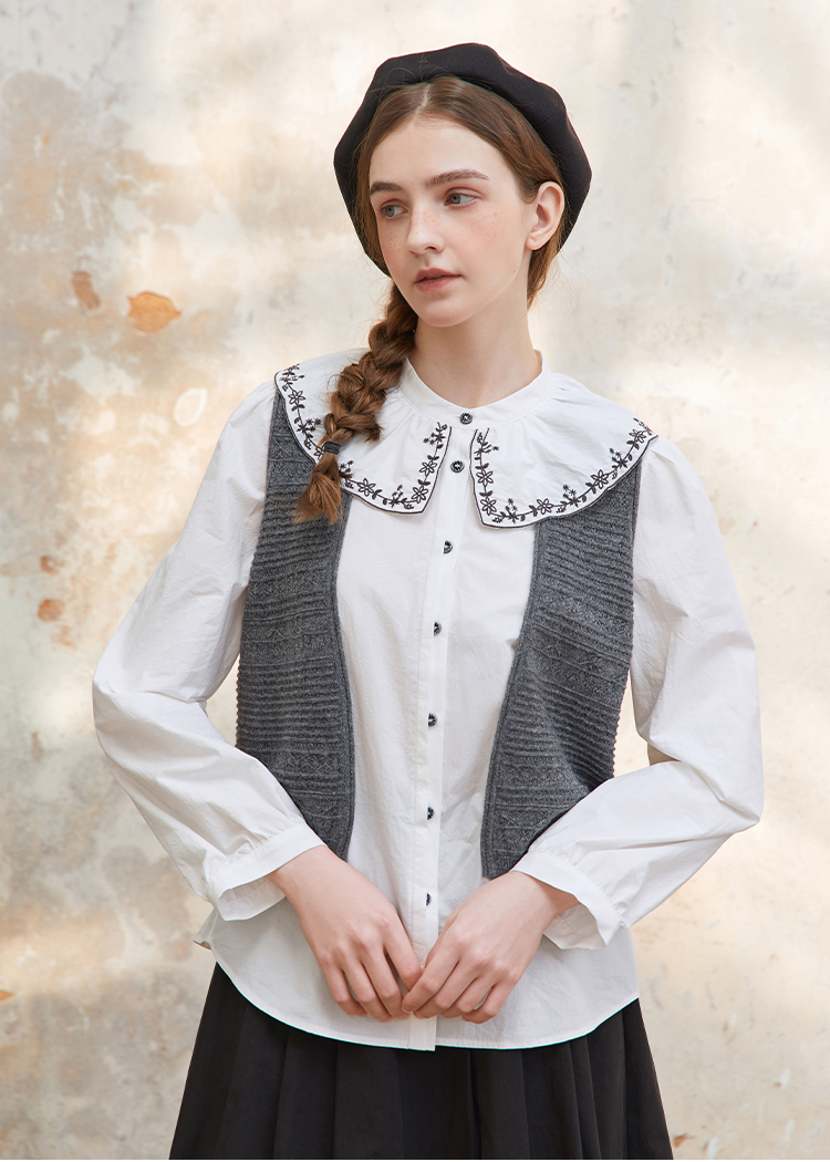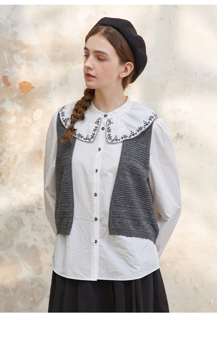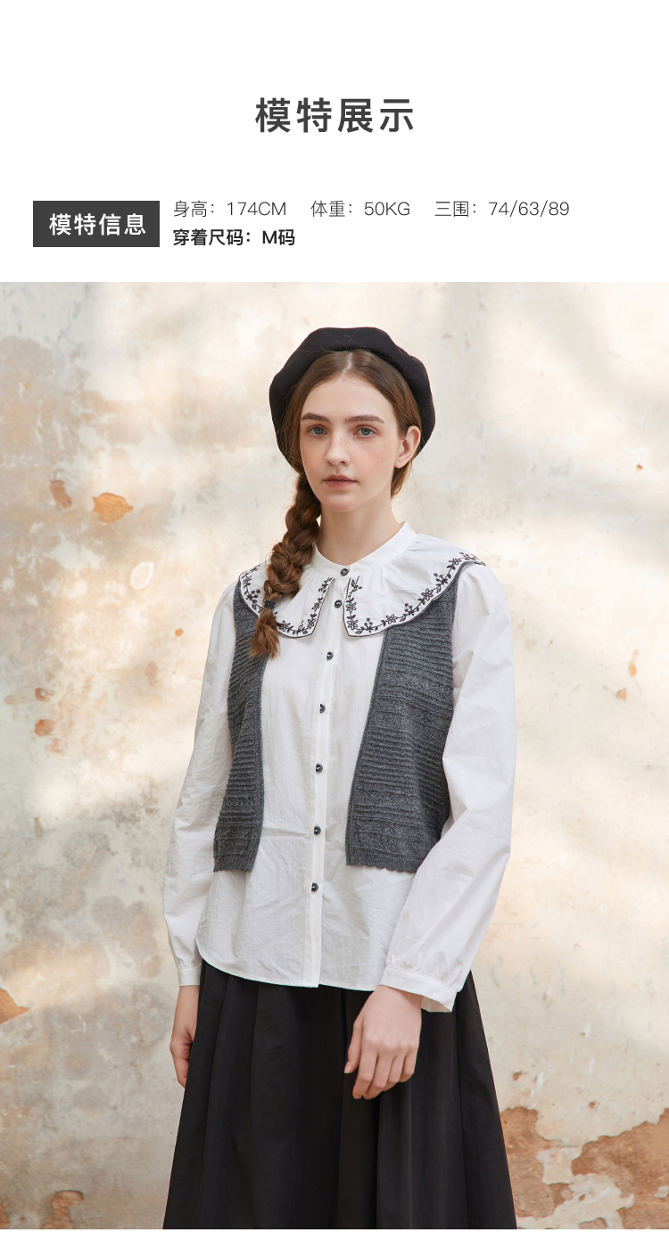 Famecoco范可儿羊毛提花针织马甲开衫女无袖马夹短款FAC1CA012