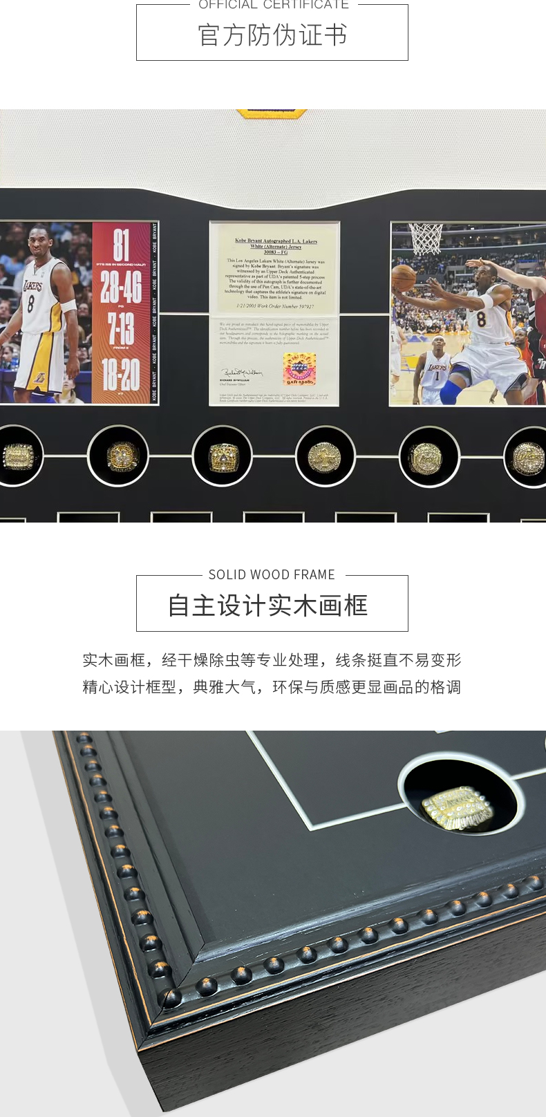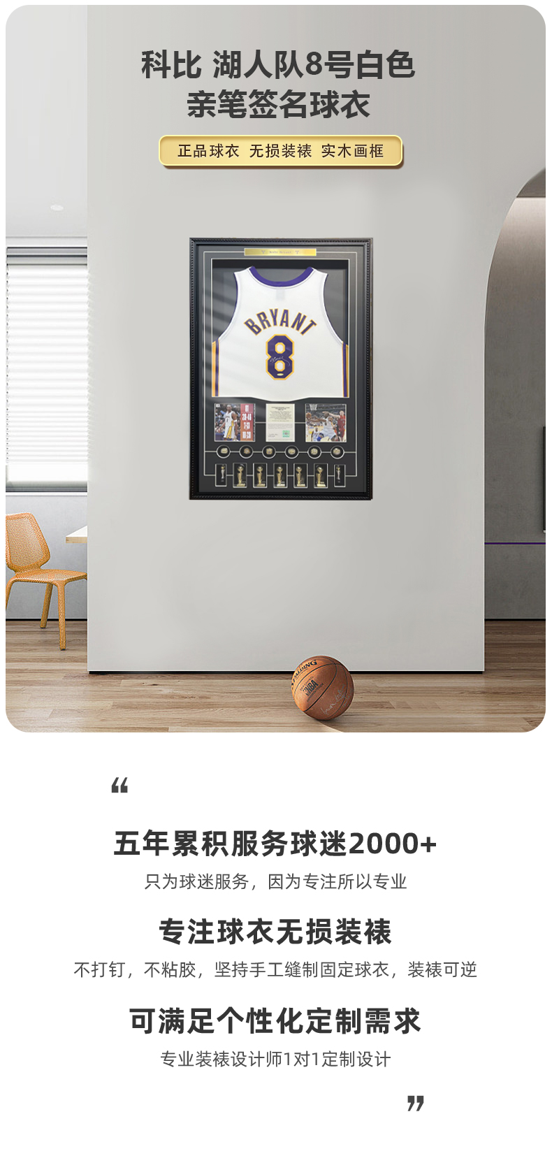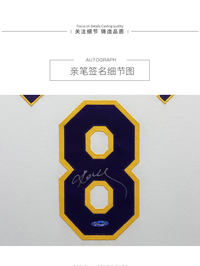 收藏系列 科比 湖人队8号白色 亲笔签名球衣