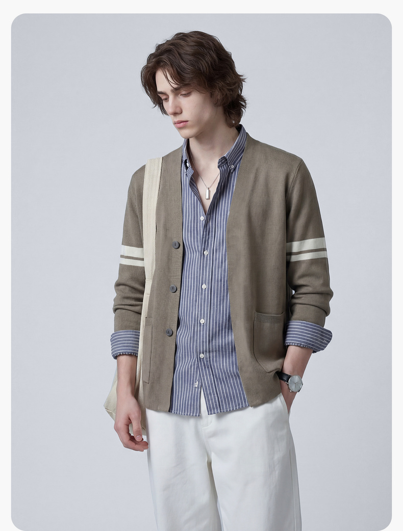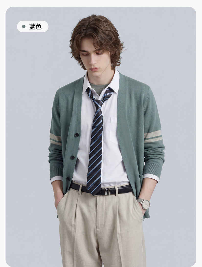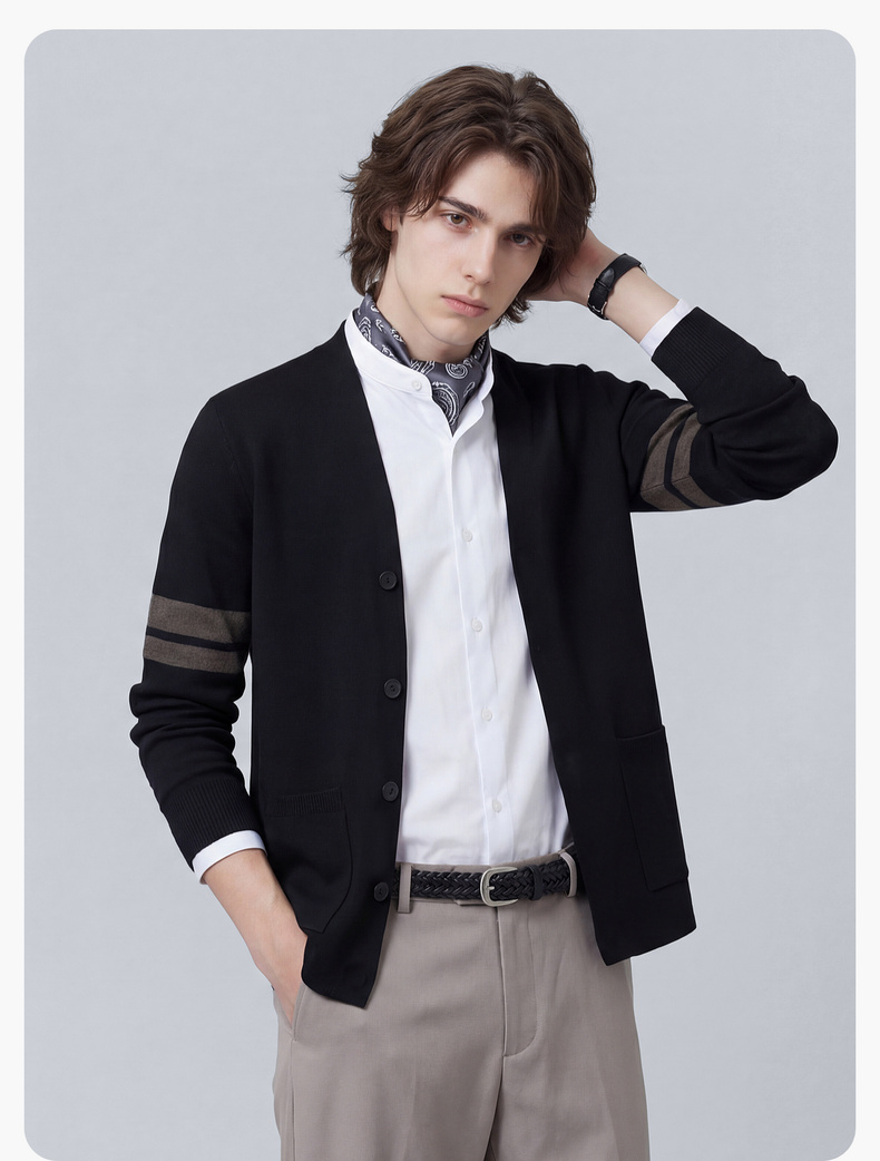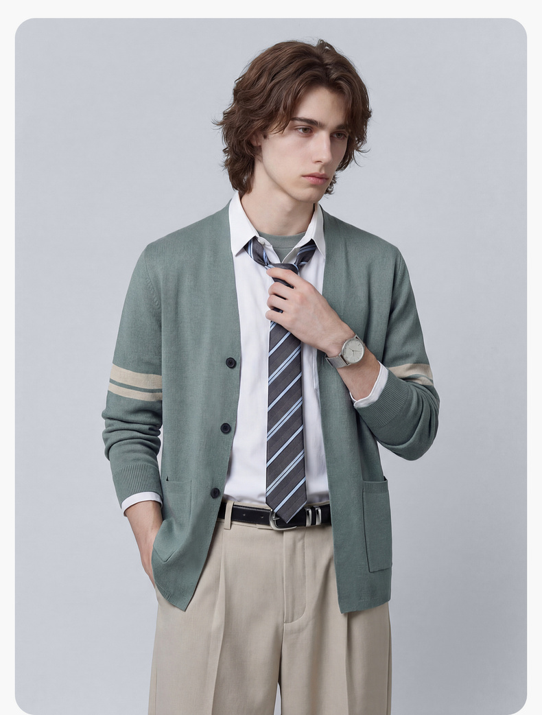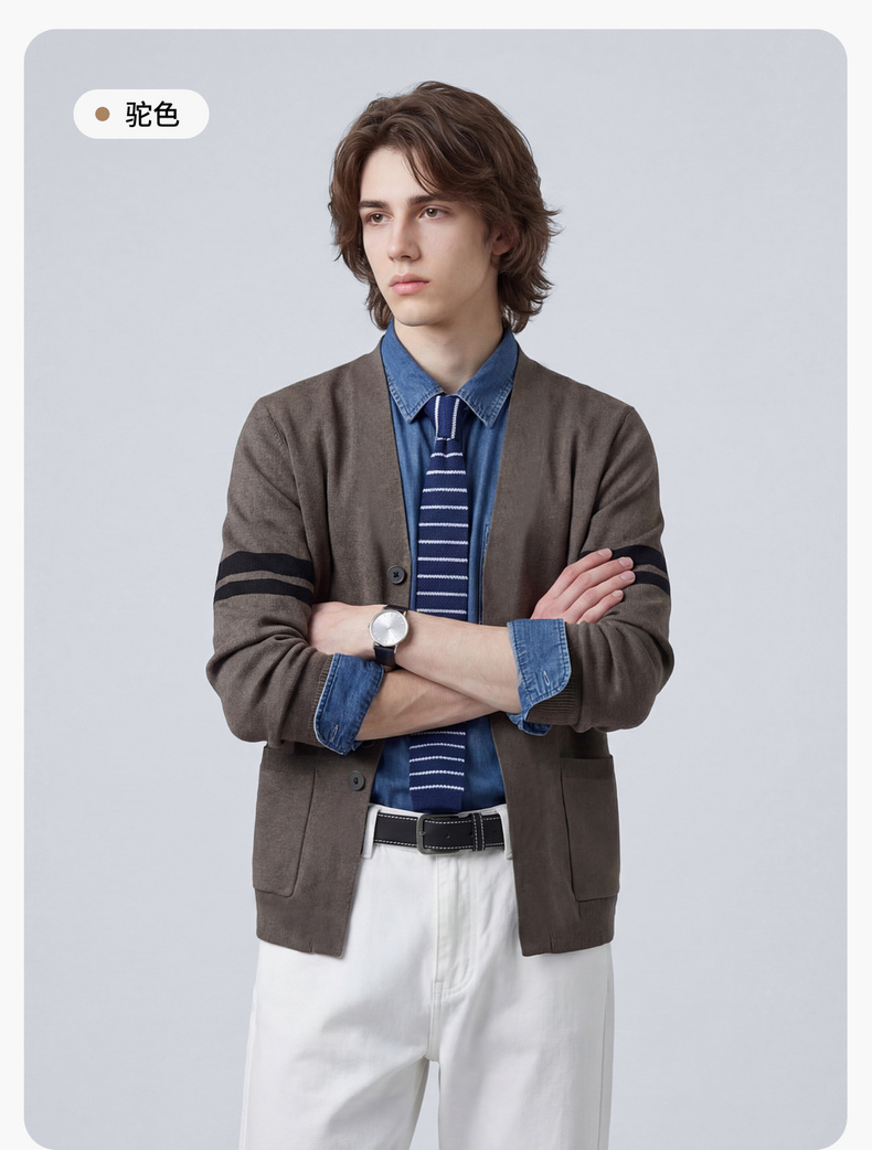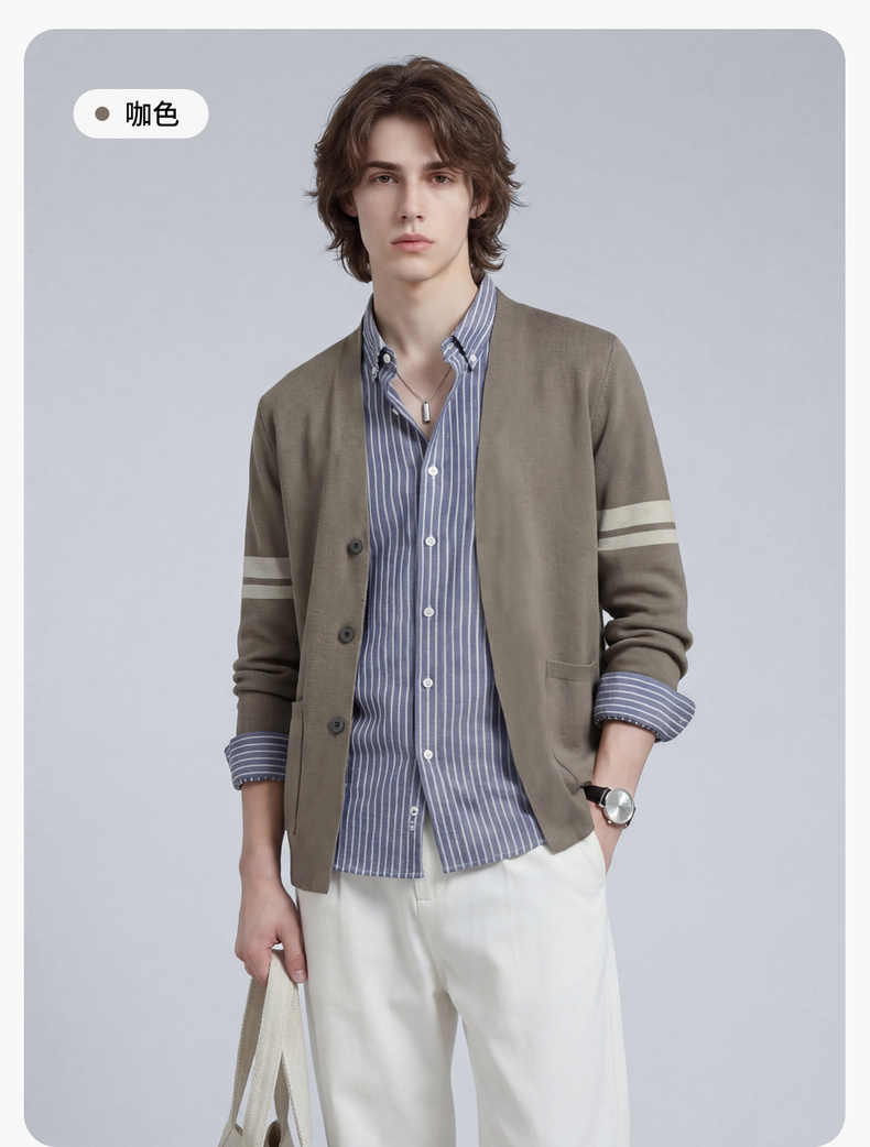 【微弹亲肤】圣得西男士针织开衫2026新款春季简约休闲风V领毛衫