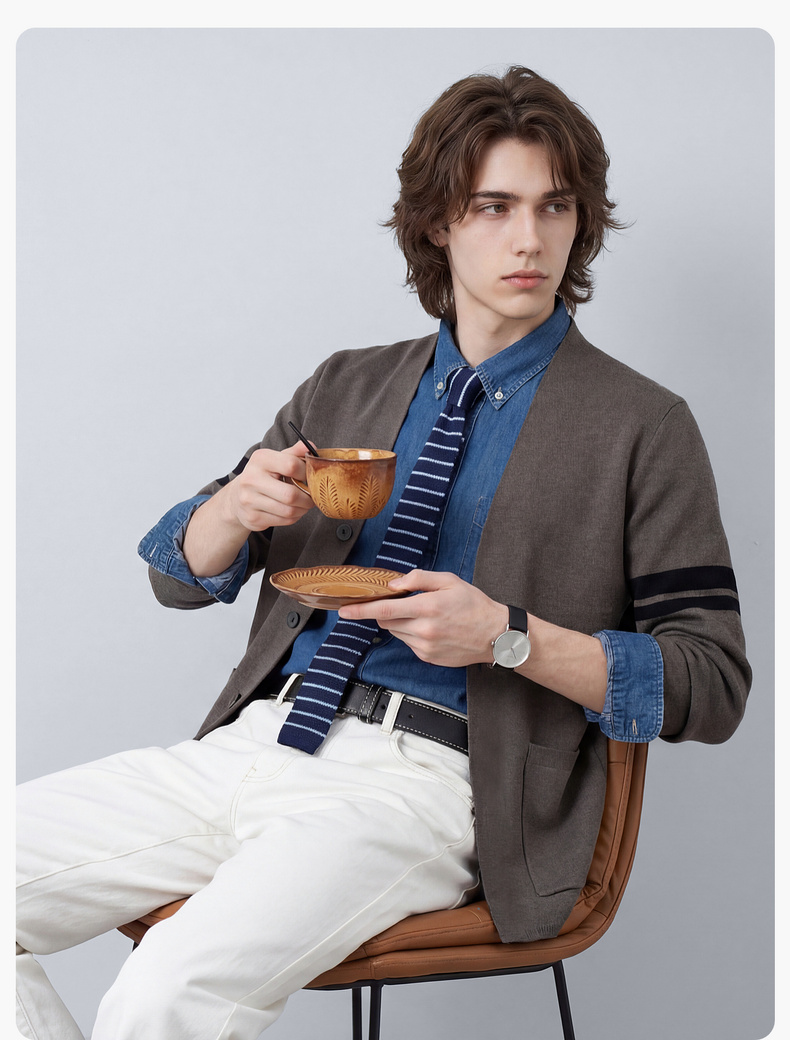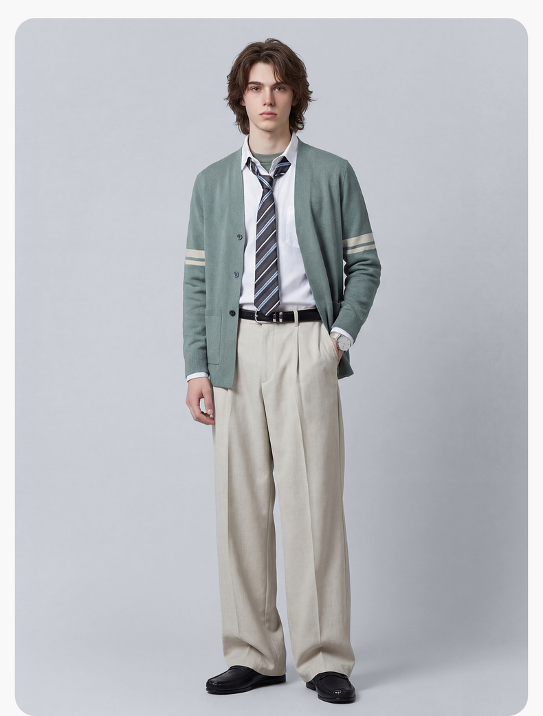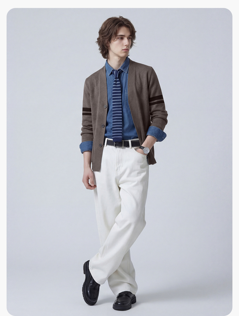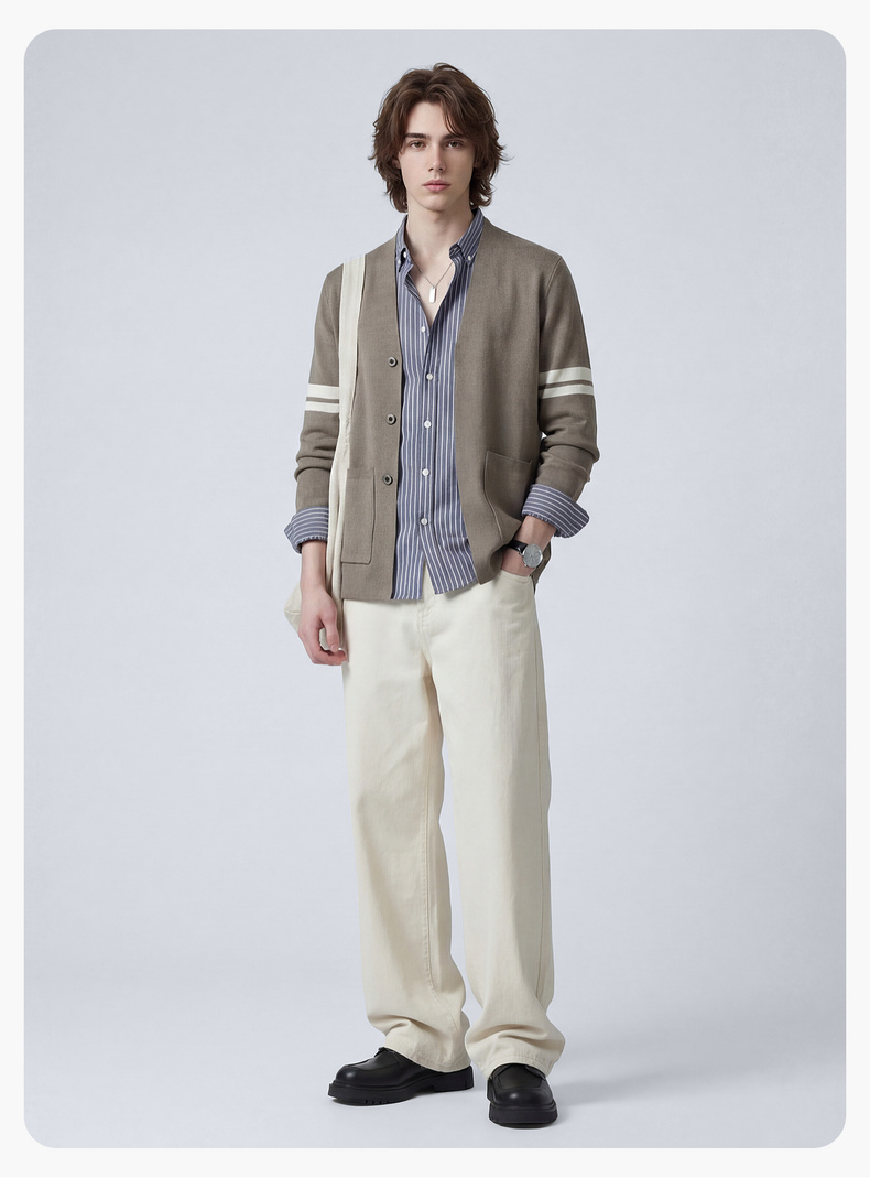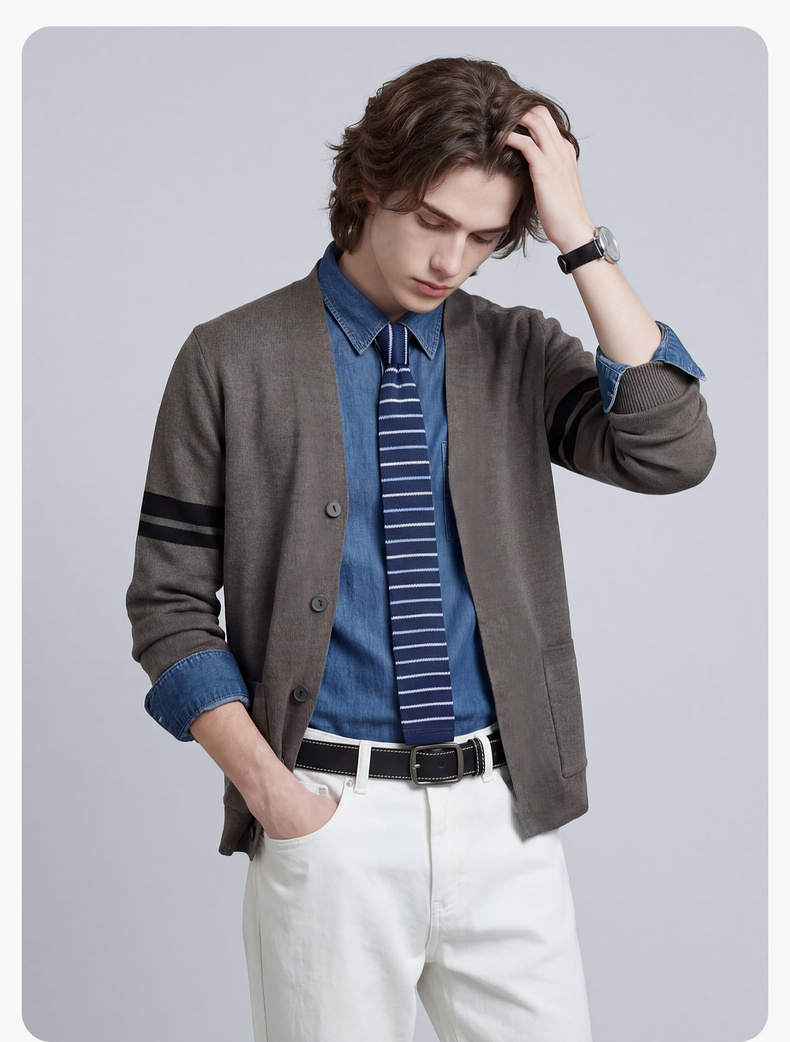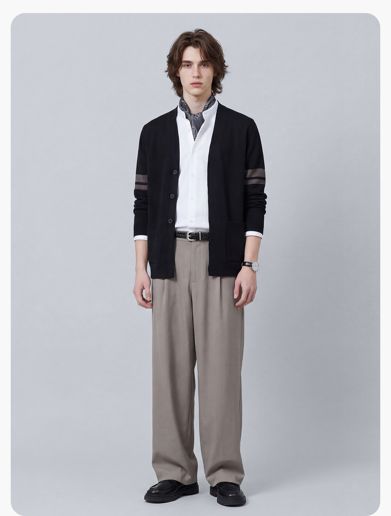 【微弹亲肤】圣得西男士针织开衫2026新款春季简约休闲风V领毛衫