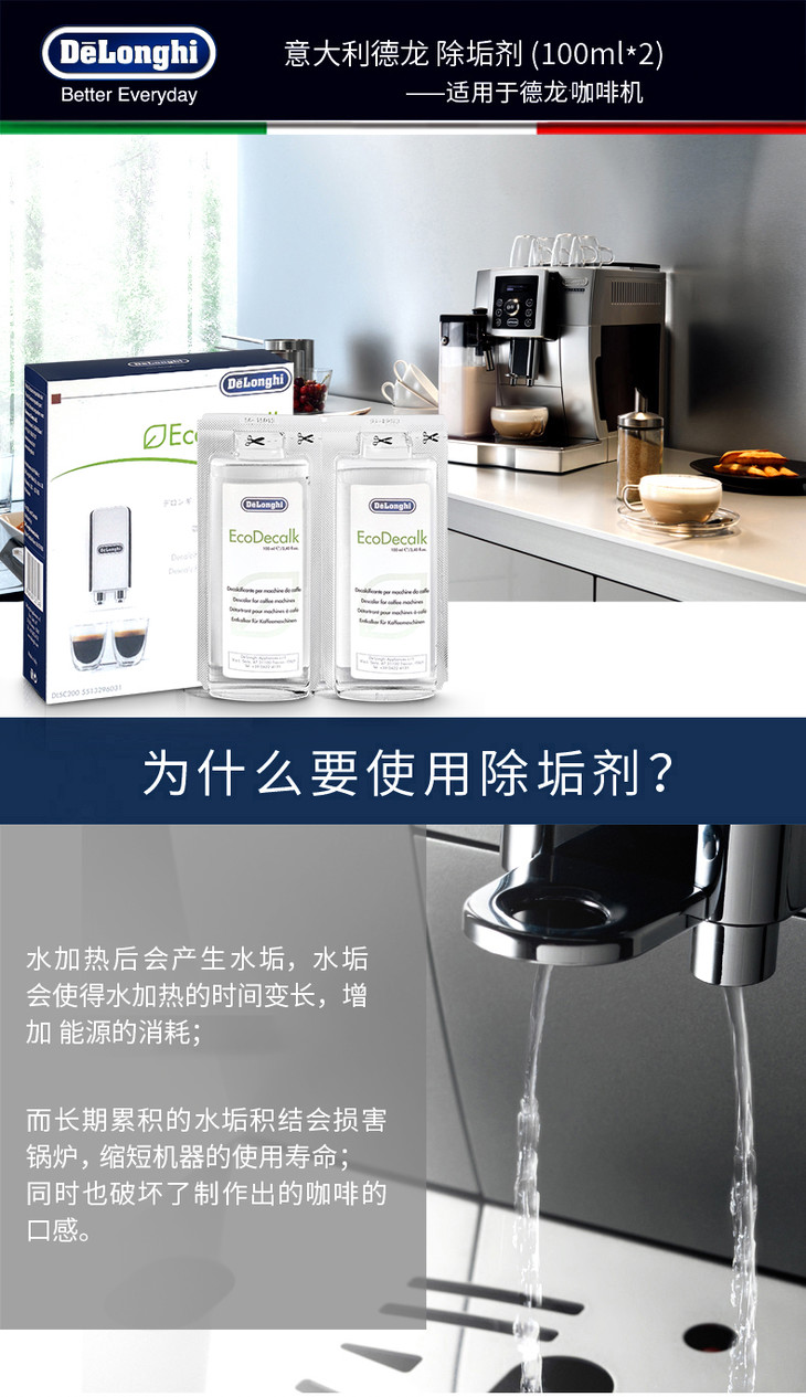 Delonghi 德龙 除垢剂 清洗剂清洁液保 养液