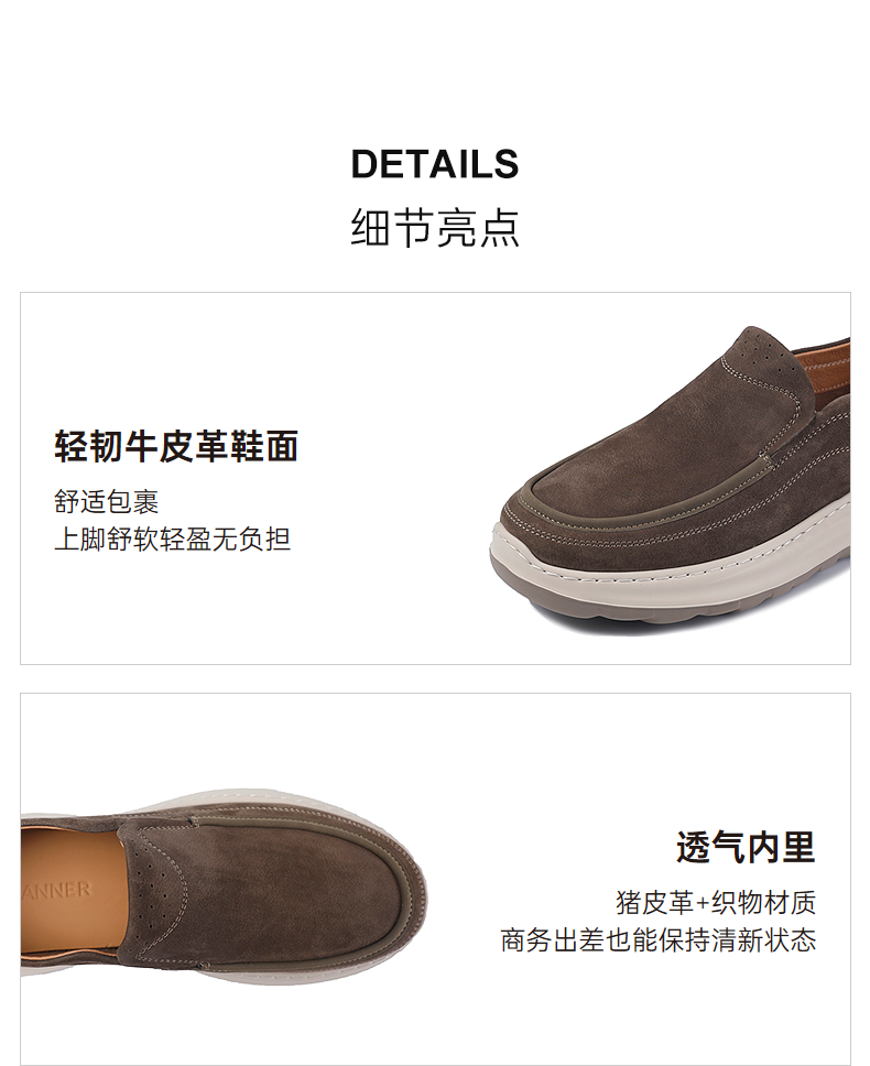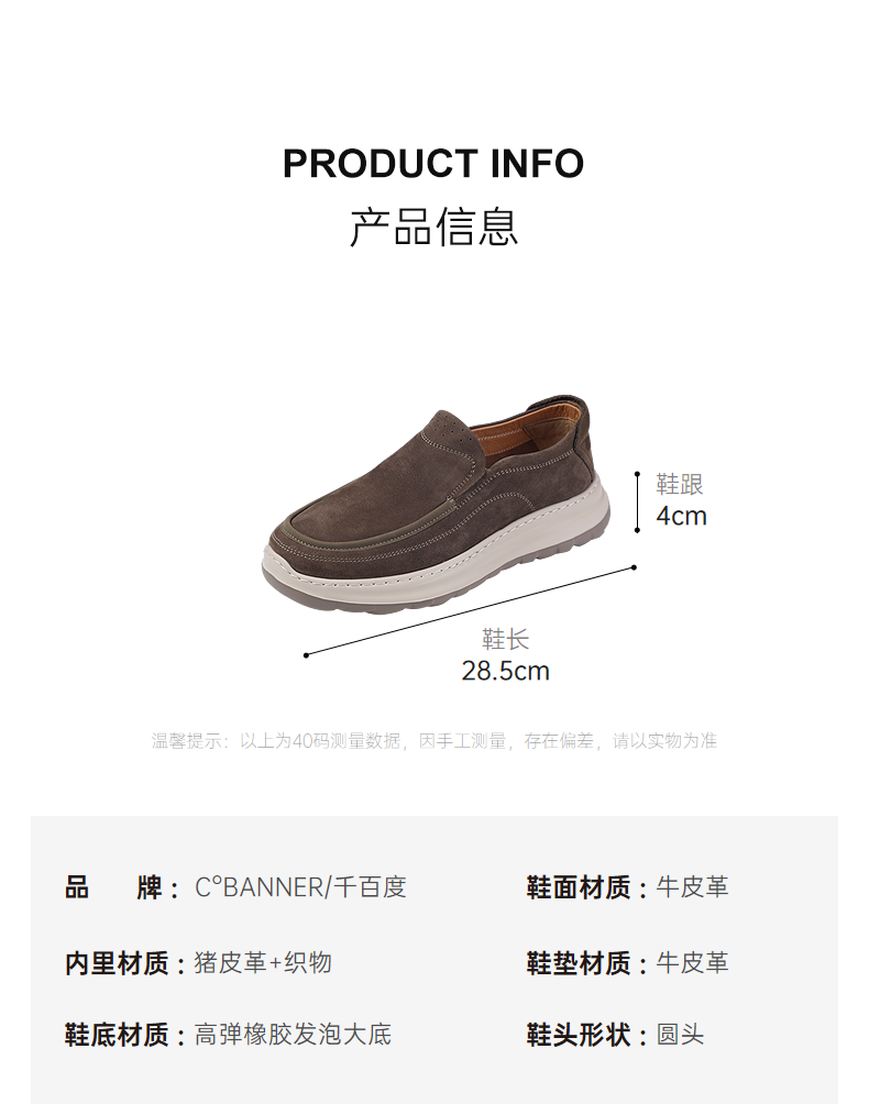 4楼千百度2025轻韧牛皮高弹大底懒人休闲男鞋A25421106