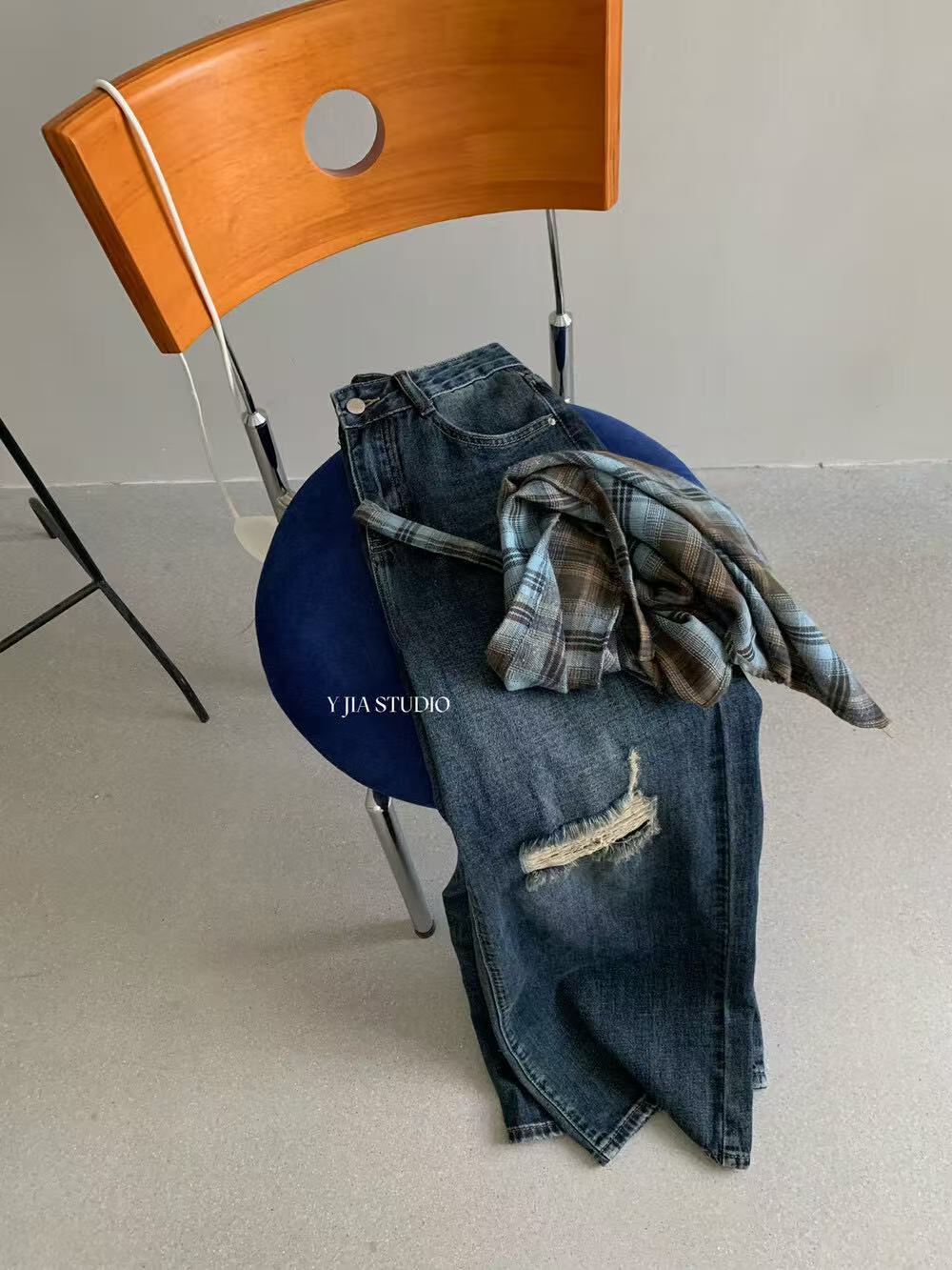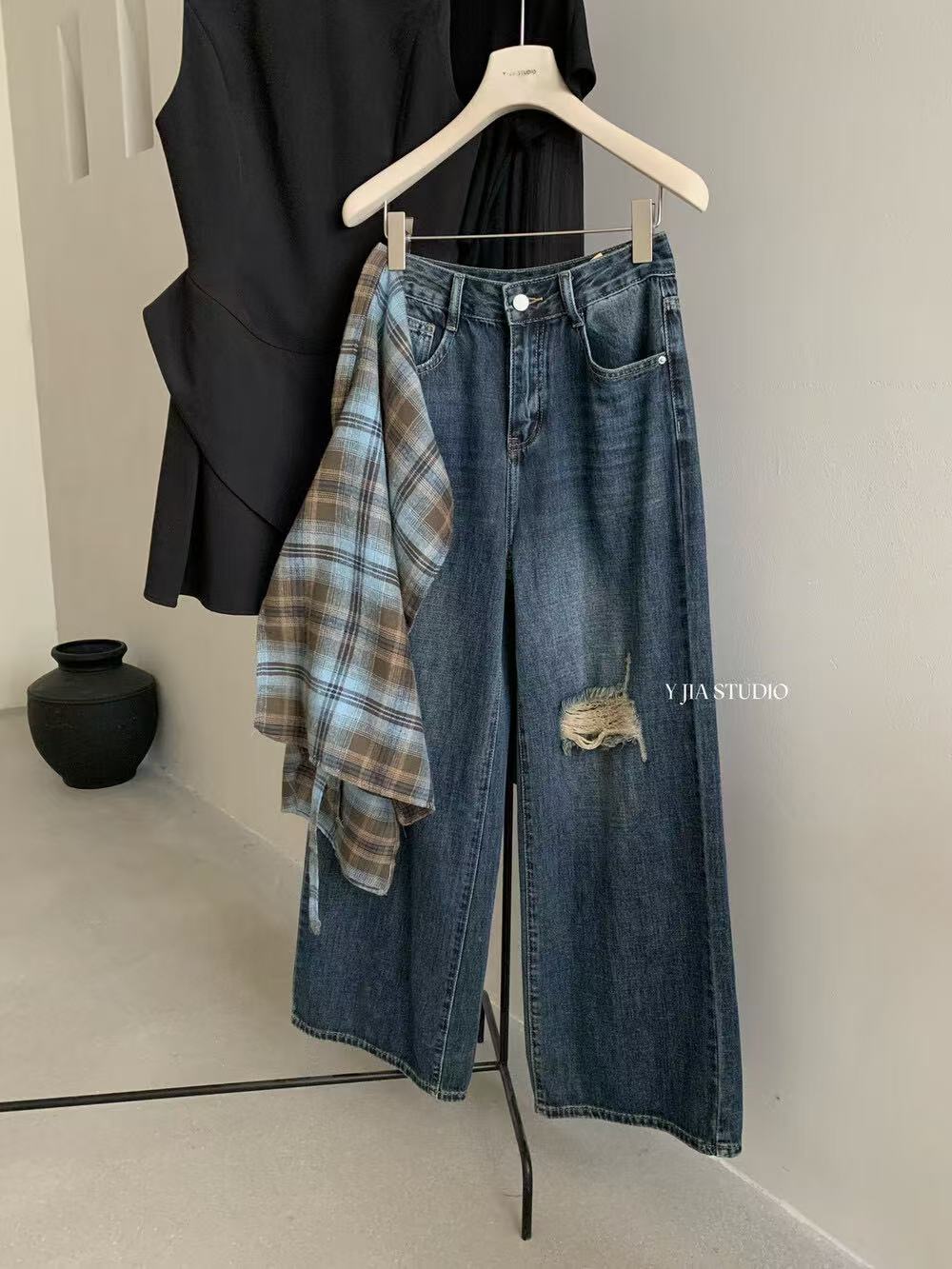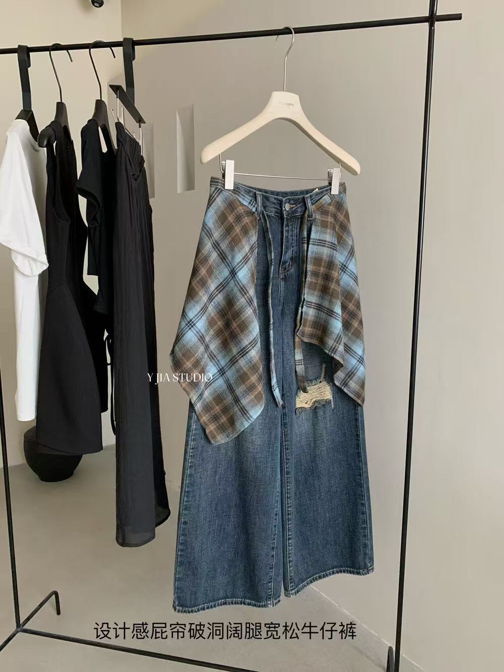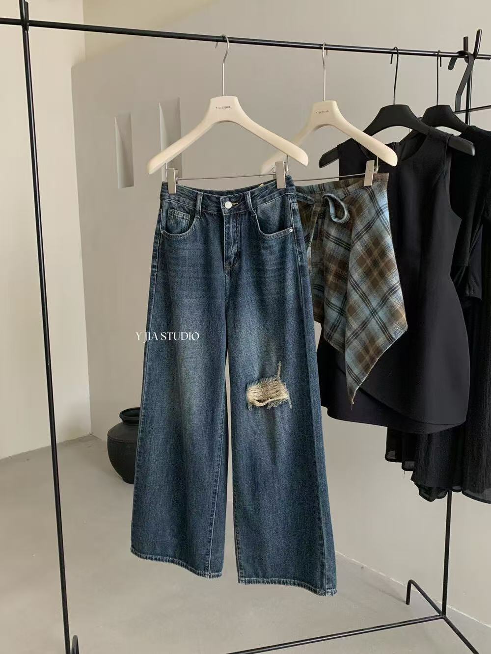 GZ屁帘破洞阔腿宽松牛仔裤(LH)(LD)纪念日百货165893450