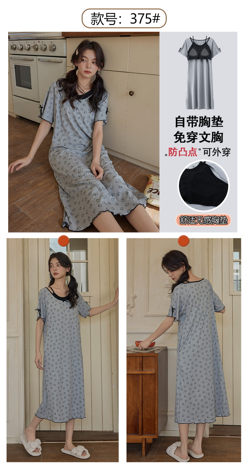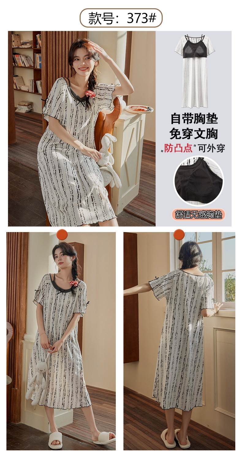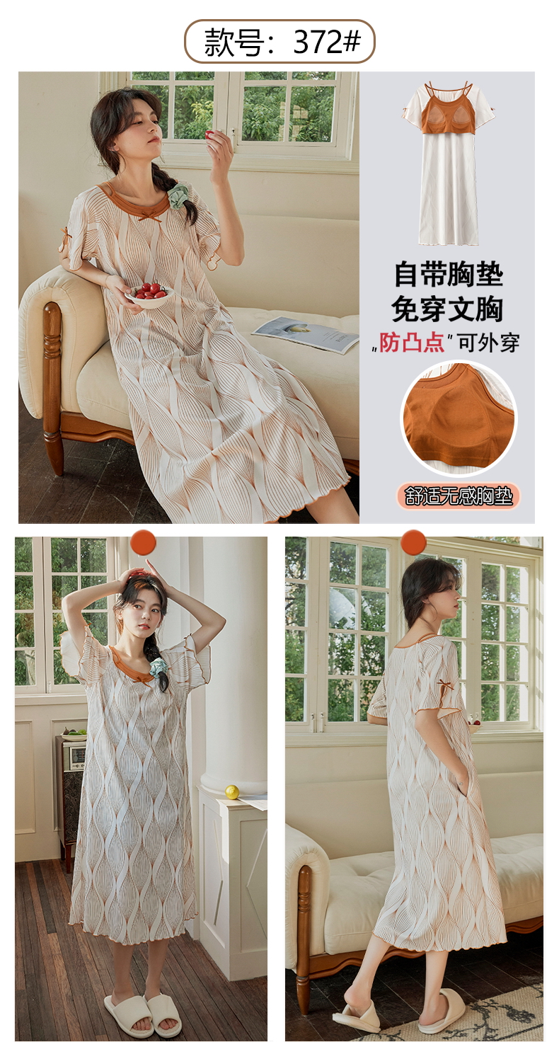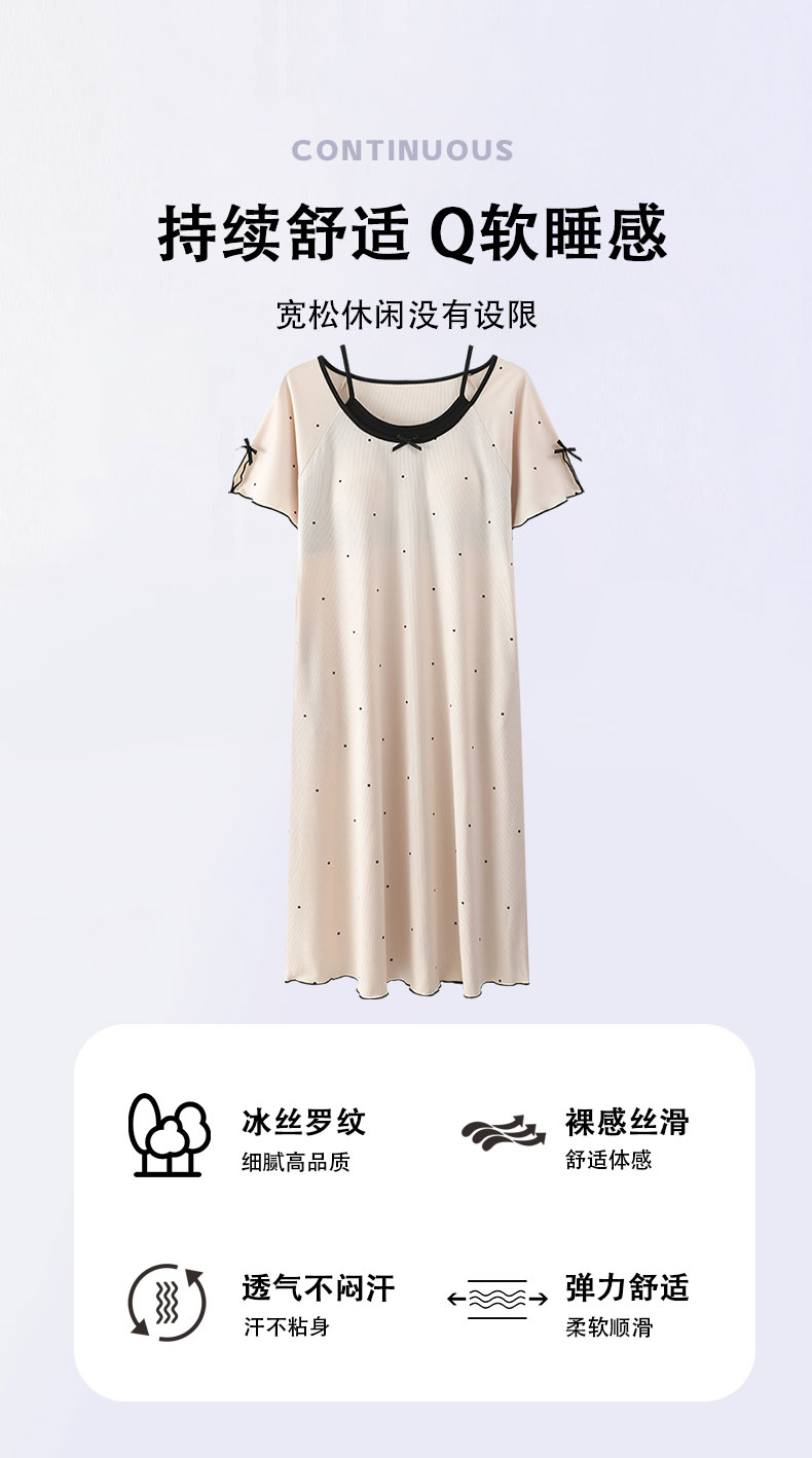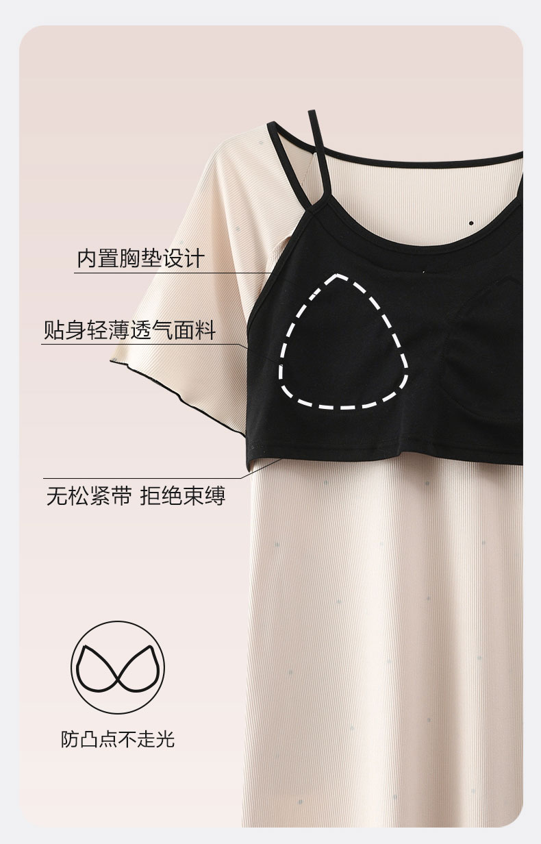 【GZ】无忧购冰丝螺纹假两件睡裙家居服带胸垫(截单后3-5天发货)
