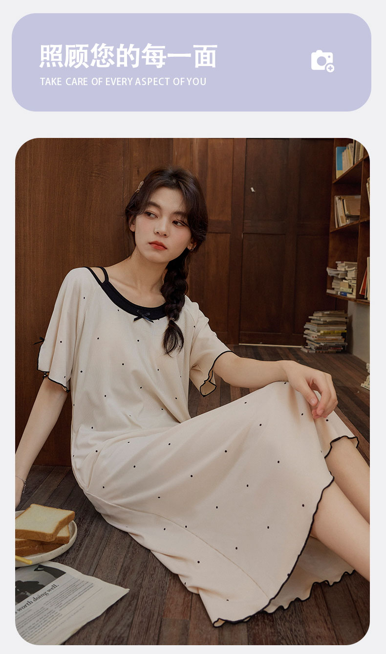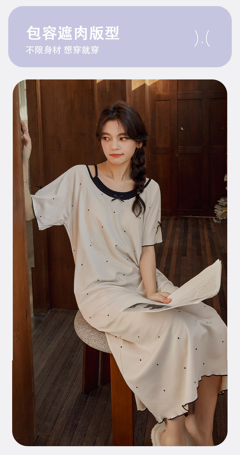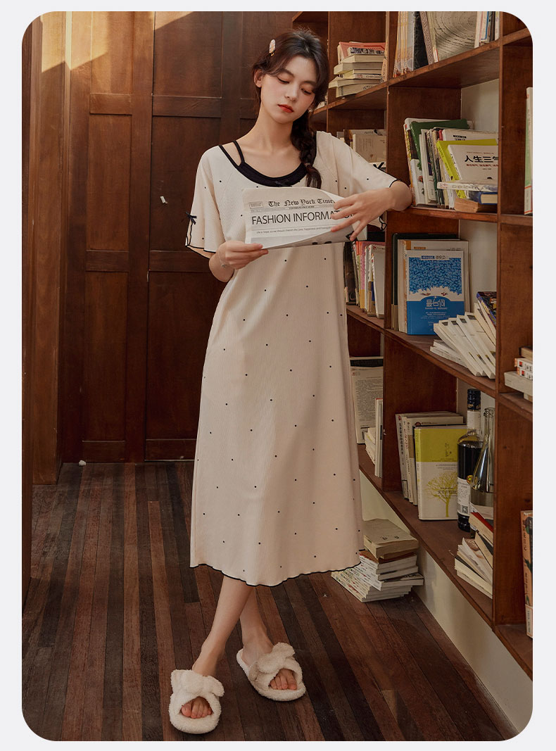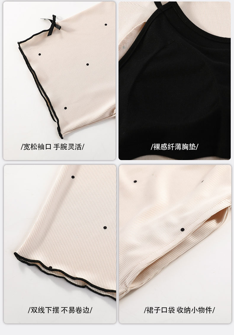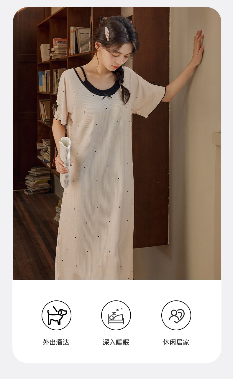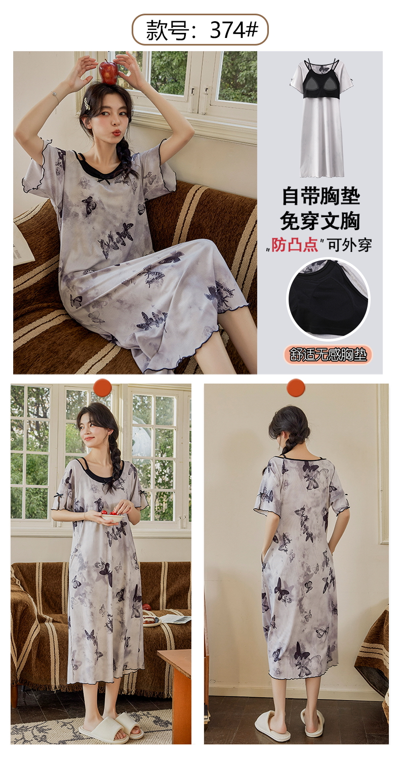 【GZ】无忧购冰丝螺纹假两件睡裙家居服带胸垫(截单后3-5天发货)