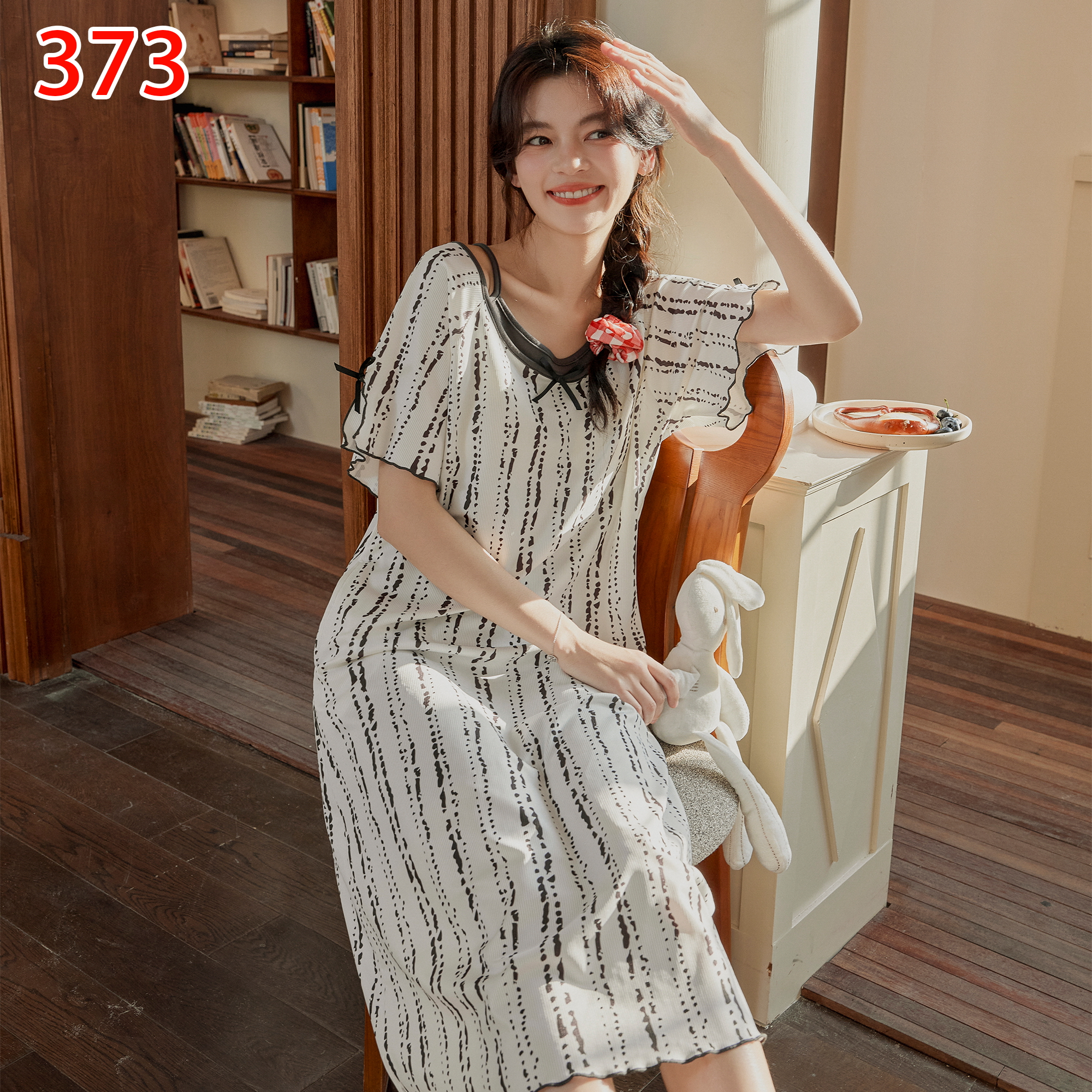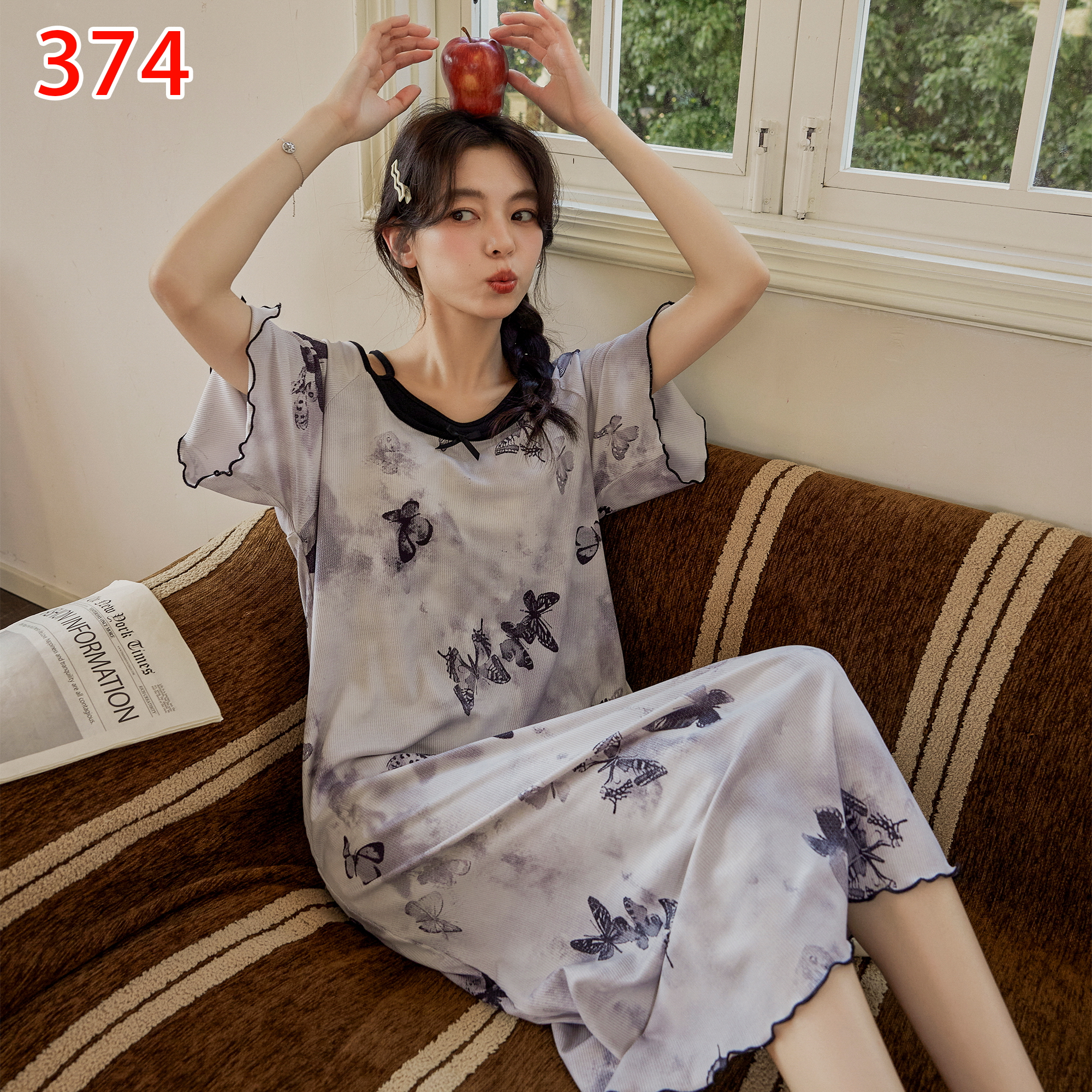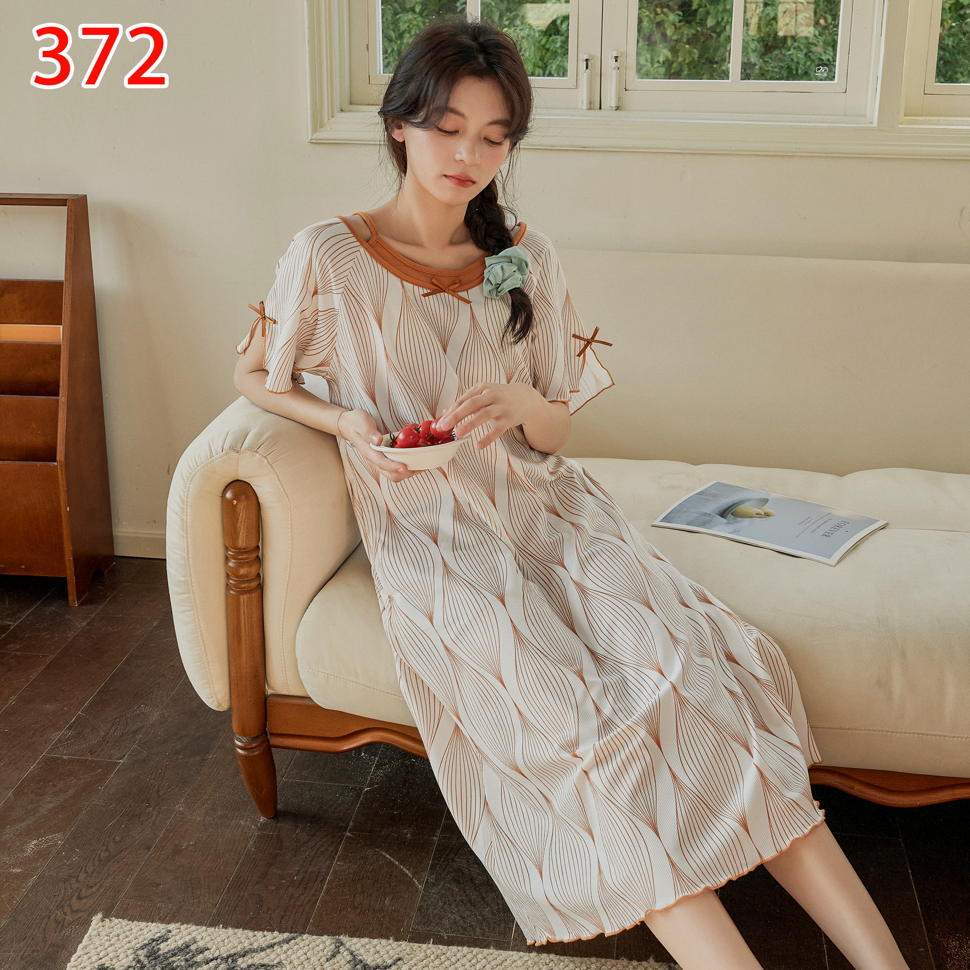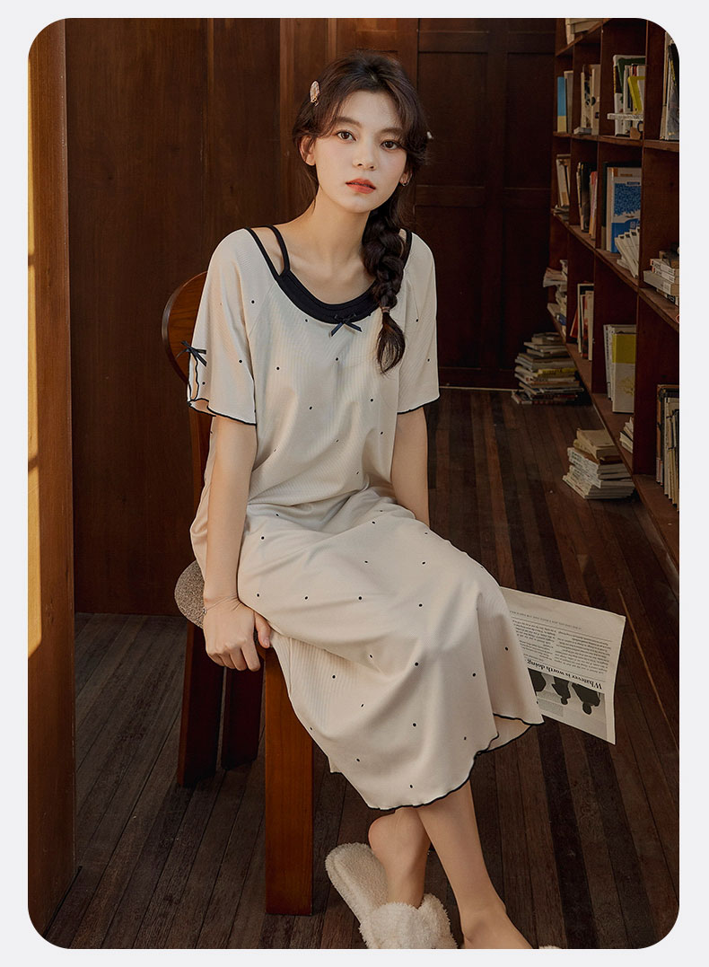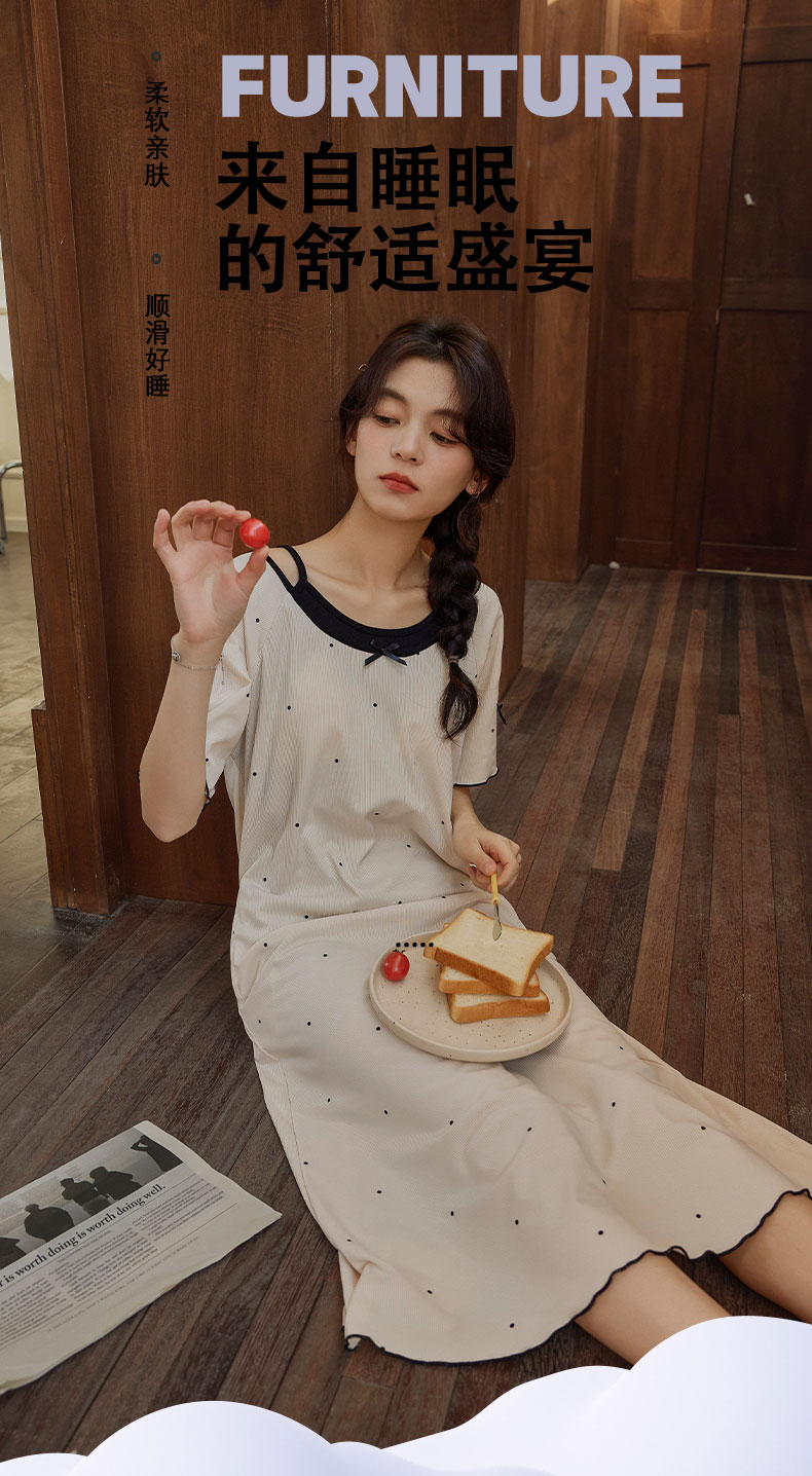 【GZ】无忧购冰丝螺纹假两件睡裙家居服带胸垫(截单后3-5天发货)