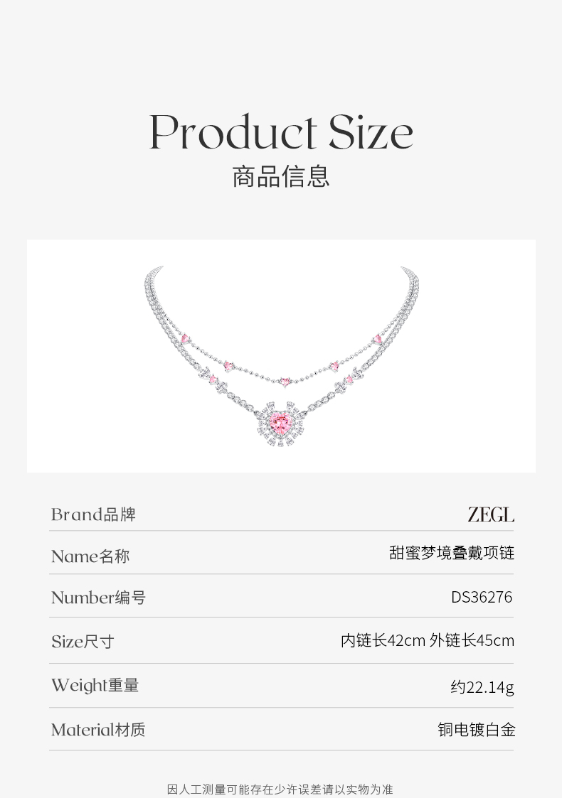 ZEGL设计师甜蜜梦境系列双层叠戴爱心项链女轻奢小众甜美风锁骨链