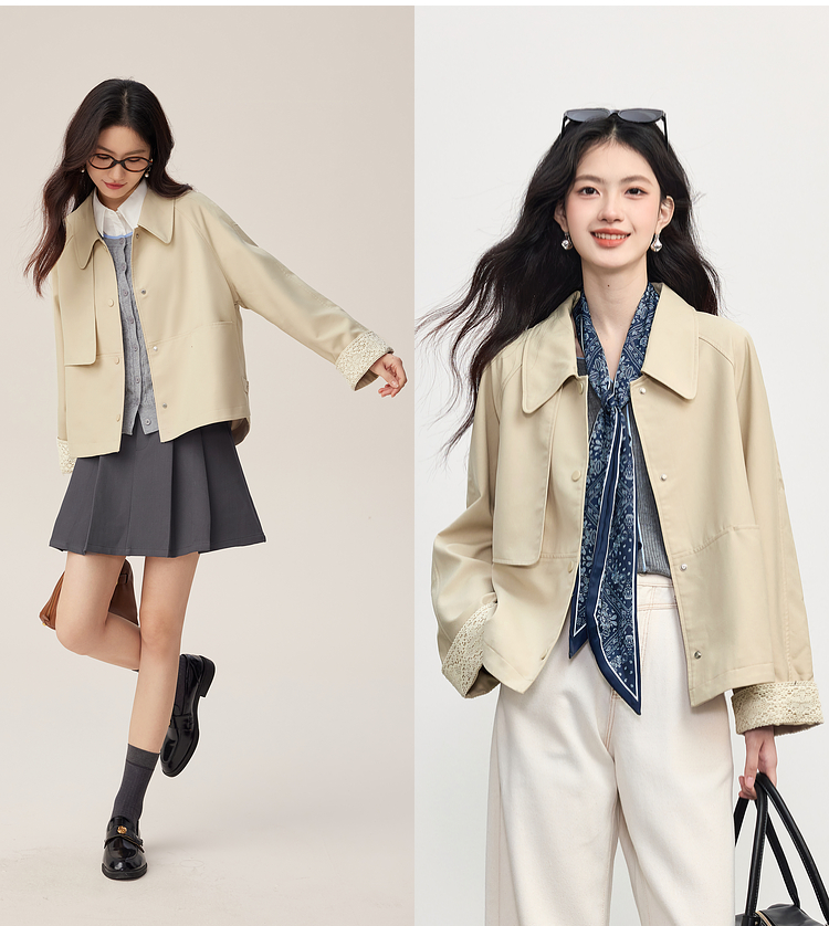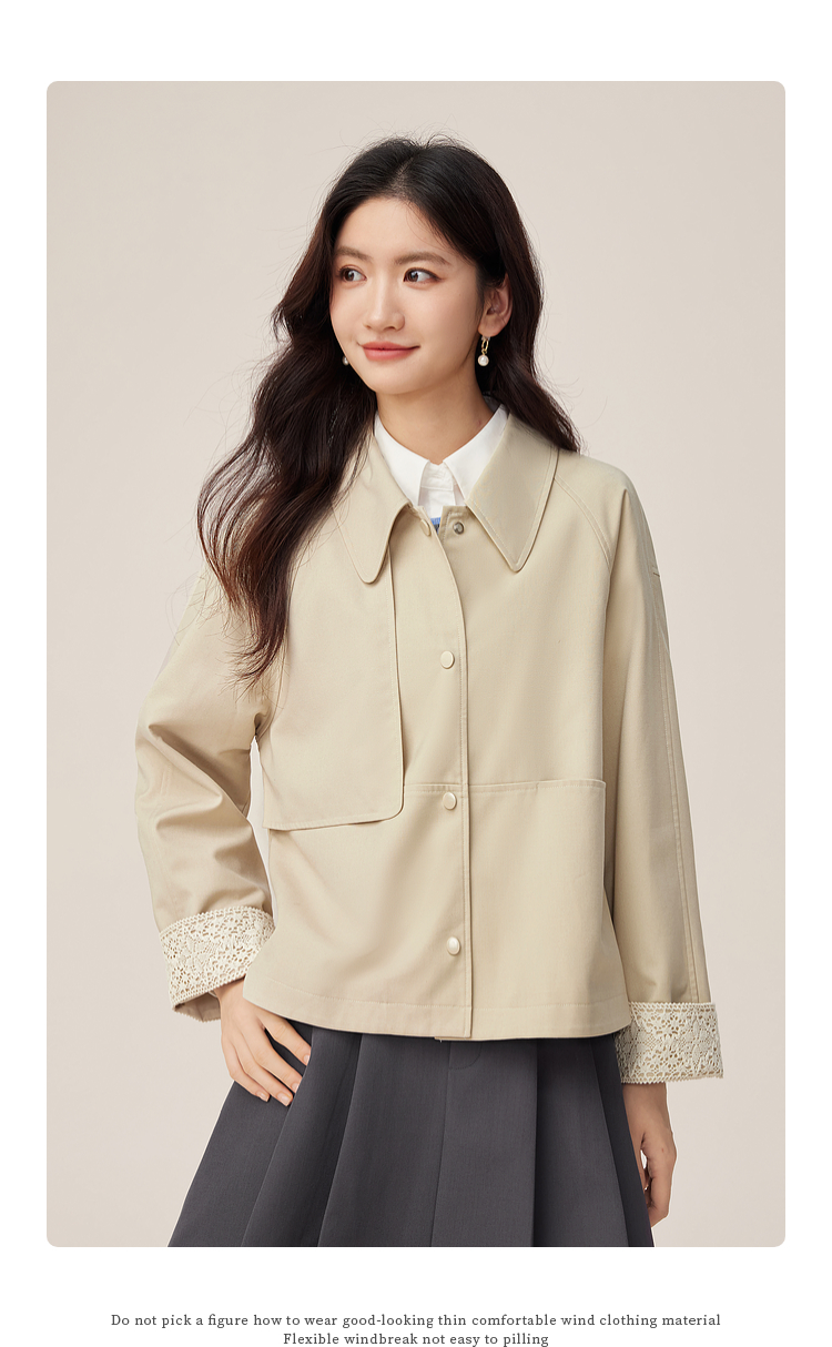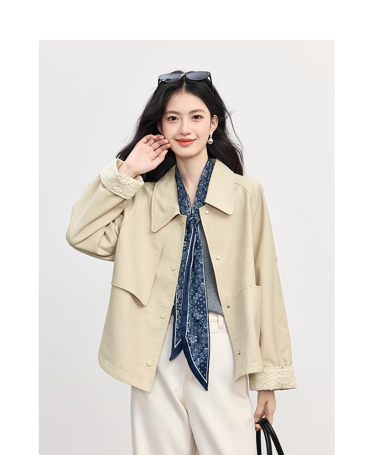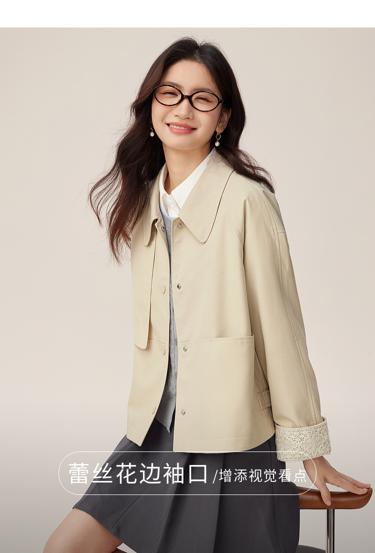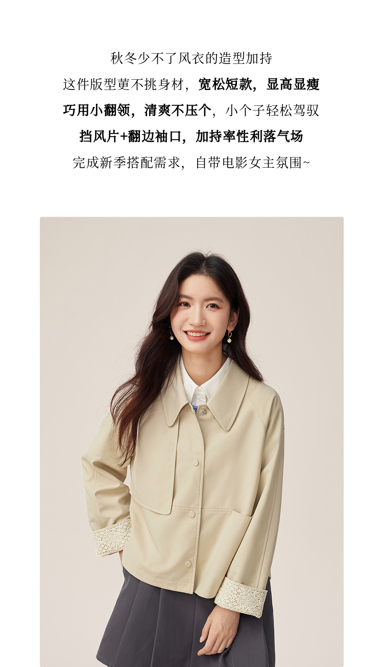 【09/03新品】熙世界高级感短款风衣外套2025秋季新款休闲工装风翻领夹克上衣