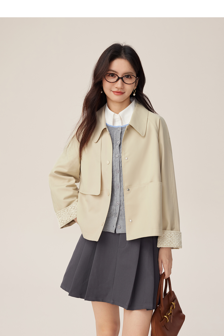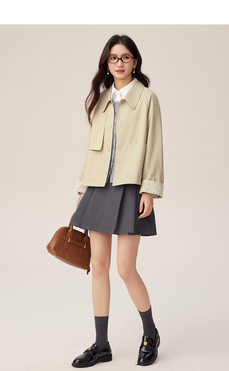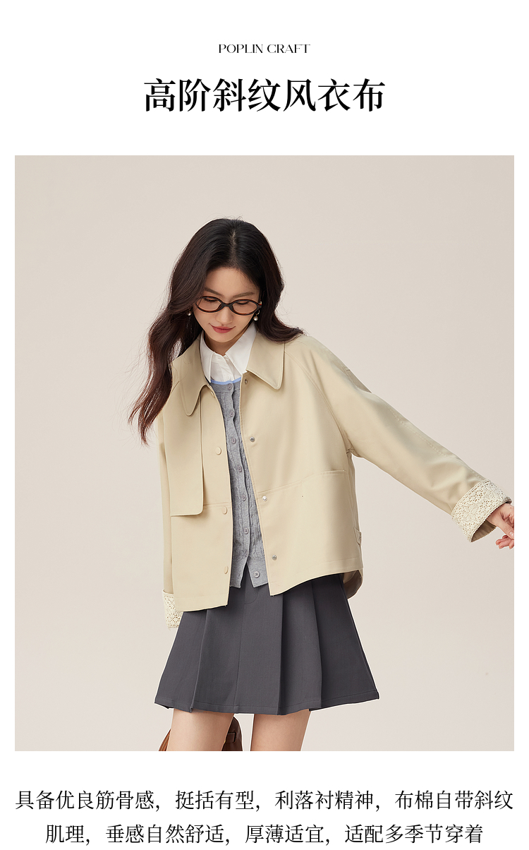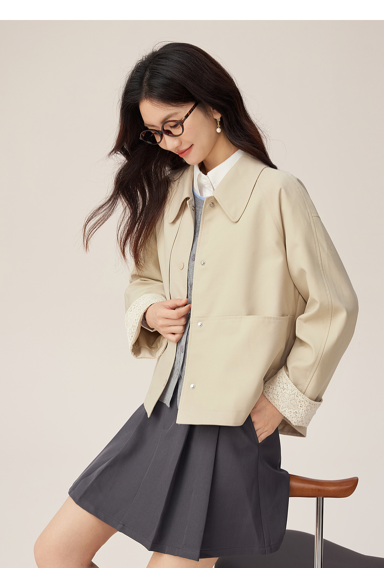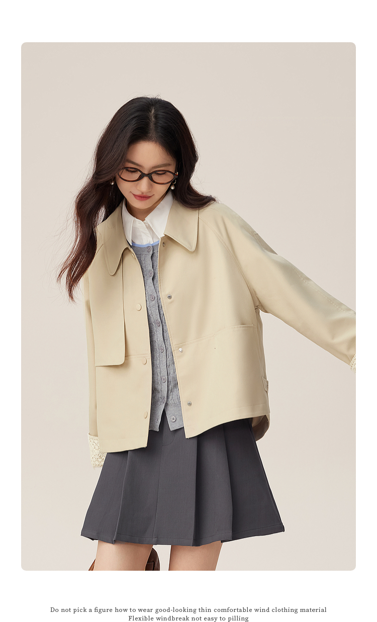 【09/03新品】熙世界高级感短款风衣外套2025秋季新款休闲工装风翻领夹克上衣