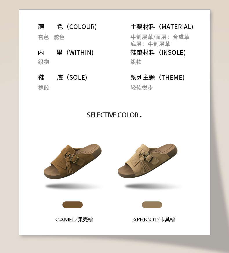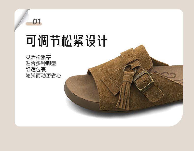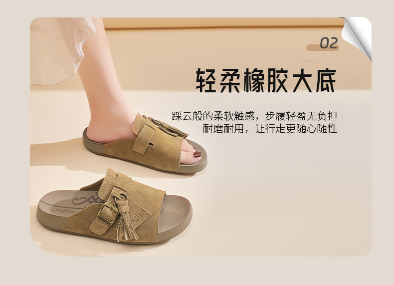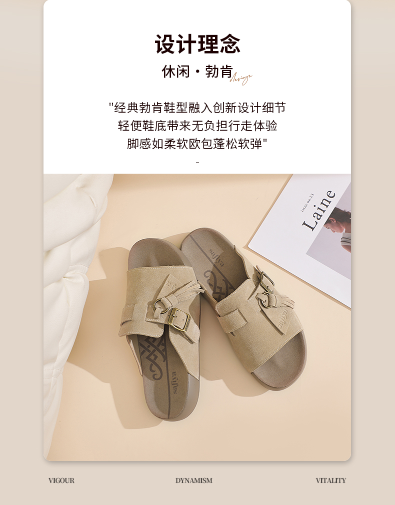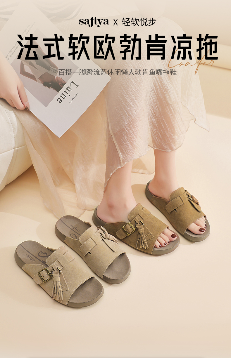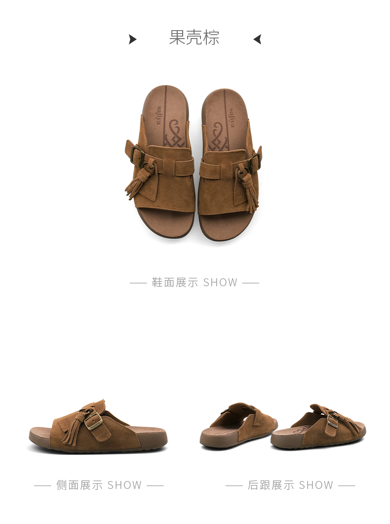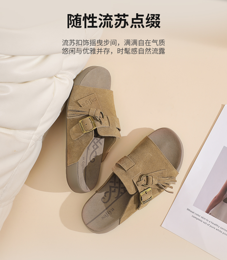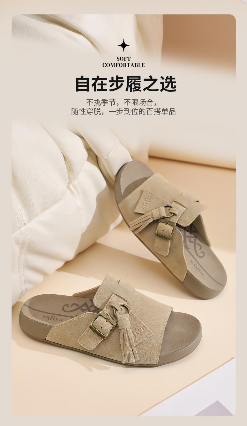 Safiya/索菲娅2025百搭一脚蹬流苏休闲懒人勃肯鱼嘴拖鞋SFD2110224