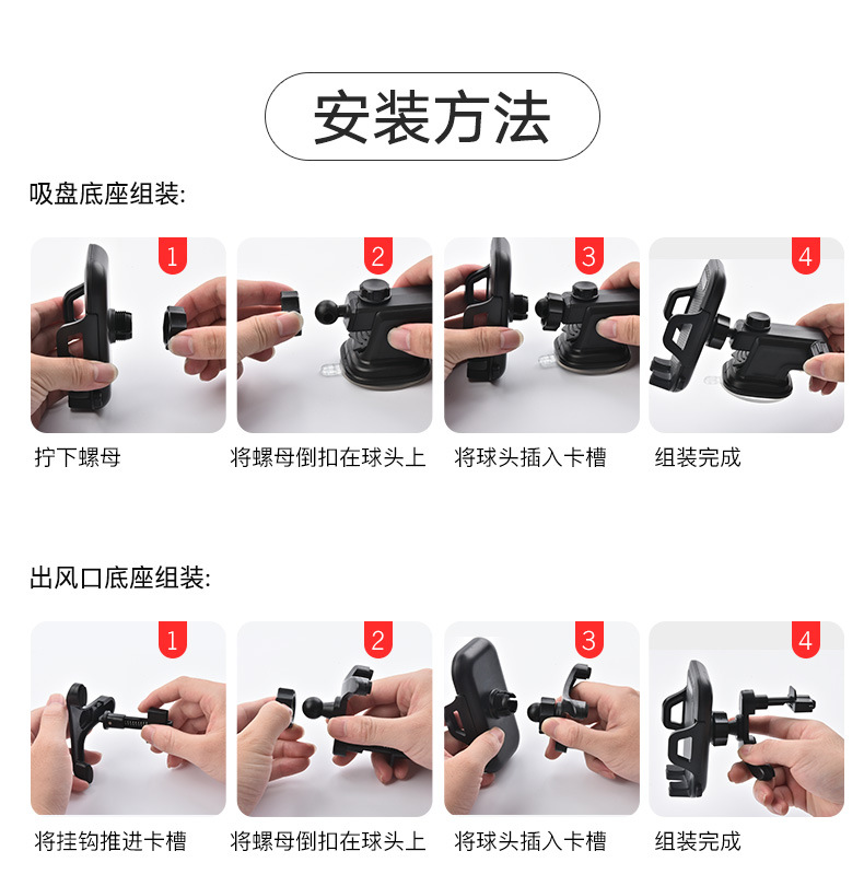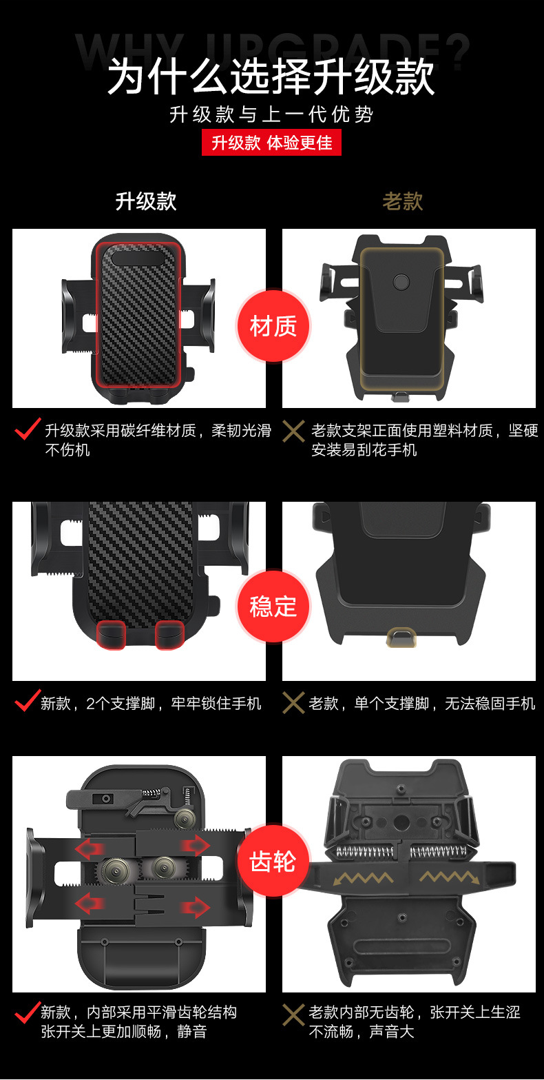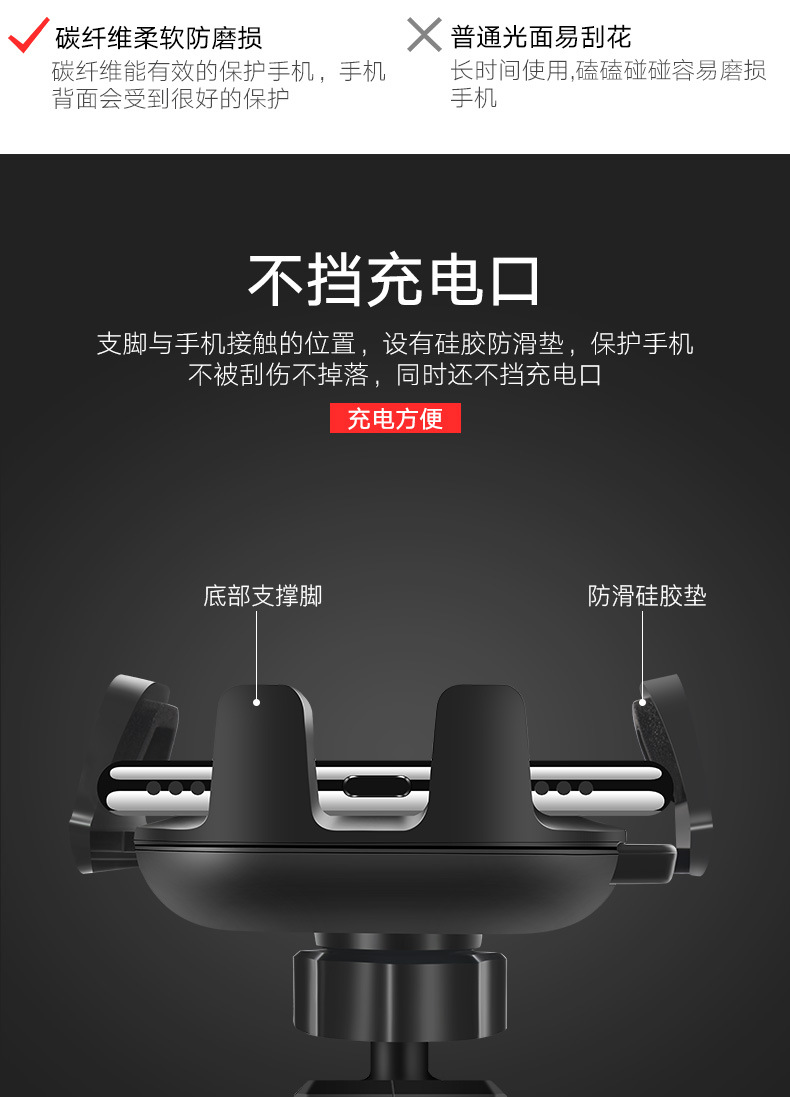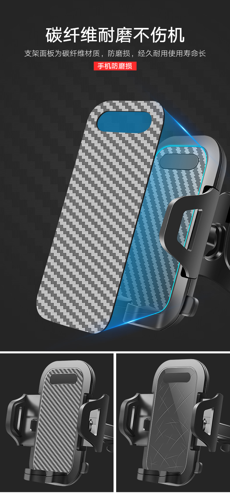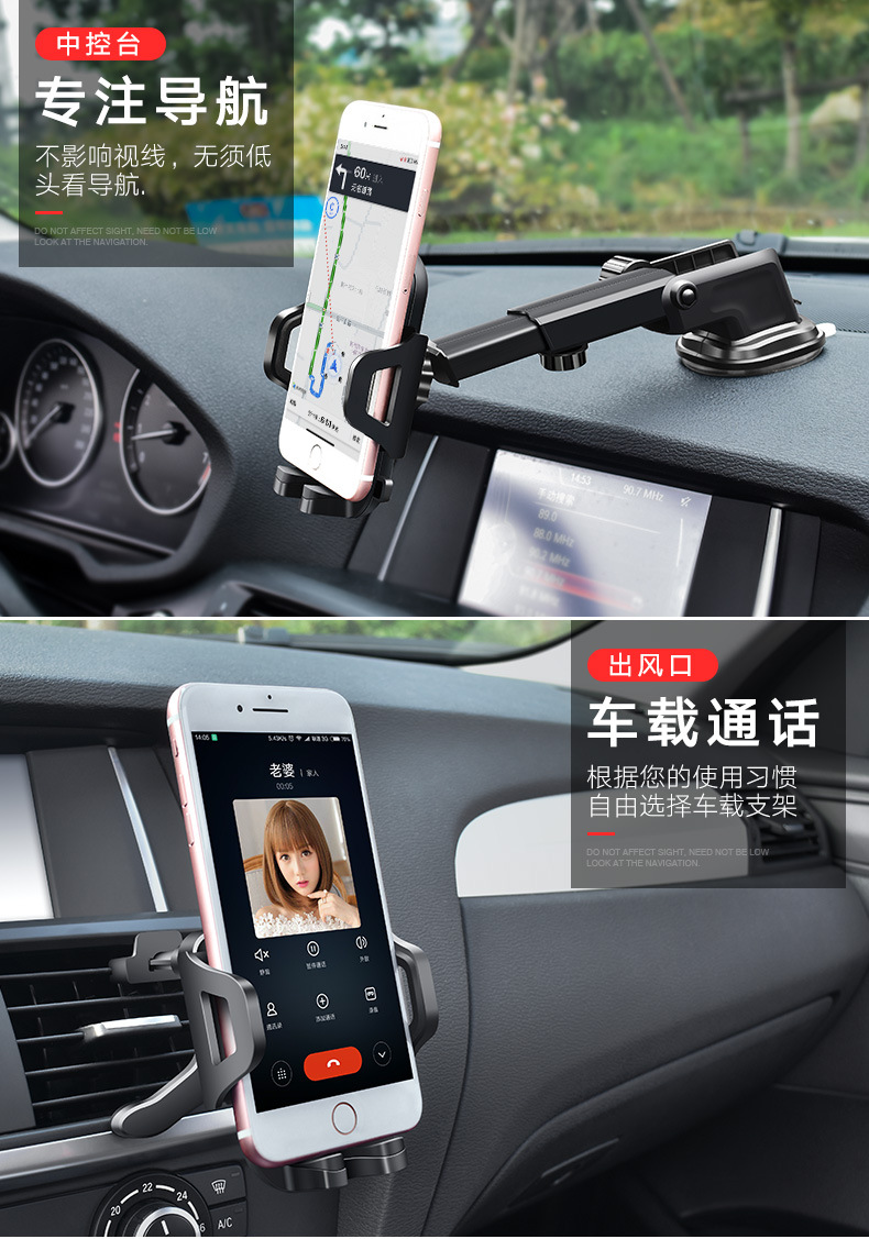 车载手机支架汽车配件支架 伸缩款吸盘式出风口碳纤维支架