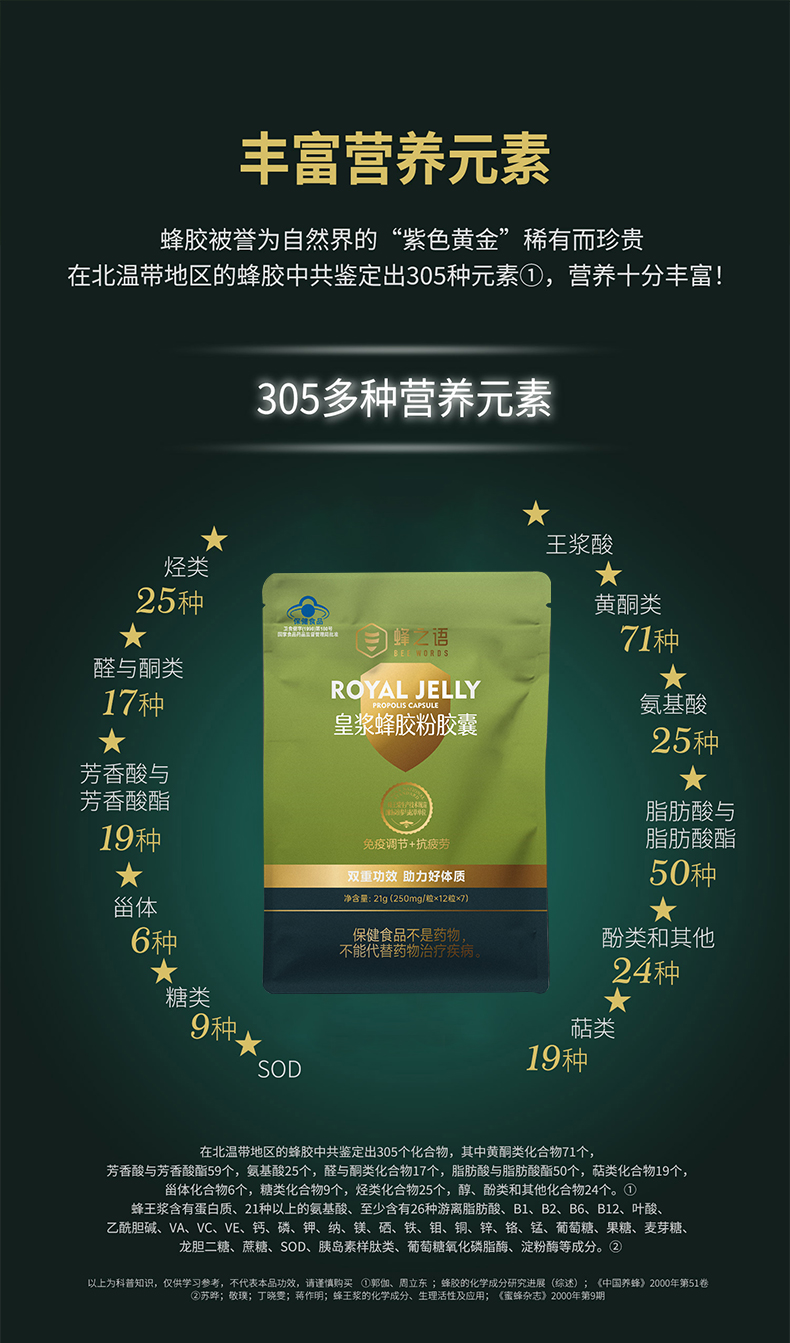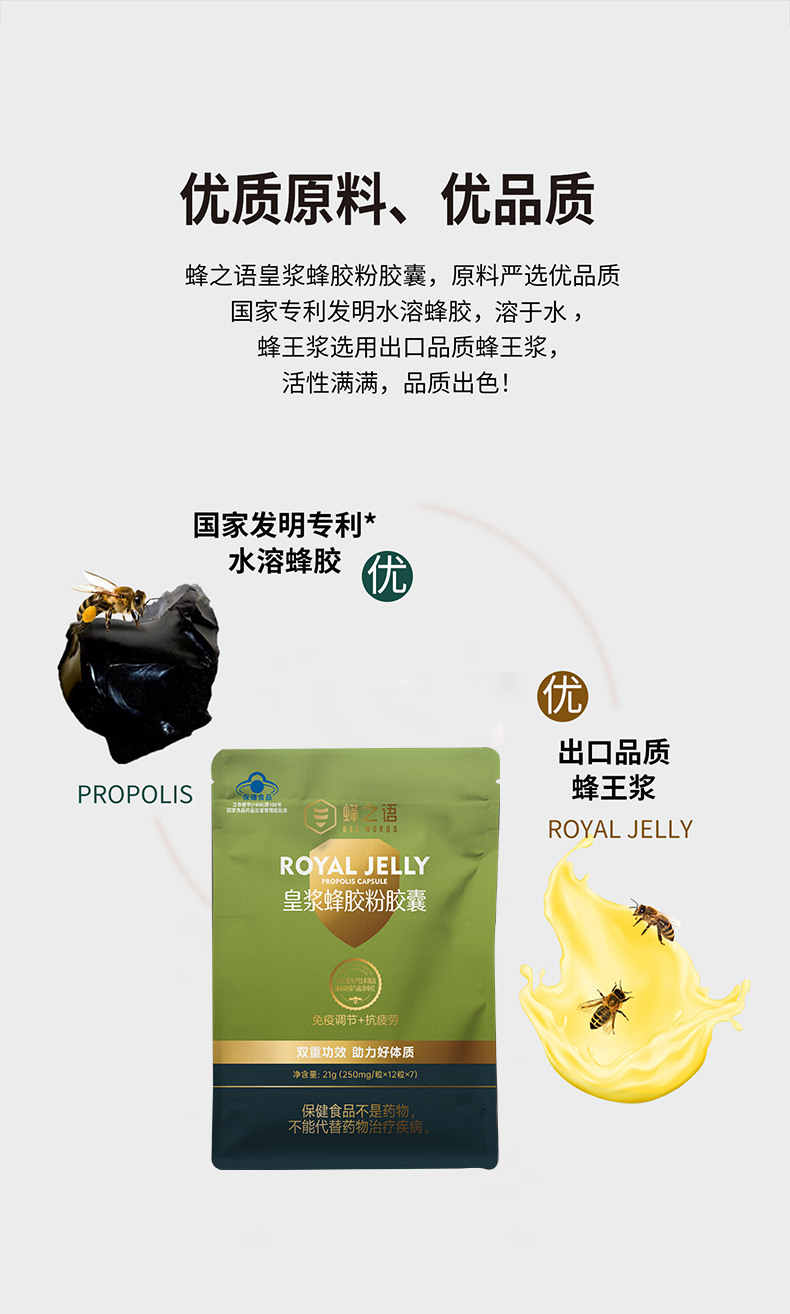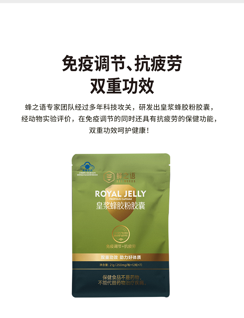 蜂之语皇浆蜂胶粉胶囊 250mg/粒*60粒*4瓶 免疫调节 抗疲劳