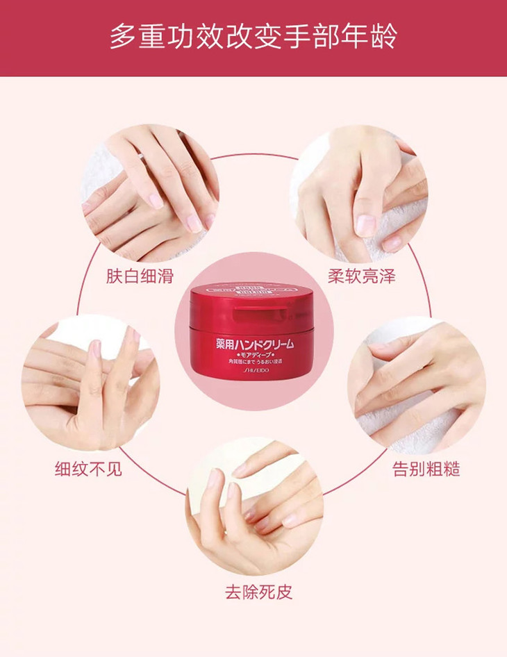 3、功效:日本护手霜销量排名第一"Shiseido资生堂尿素护手霜",资生堂这款护手霜在日本同类产品里可谓名声大赞,性价比极高。别被“尿素”这个难听的名称吓坏了,其实老一辈都知道这个药用成分可是护肤利器。不仅可以保湿滋润,而且手足龟裂伤口都可以在短时间内修复完好,尤其是碰上换季和天气寒冷~用后特别滋润保湿而不会油油的。