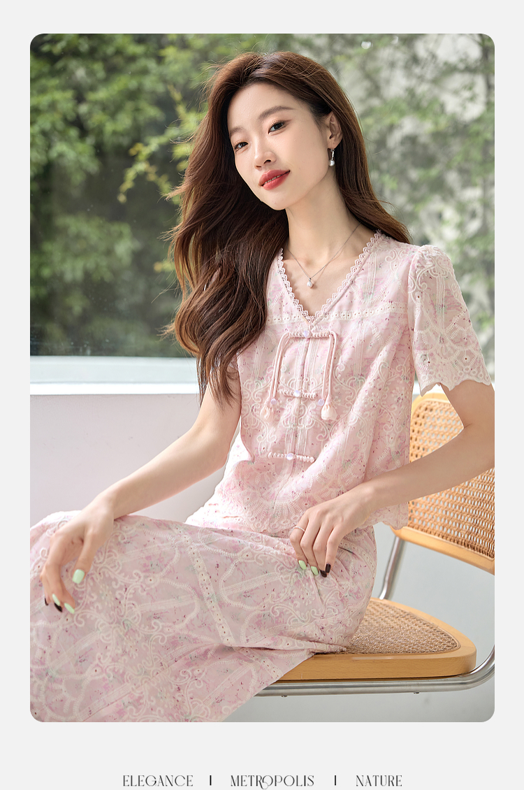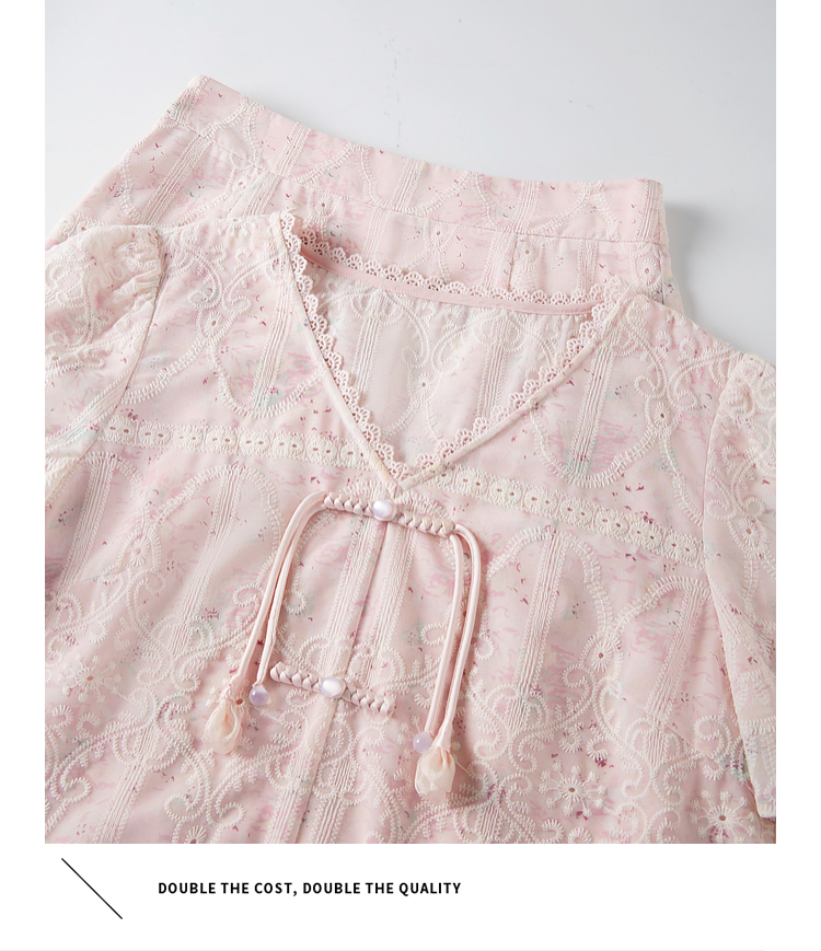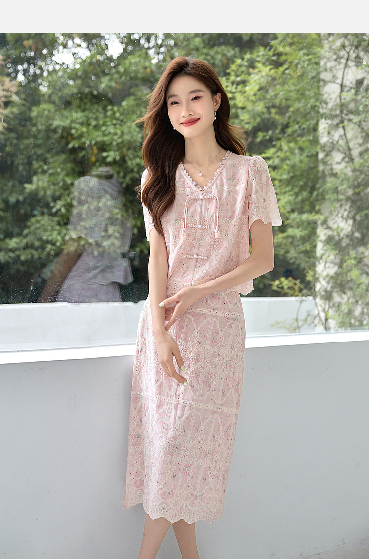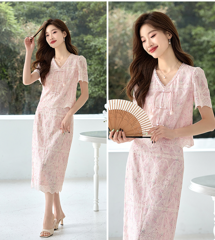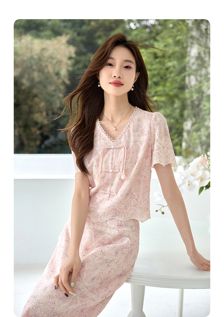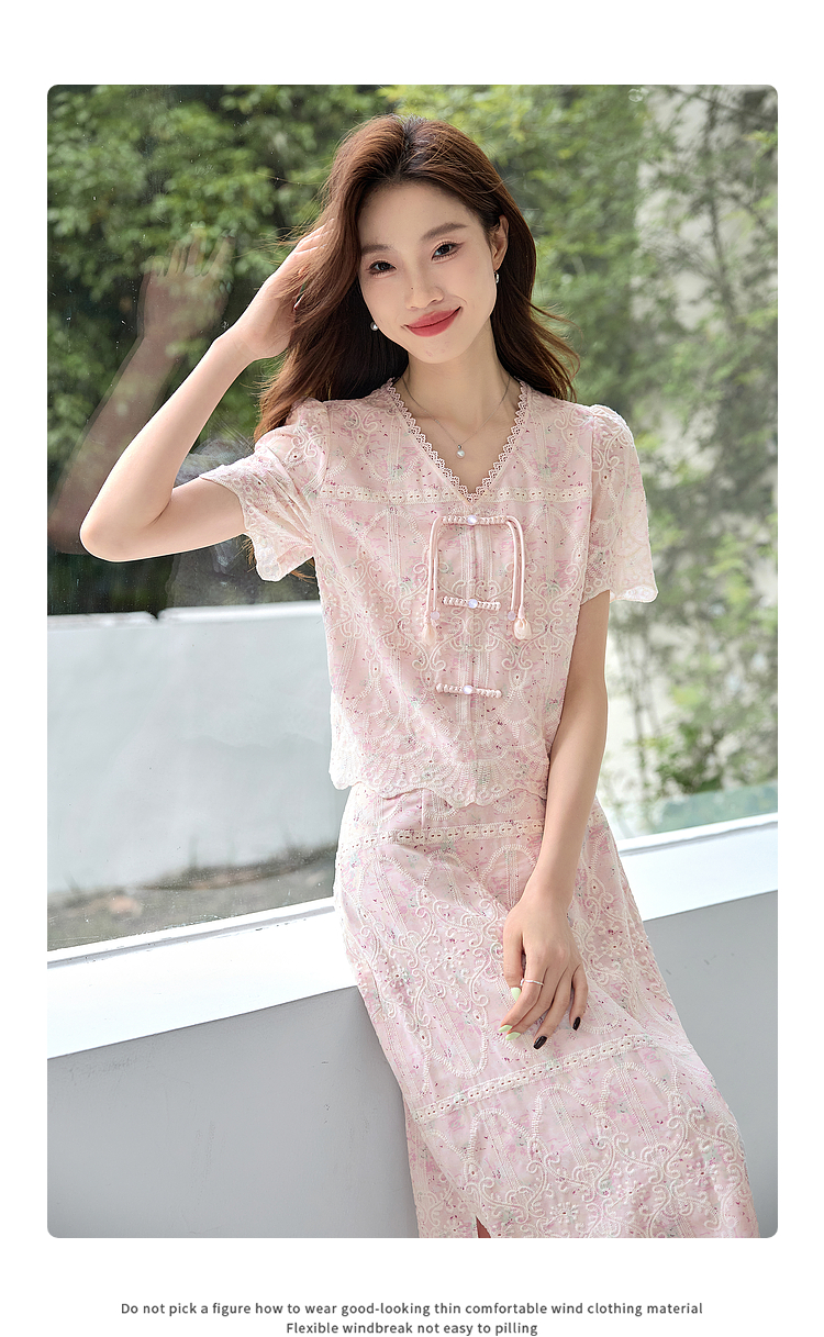 【专属特价】熙世界新中式国风套装裙夏季蕾丝花边刺绣盘扣上衣半身裙两件套